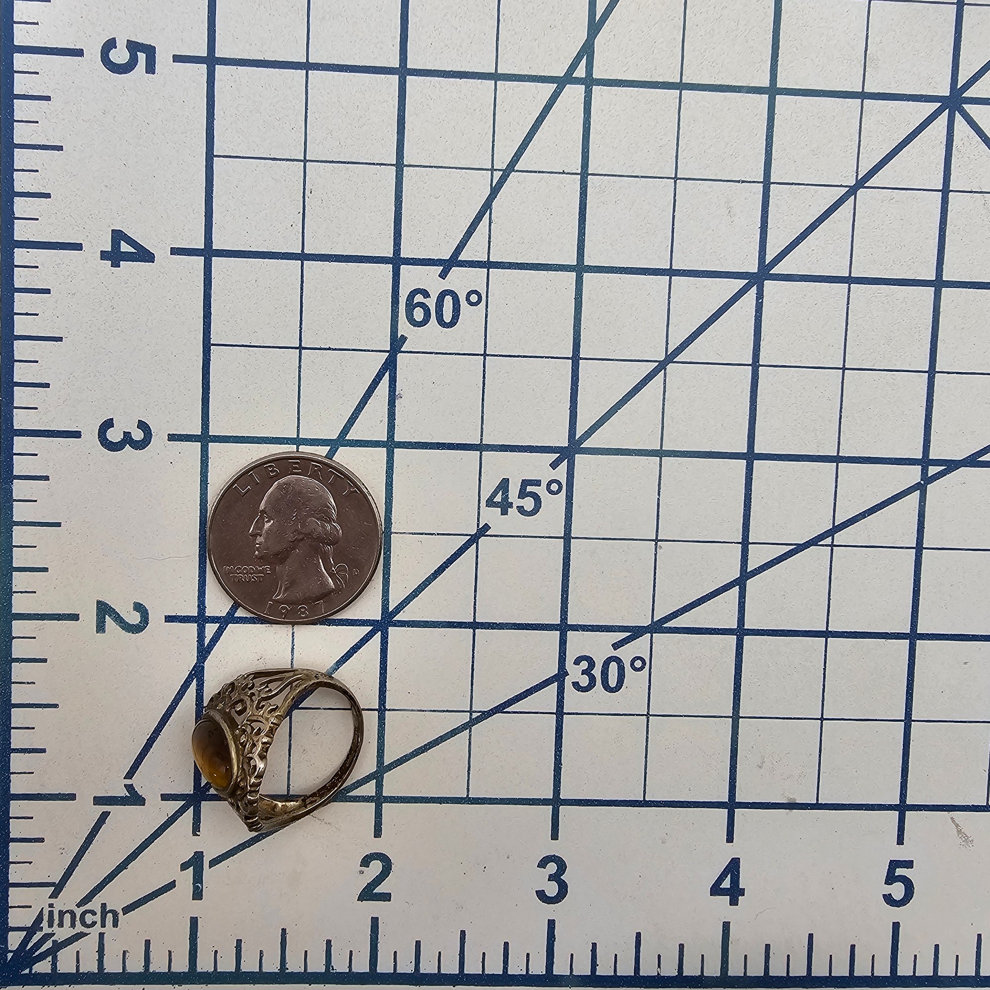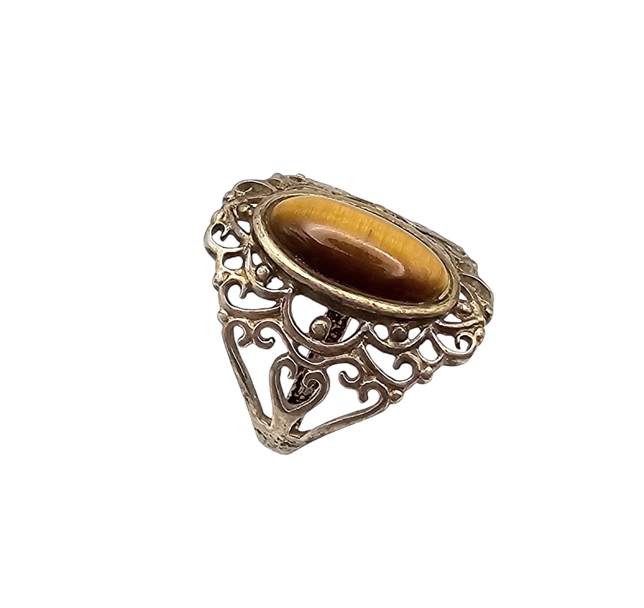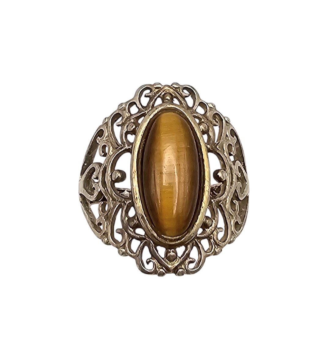 Rj Tigers Eye Sterling Silver Filigree Ring Size 6.75 3.9 G