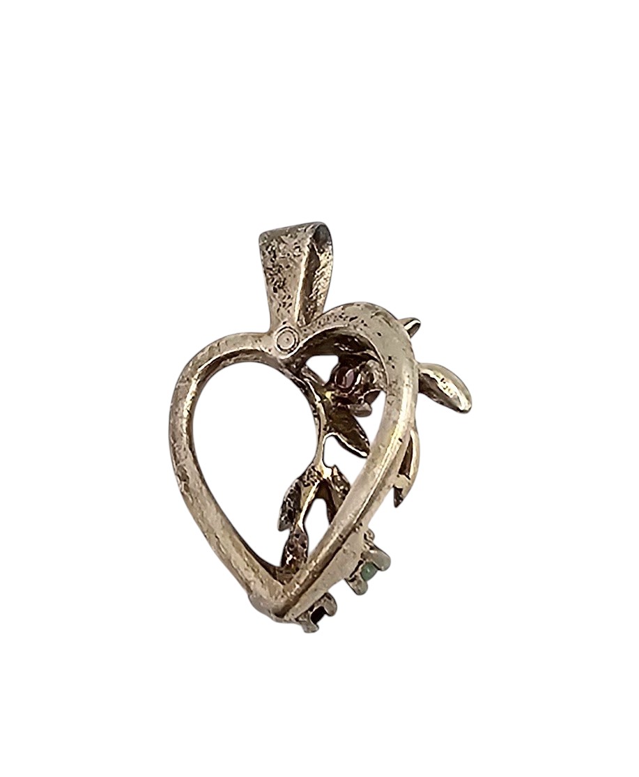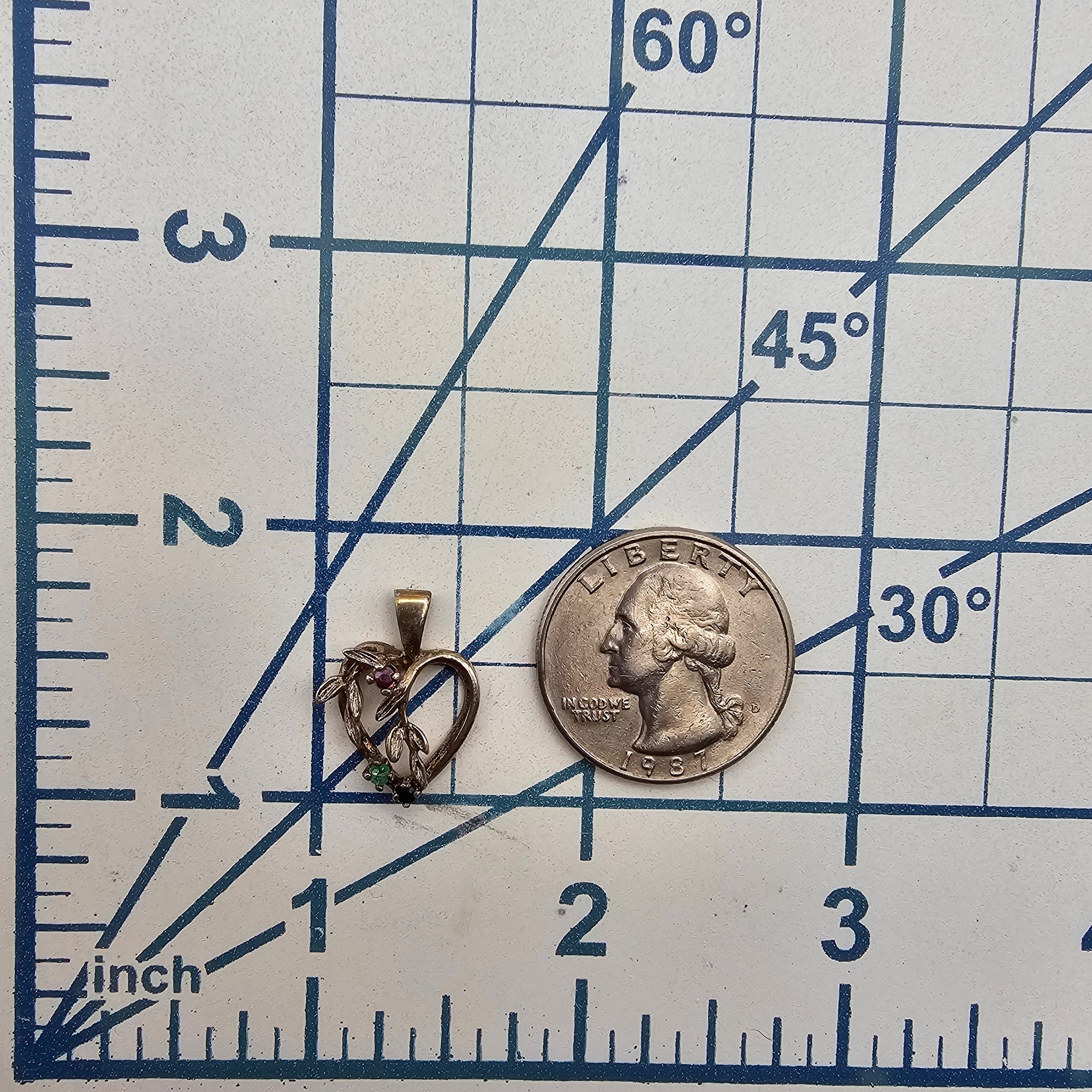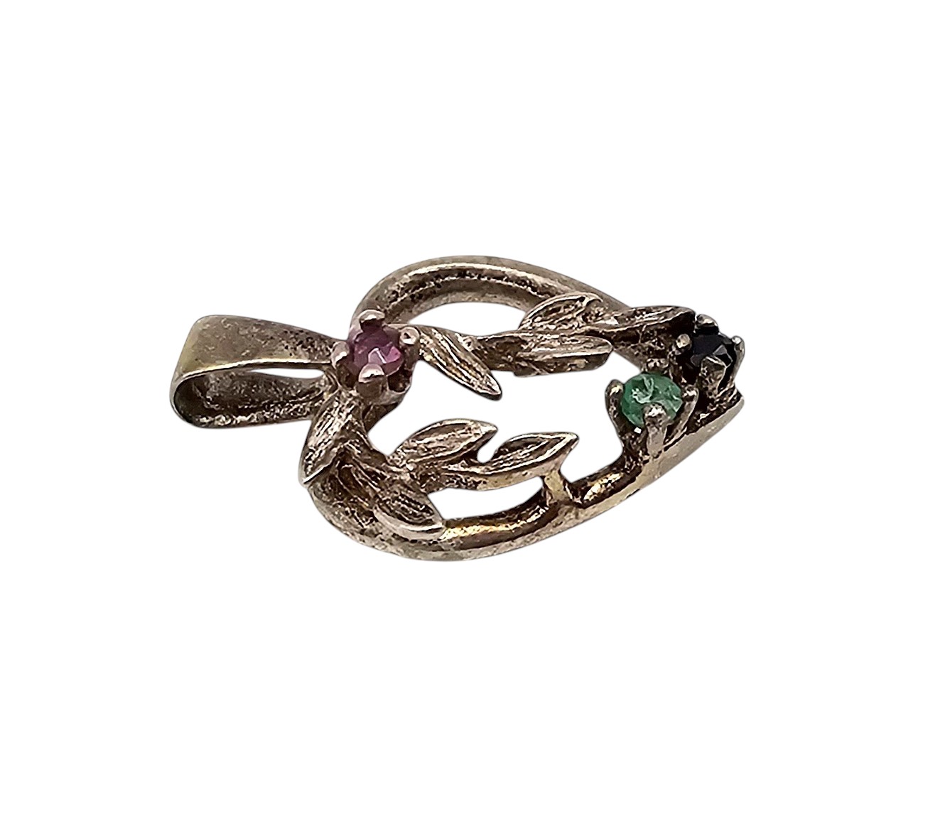 Emerald Ruby Sapphire Sterling Silver Flower Heart Pendant 1.6 G