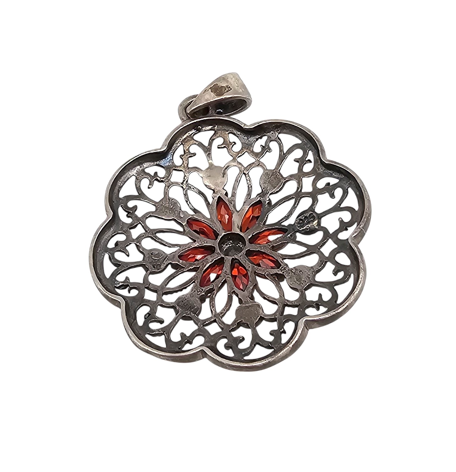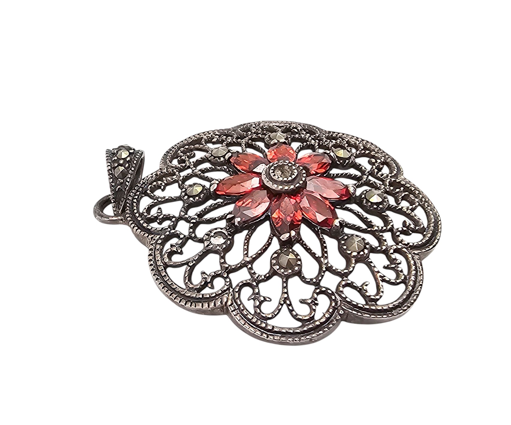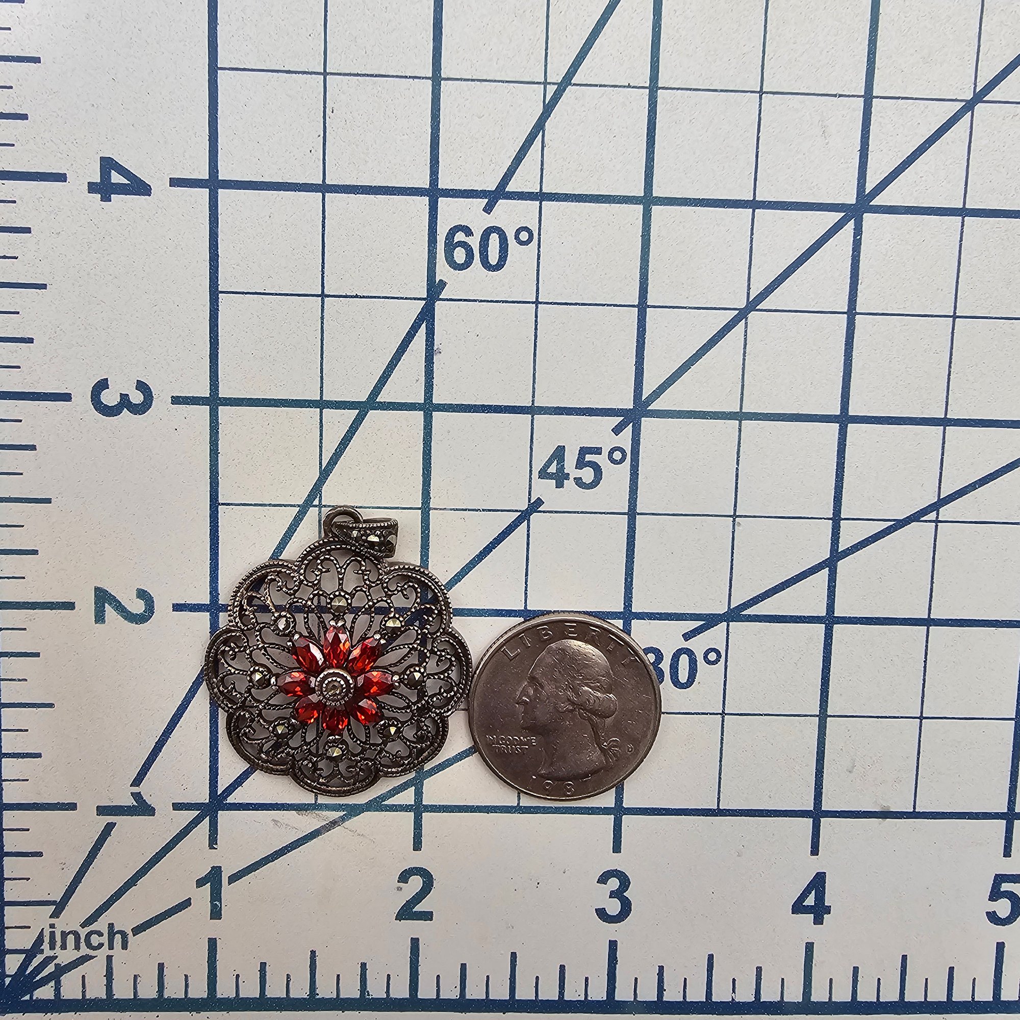 FAS Marcasite Rhinestone Sterling Silver Filigree Pendant 5.5 G