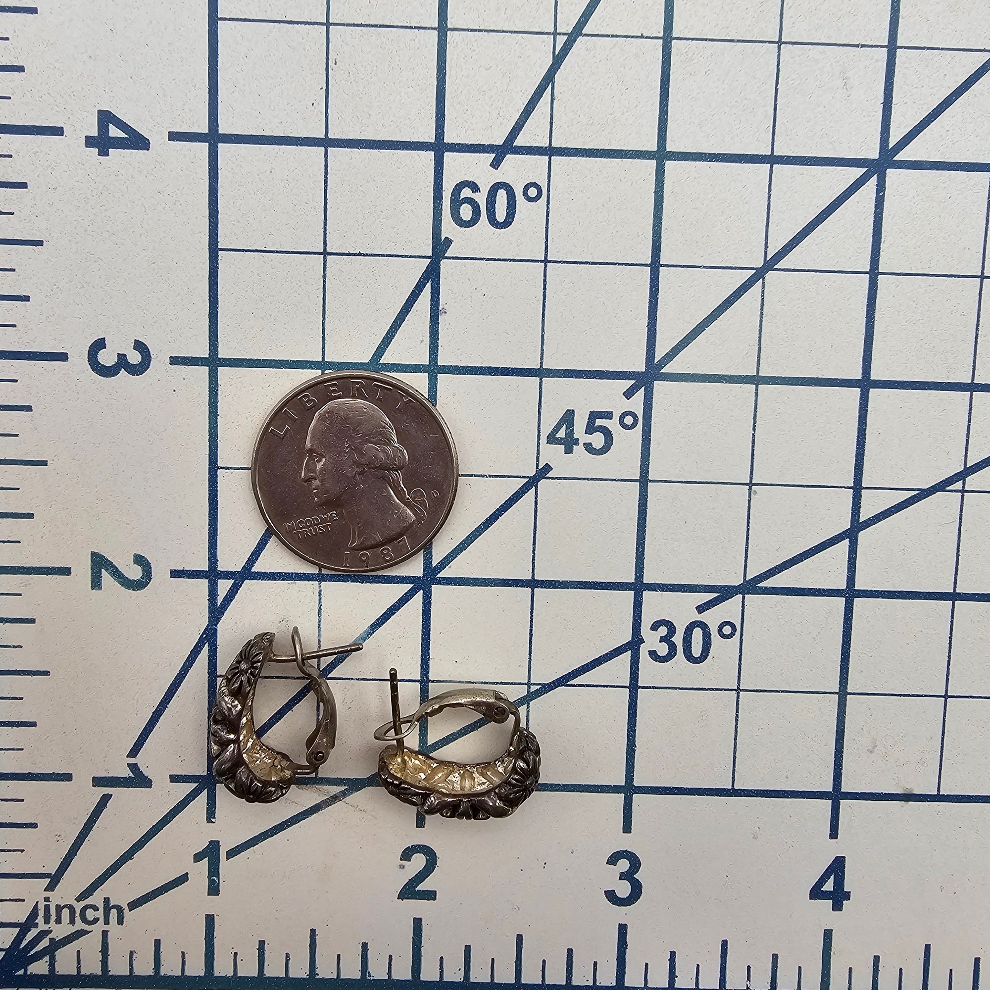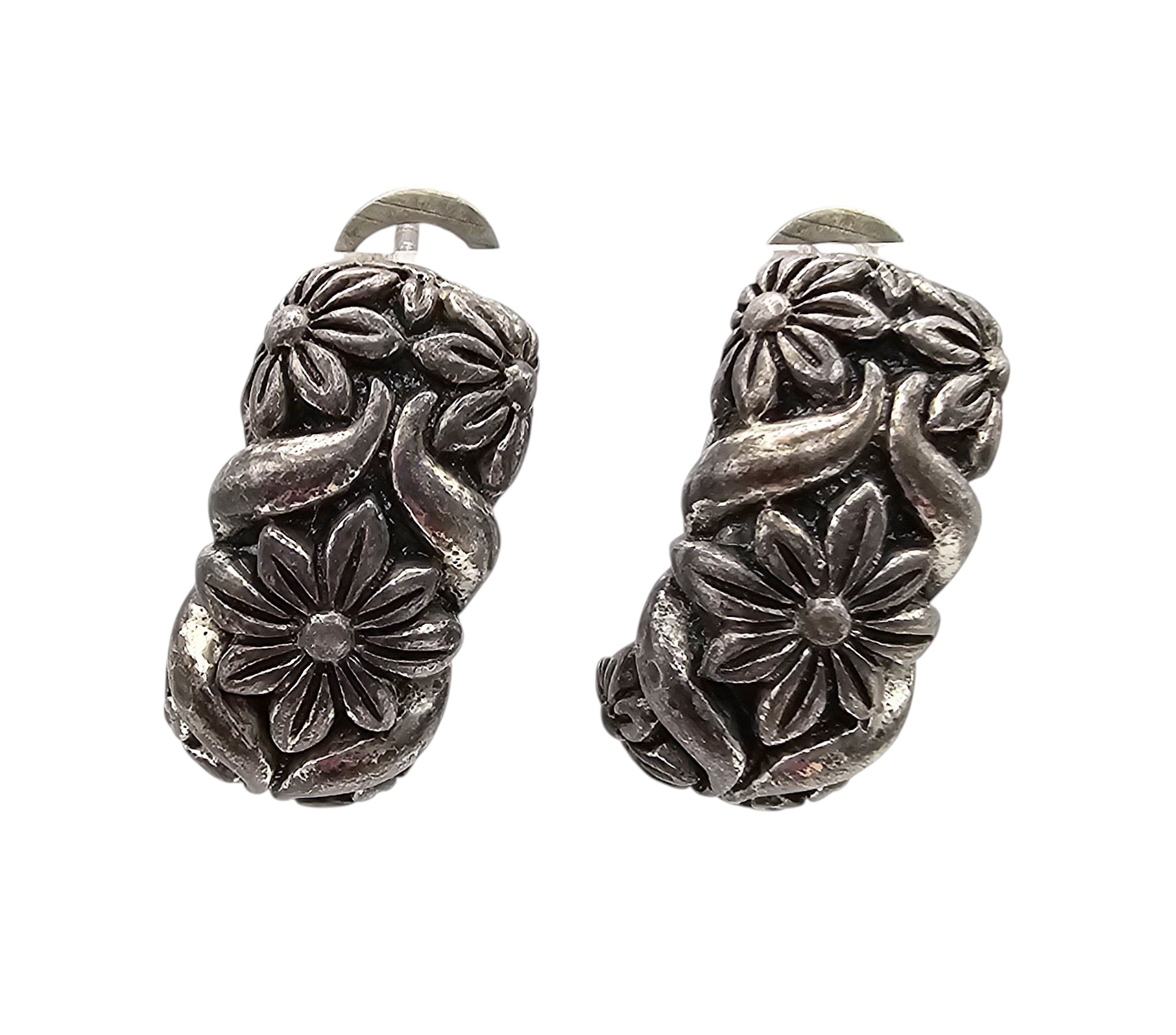 C Sterling Silver Floral Hoop Earrings 7.9 G