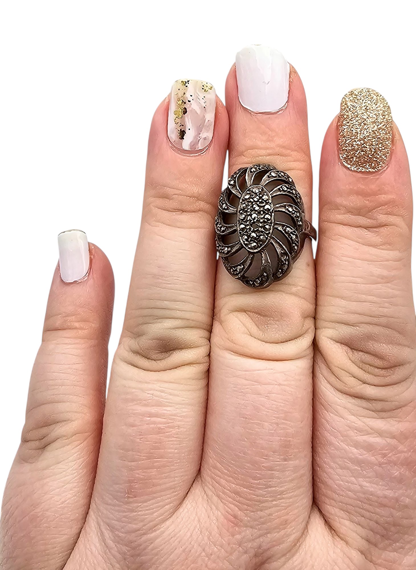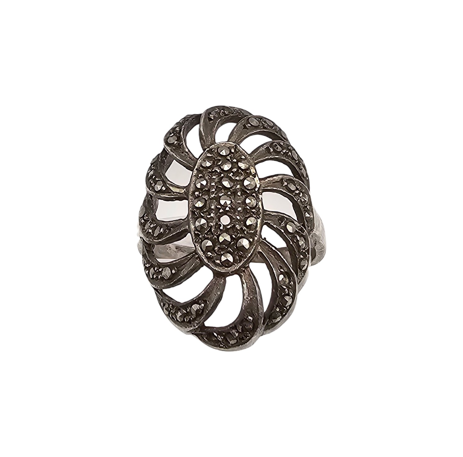 Marcasite Sterling Silver Cocktail Ring Size 6.25 3.7 G