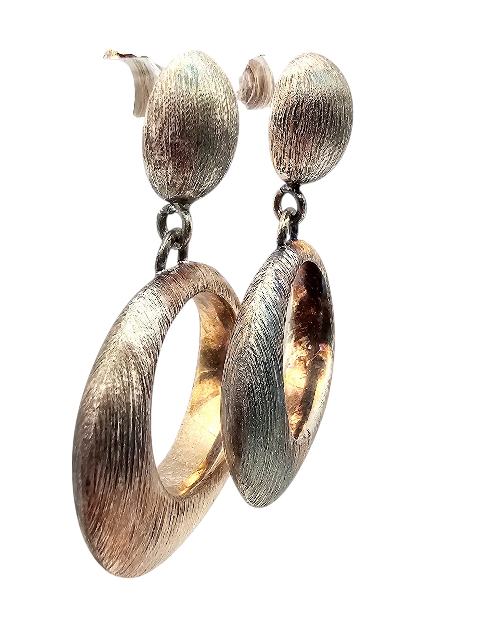 Italy Sterling Silver Textured Dangle Earrings 9.8 G