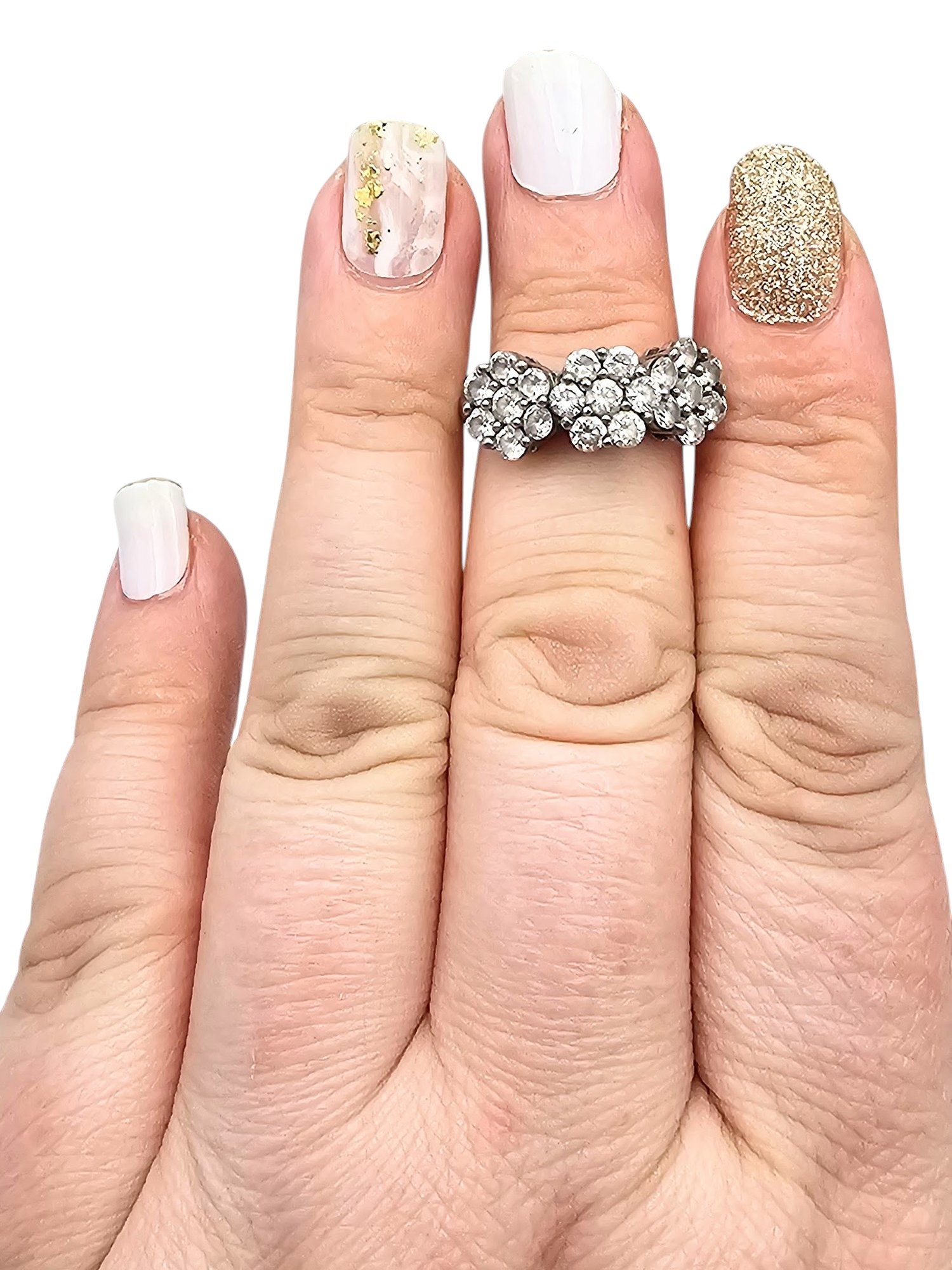 SJD Rhinestone Sterling Silver Flower Ring Size 5.5 4.2 G