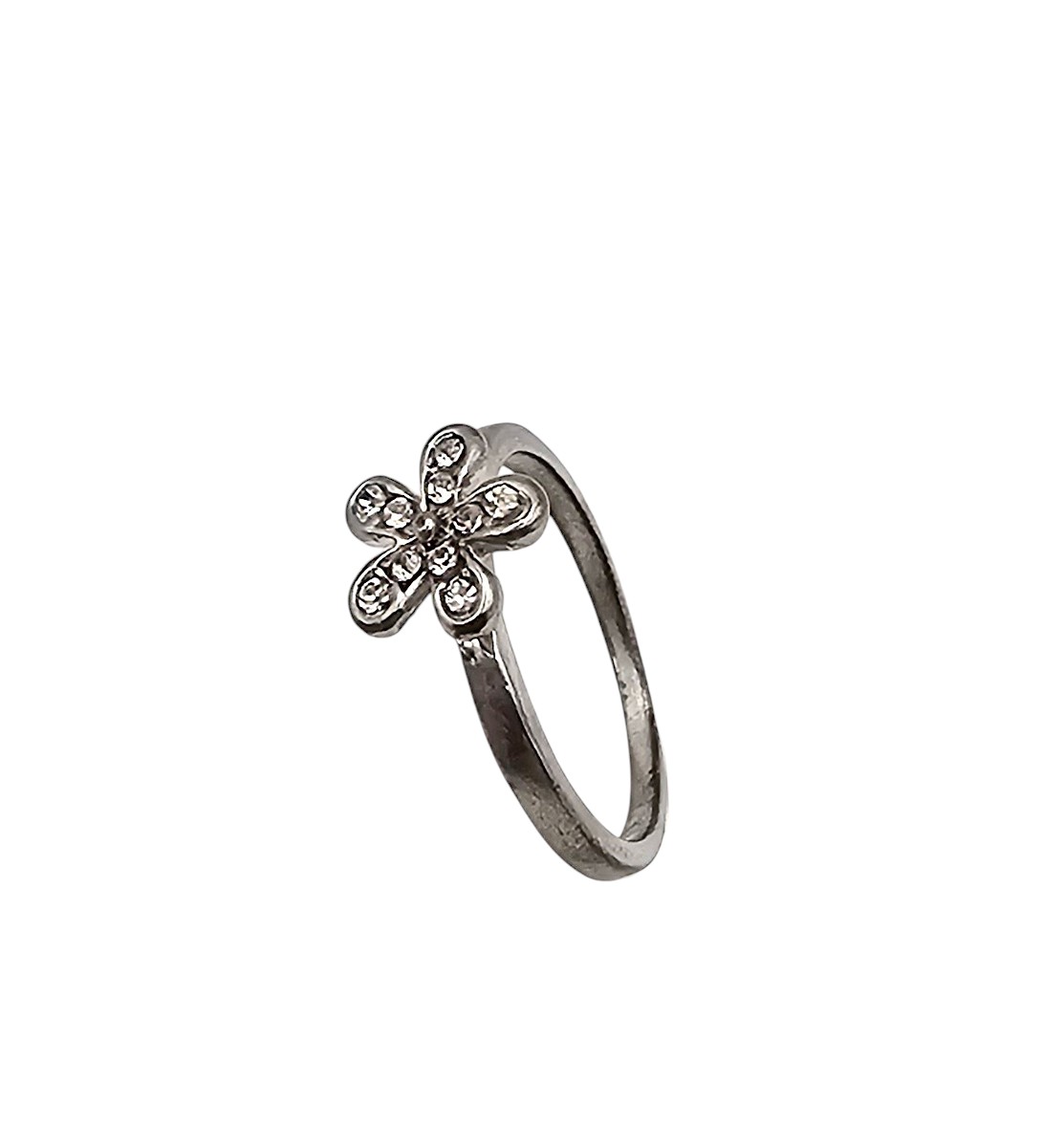 Rhinestone Sterling Silver Flower Ring Size 6.5 1.9 G