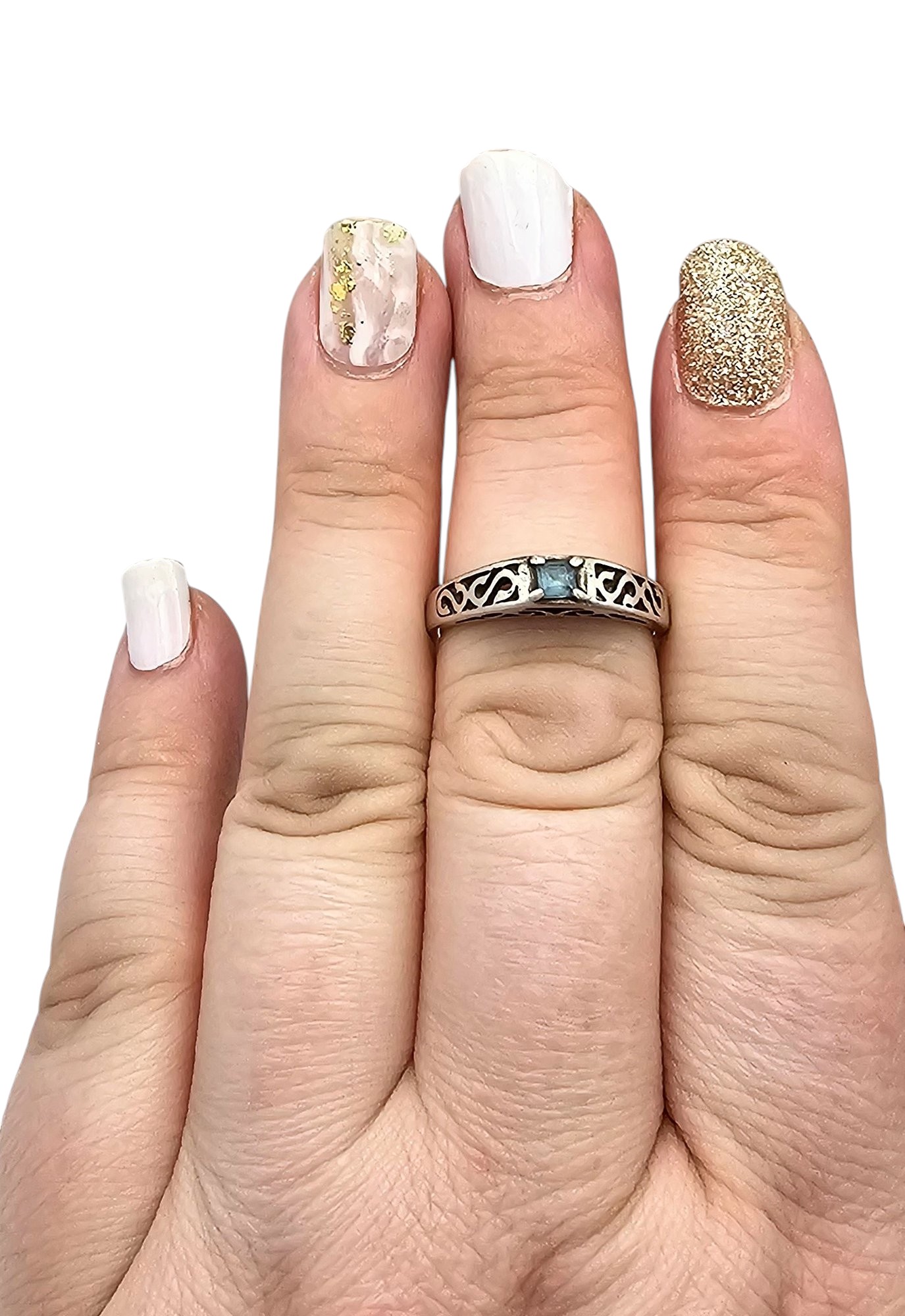 Topaz Sterling Silver Filigree Cocktail Ring Size 7.75 2.6 G