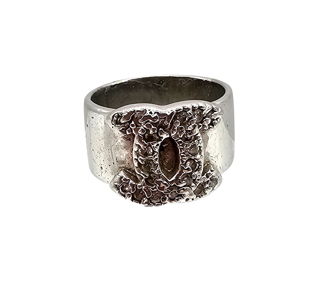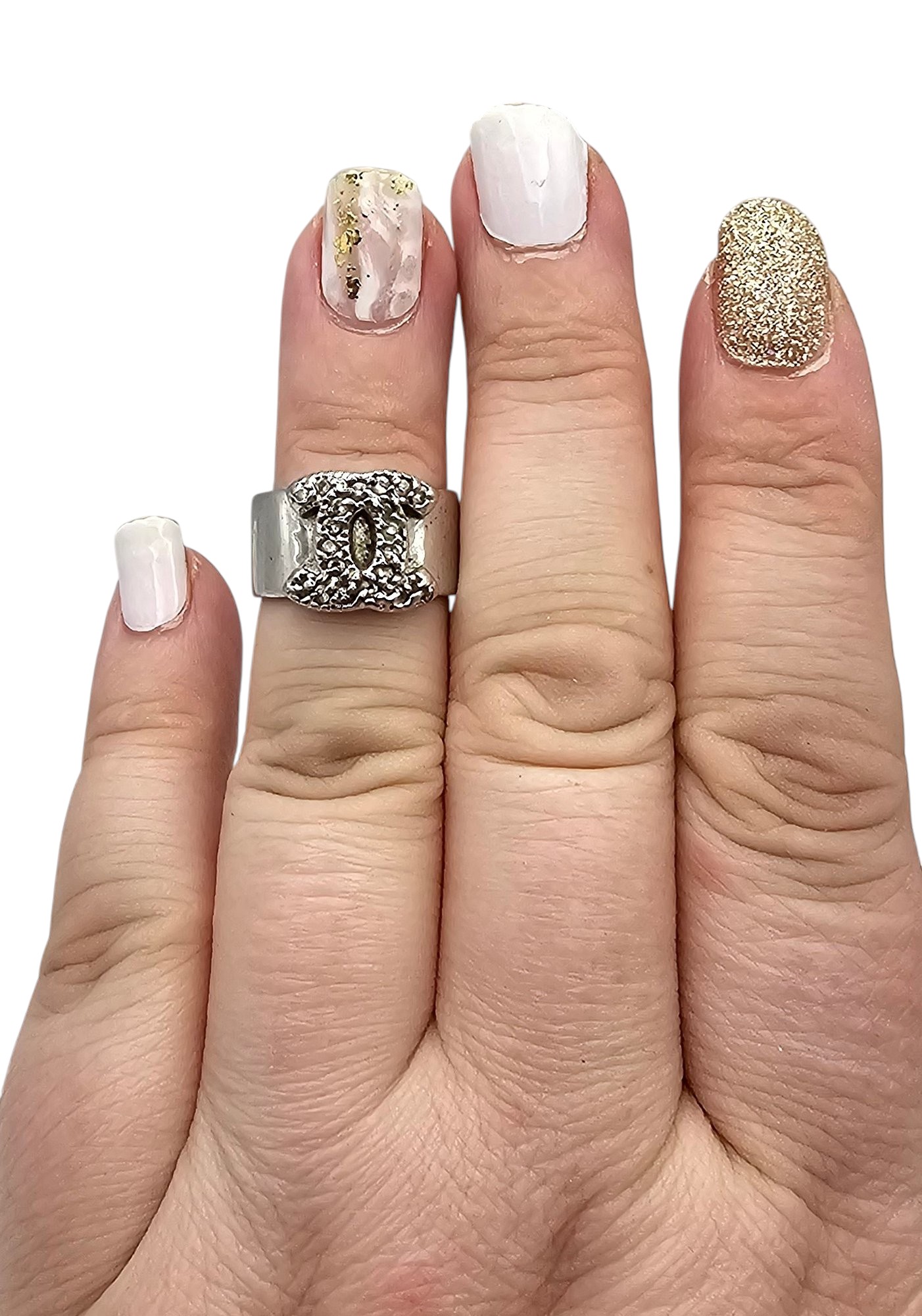 Chanel Rhinestone Sterling Silver Ring Size 5.25 7 G