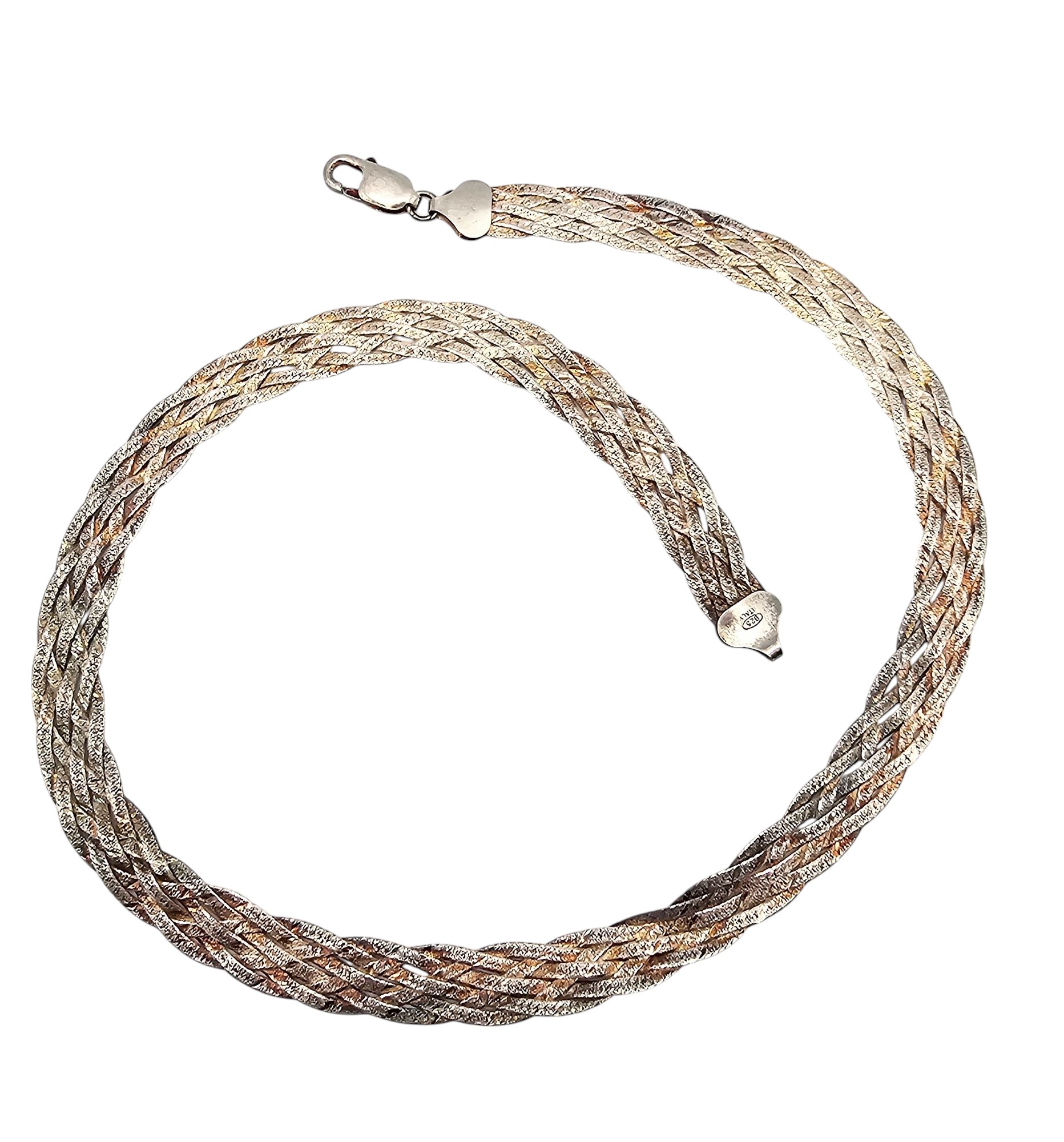 Italy Sterling Silver Braided Chain Necklace 21.8 G