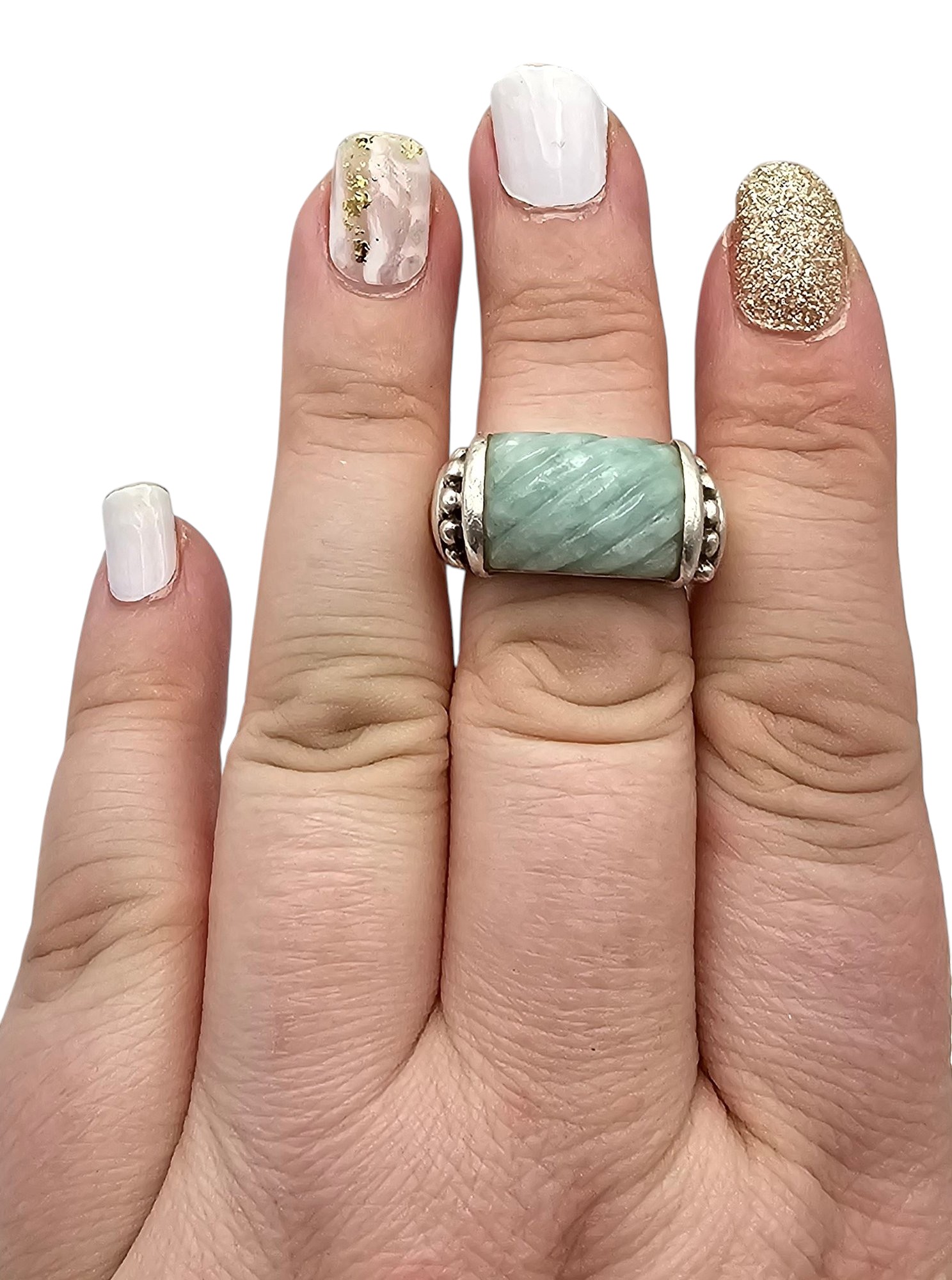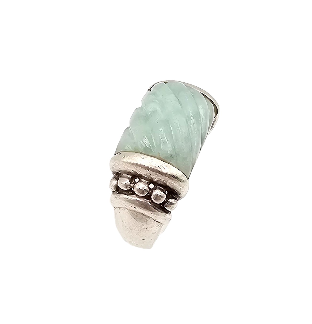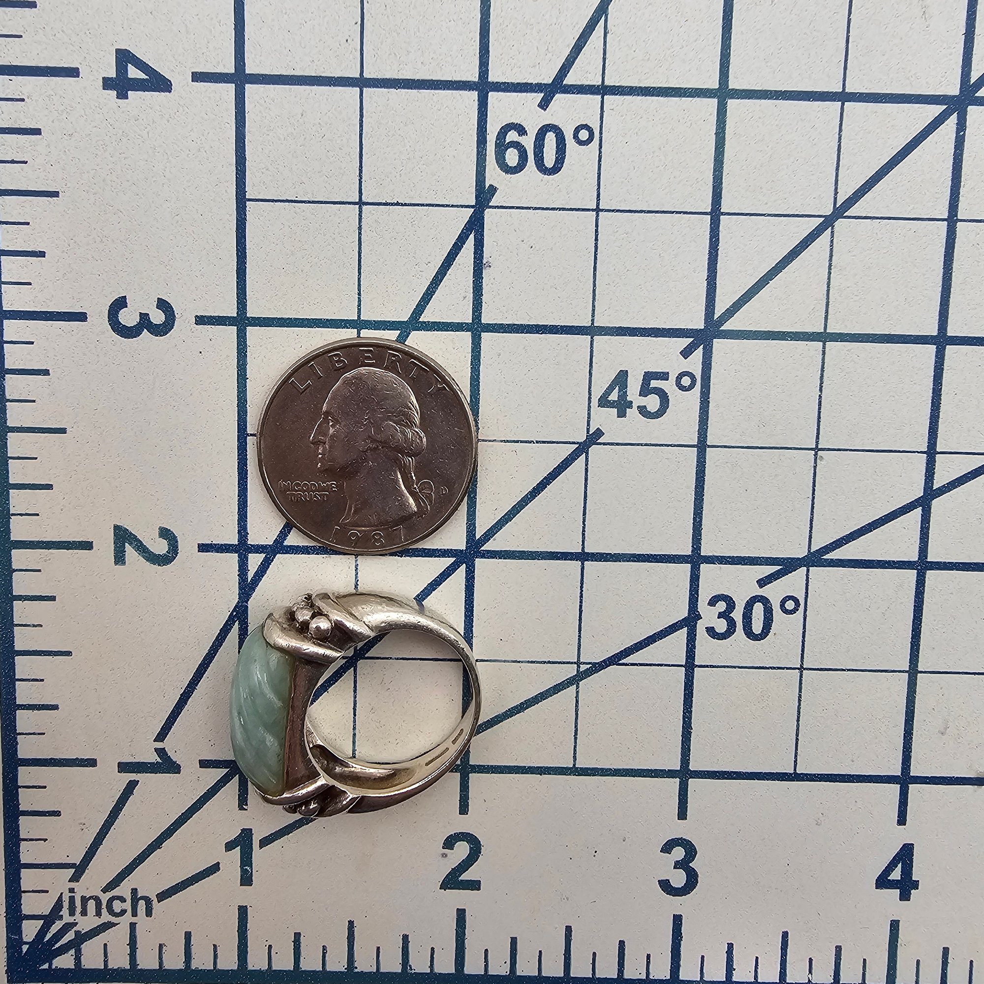Judith Ripka Carved Jade Sterling Silver Ring Size 7.25 12.9 G