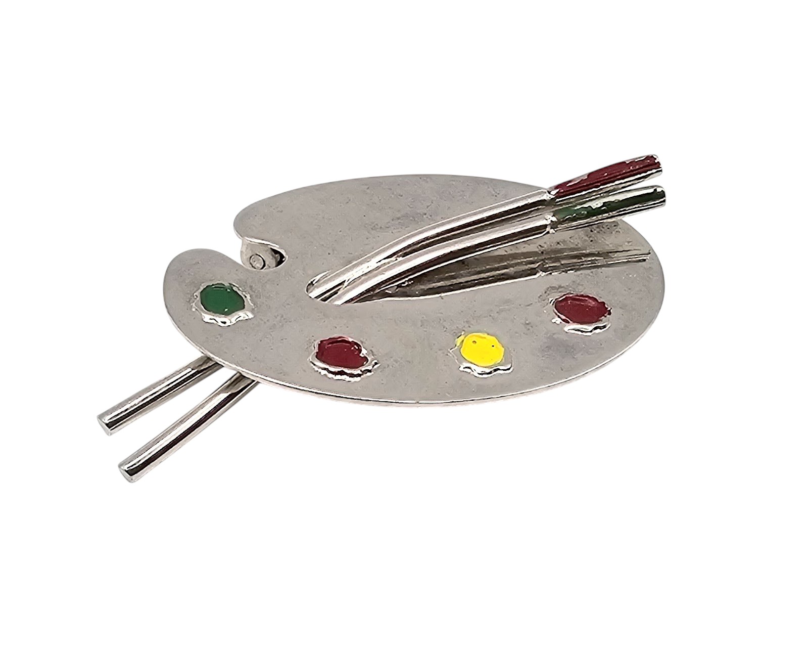 BEAU Enamel Sterling Silver Paint Pallet Brooch 4.4 G