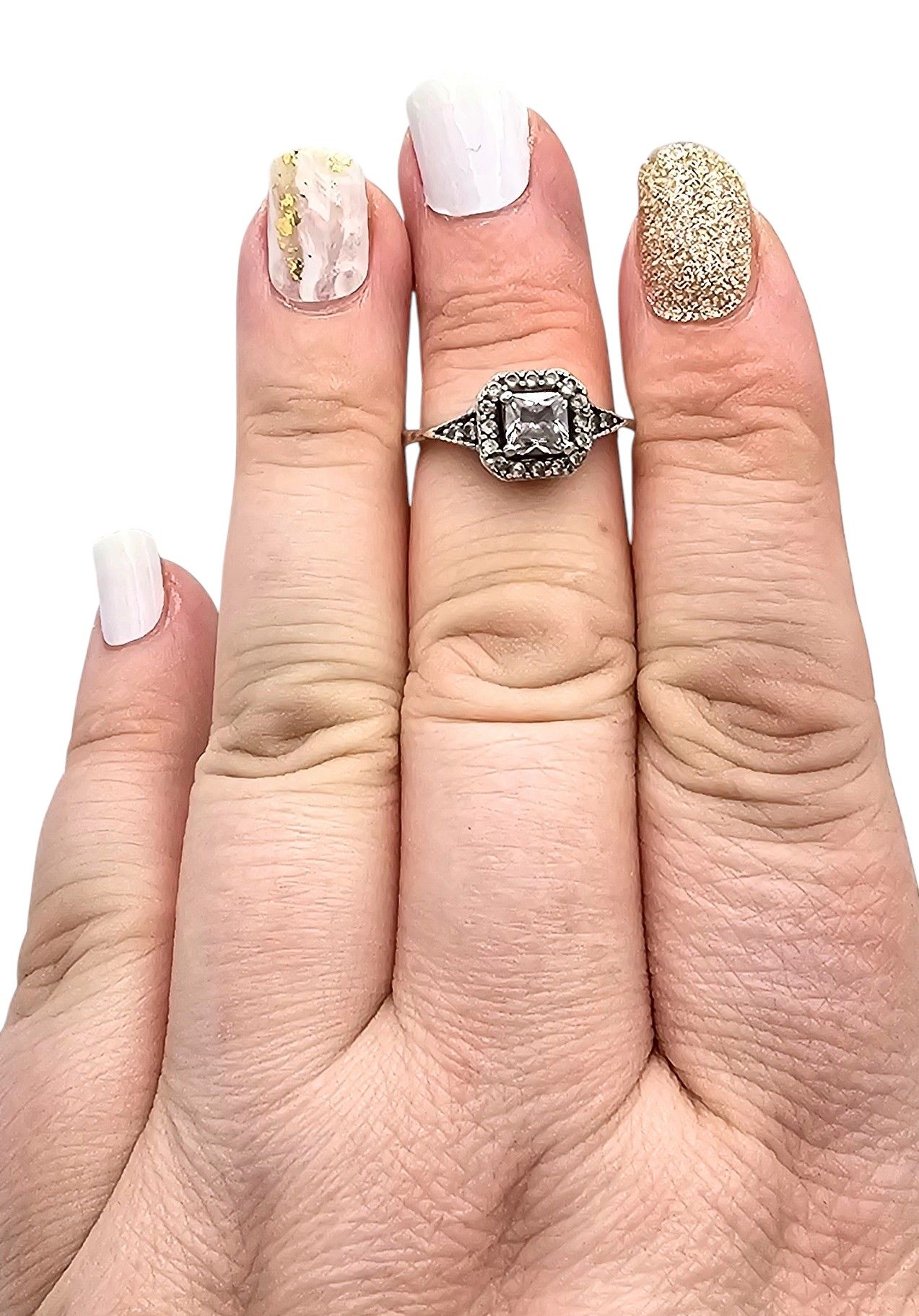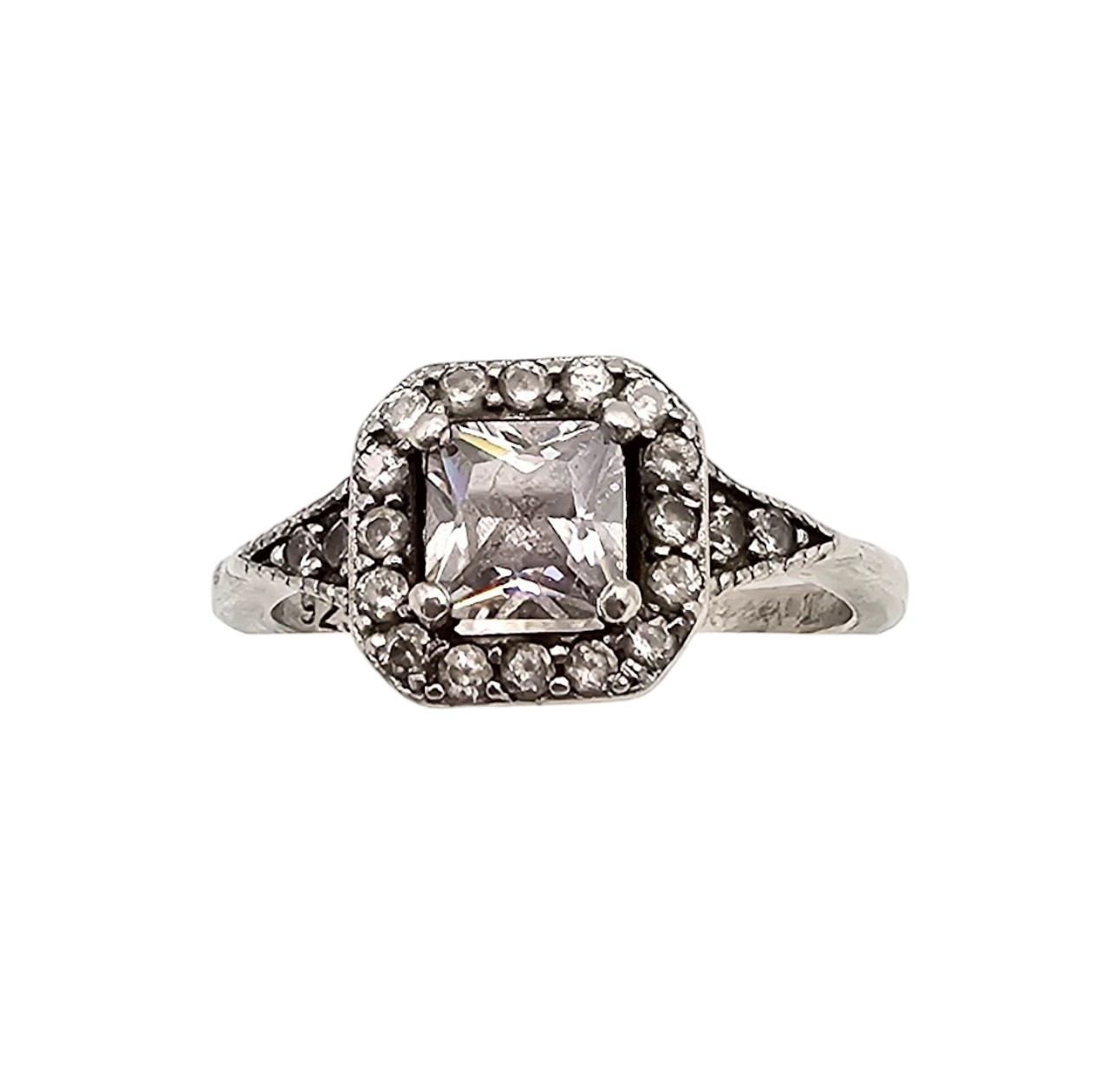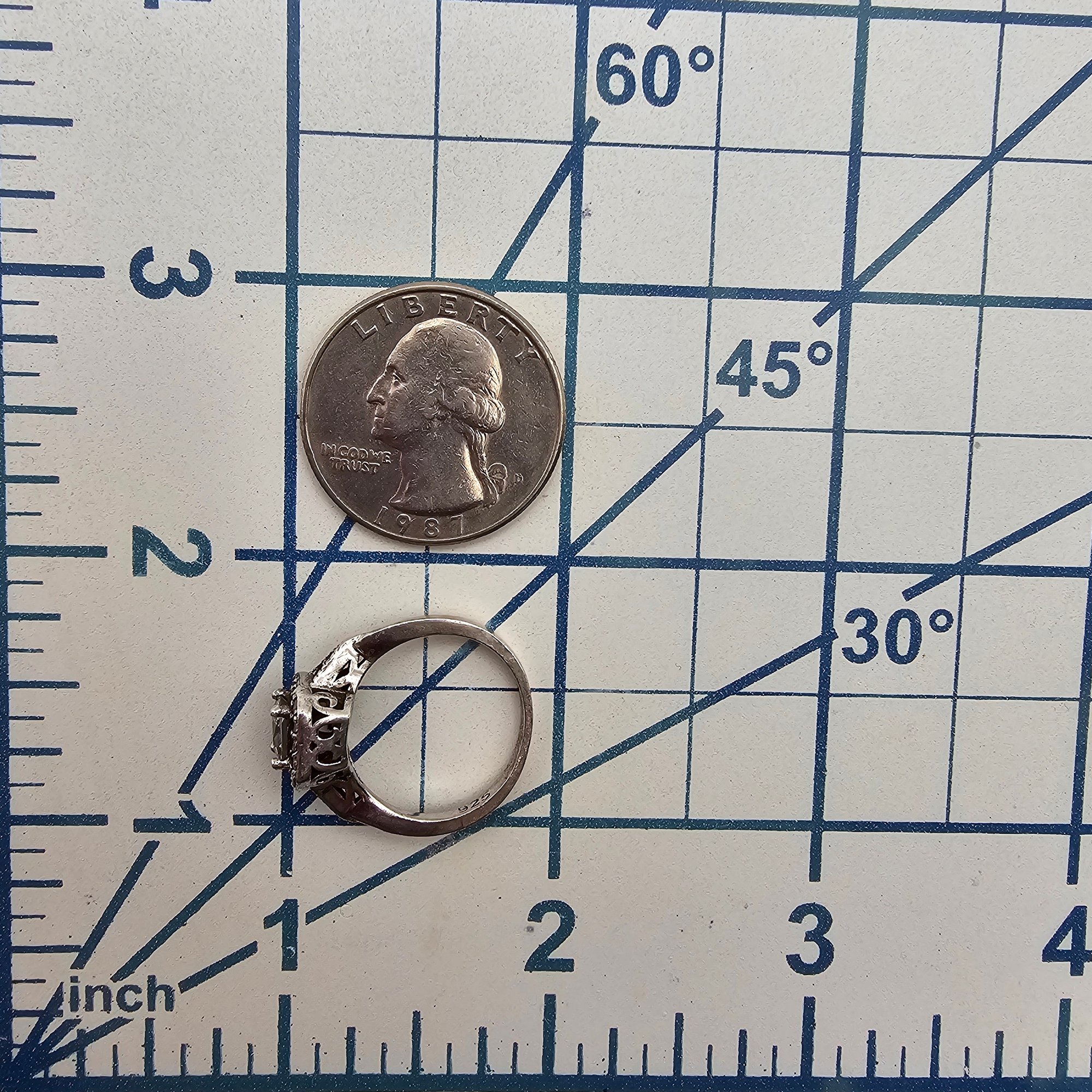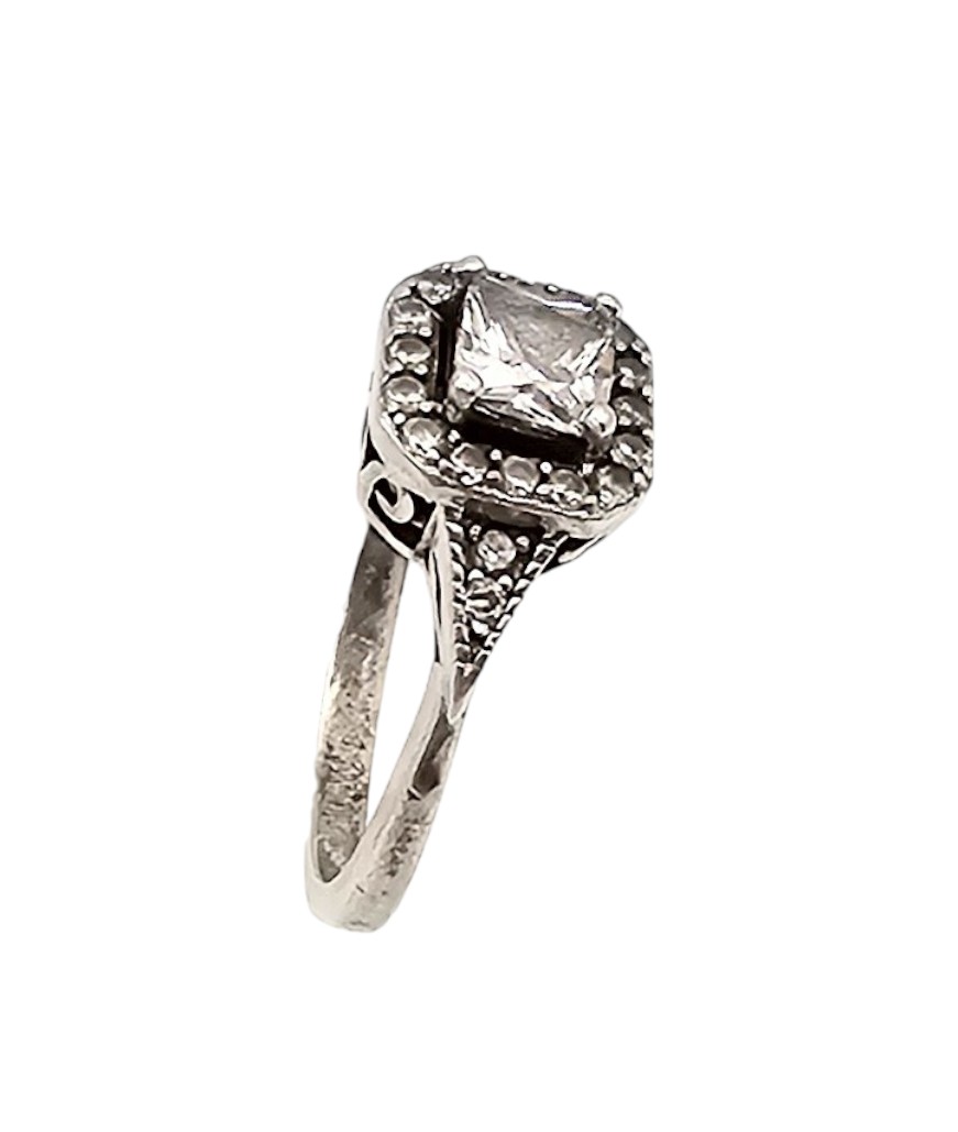 Rhinestone Sterling Silver Cocktail Ring Size 5.75 2.9 G