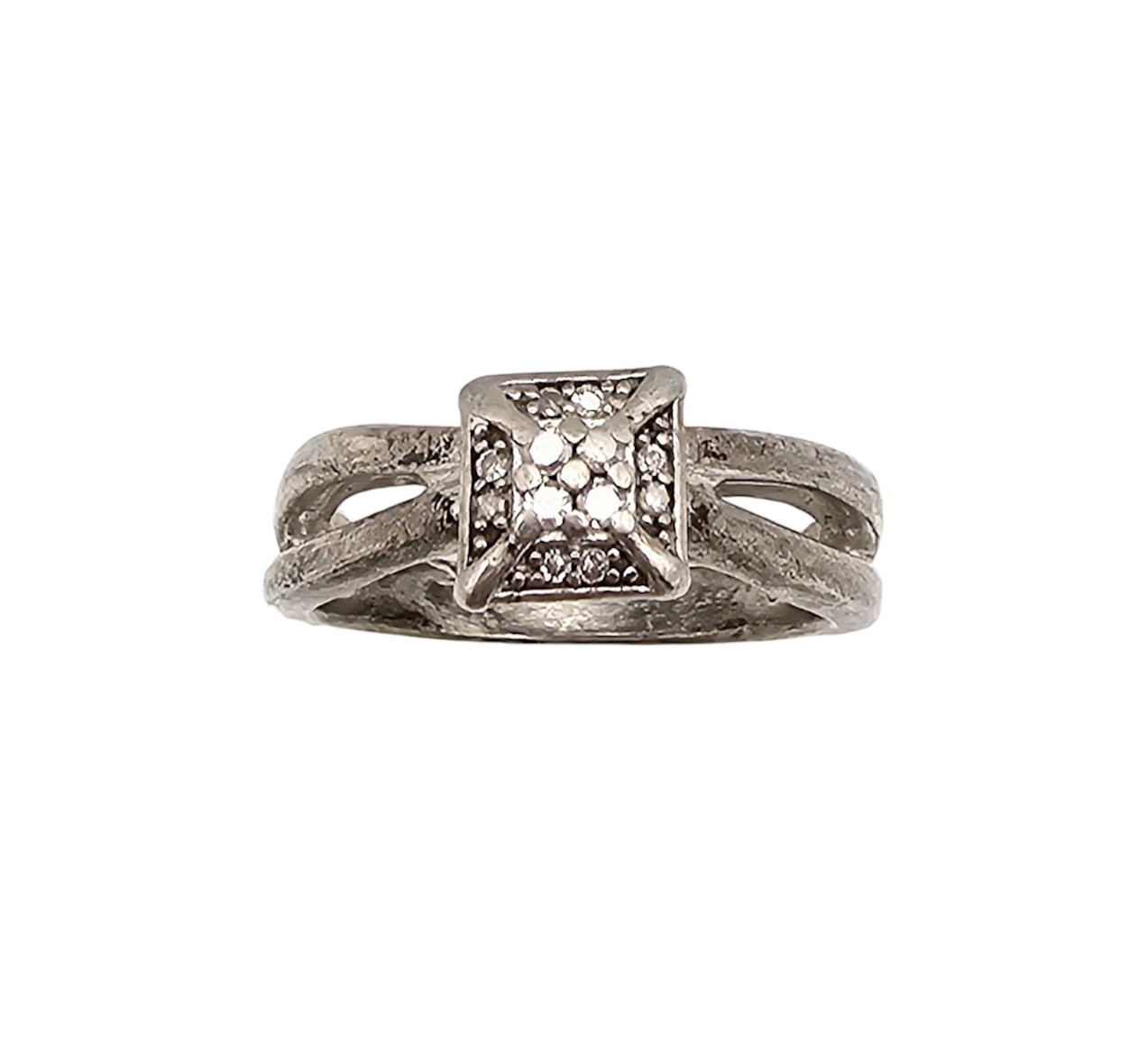 B SS Diamond Sterling Silver Cocktail Ring Size 6.25 4.7 G