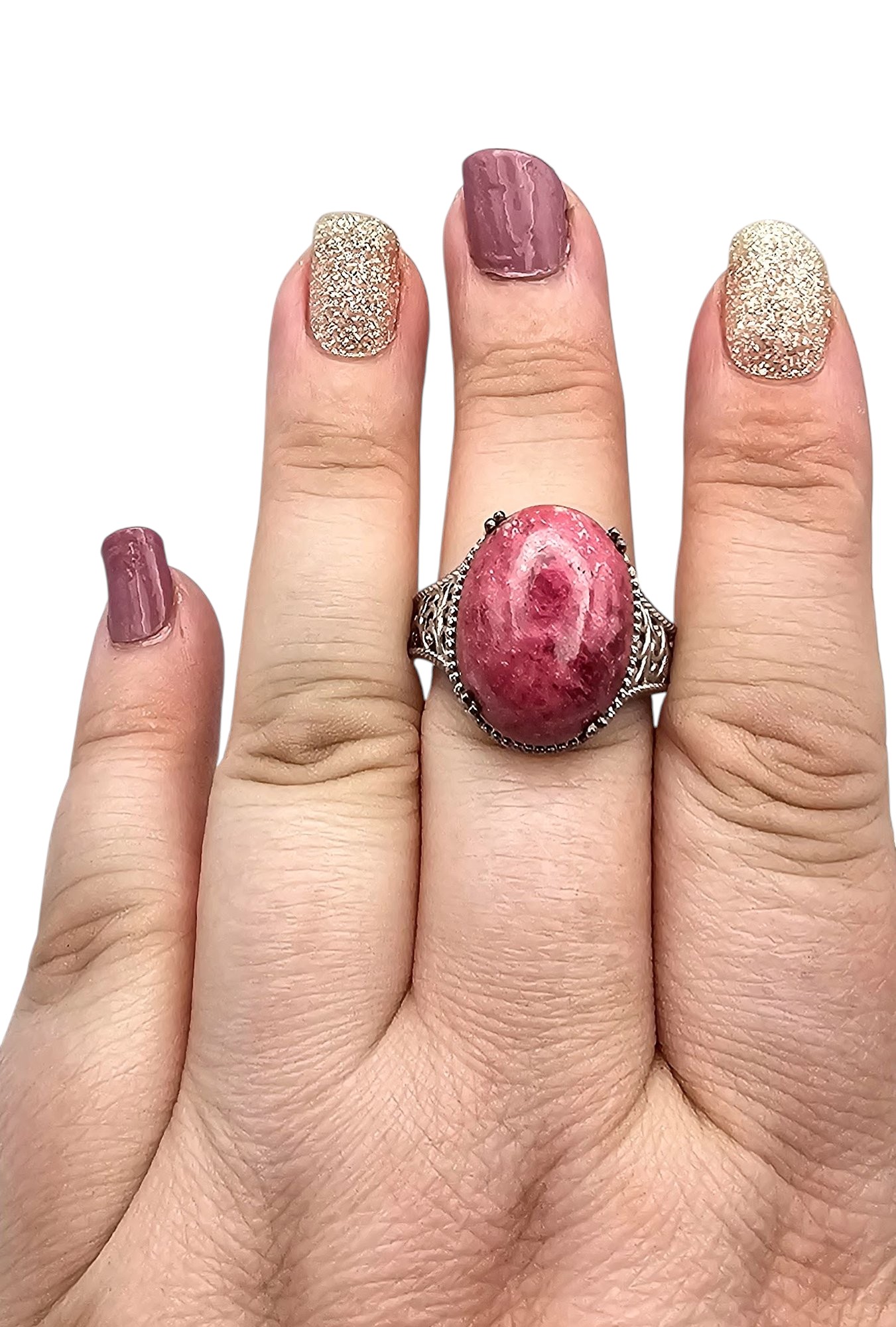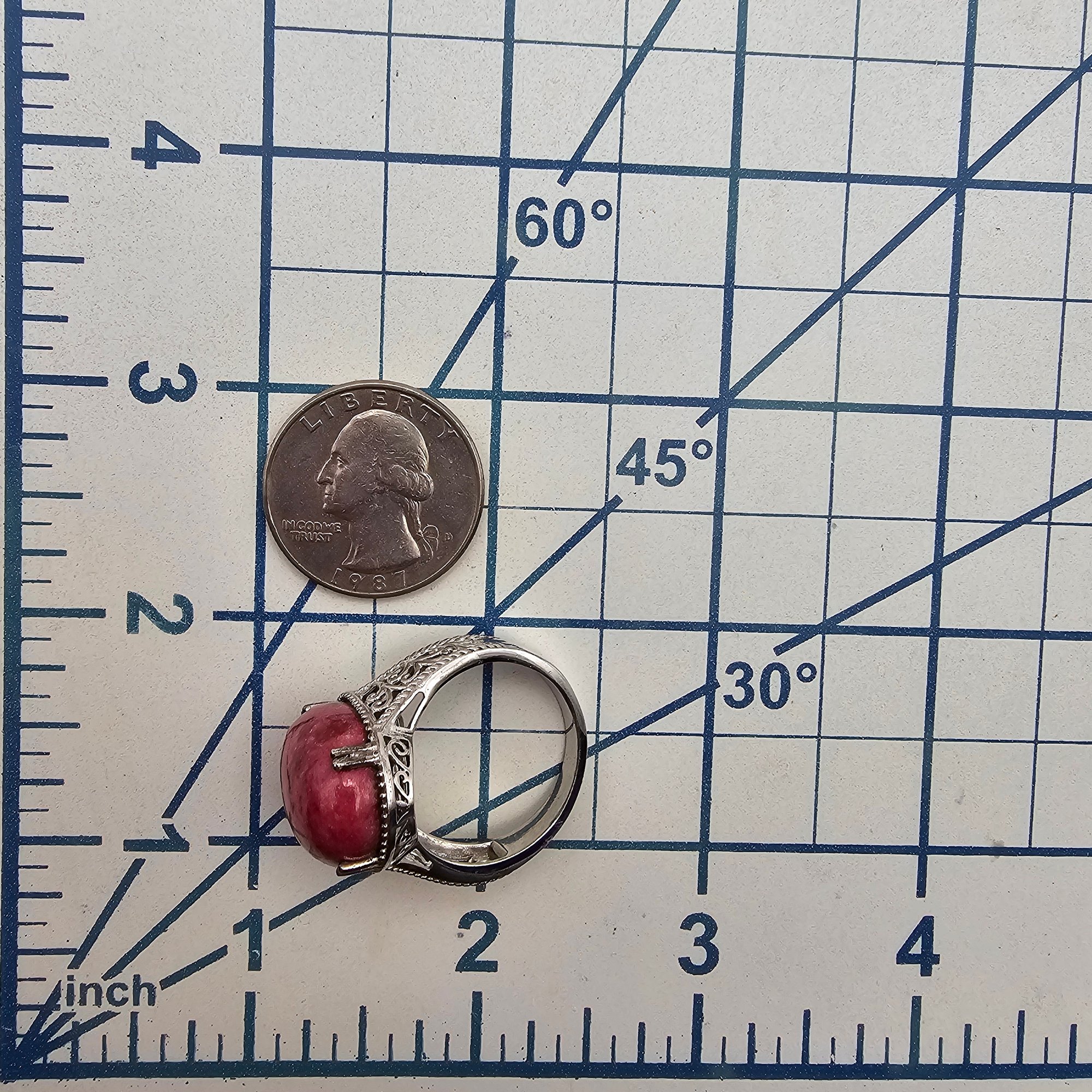 D'Joy Rhodonite Sterling Silver Ring Size 10.5 10.4 G