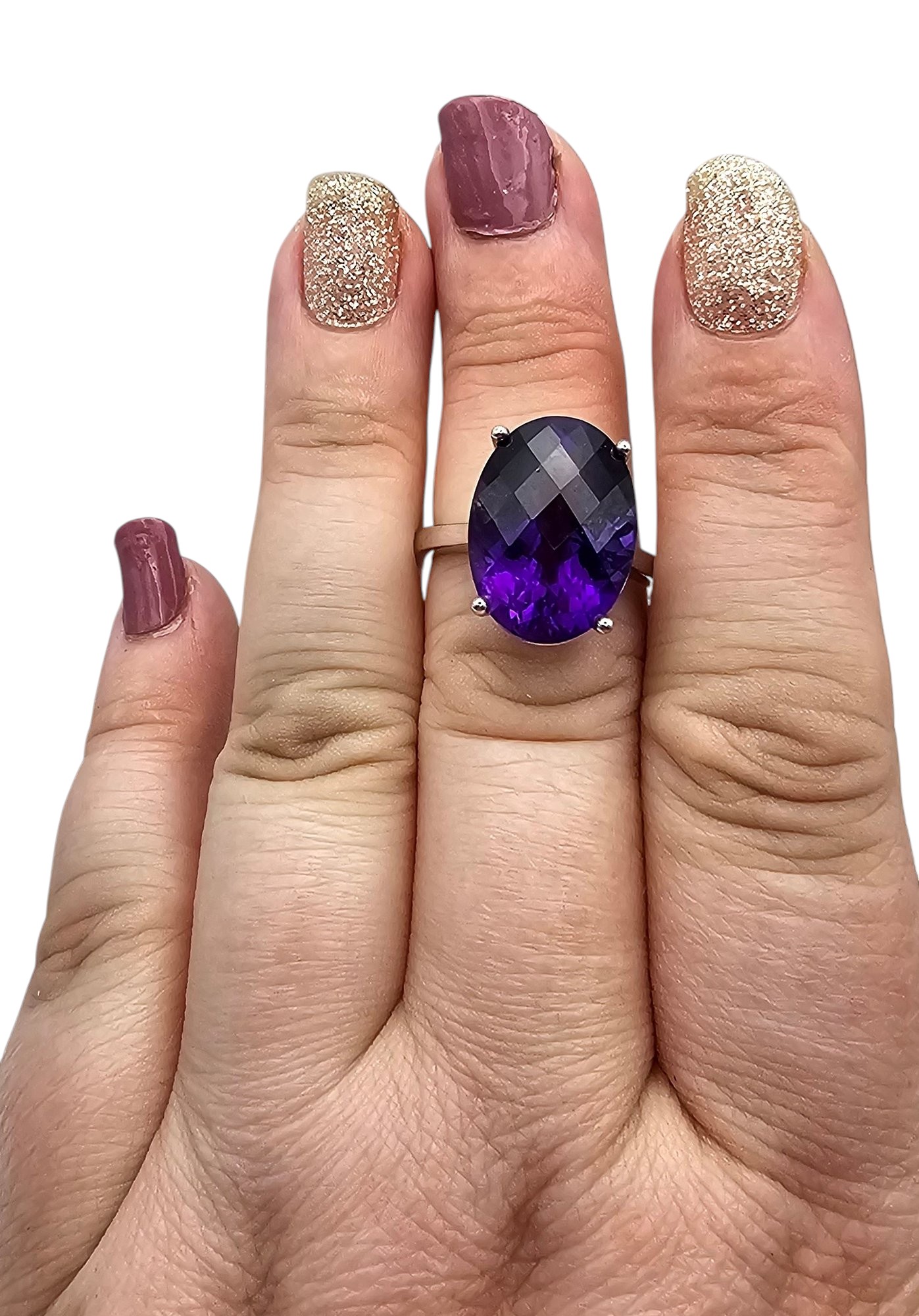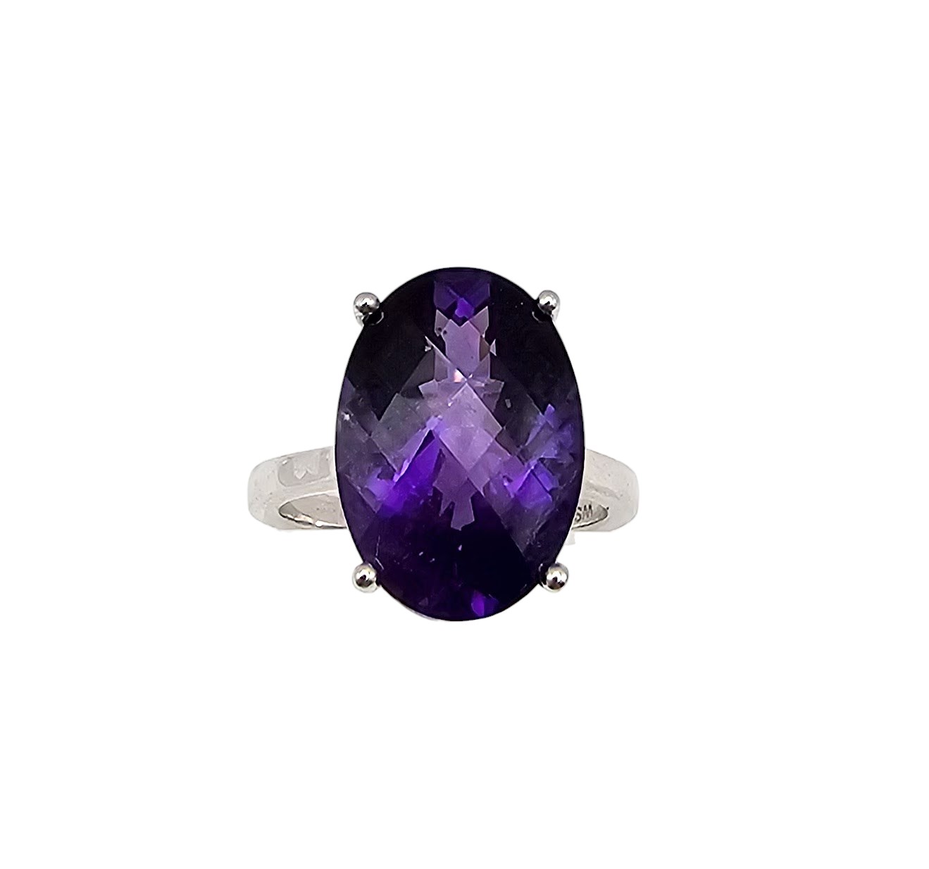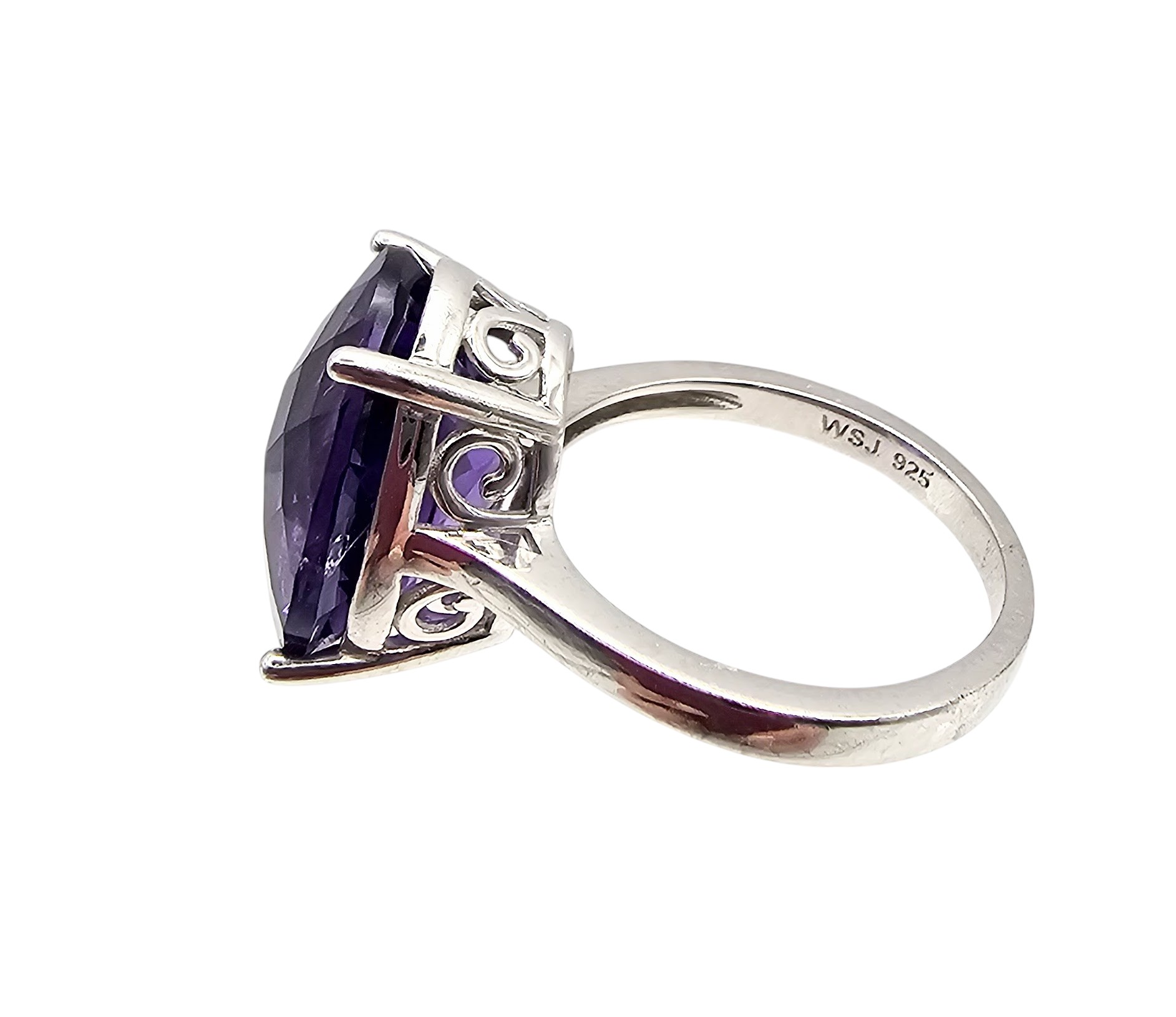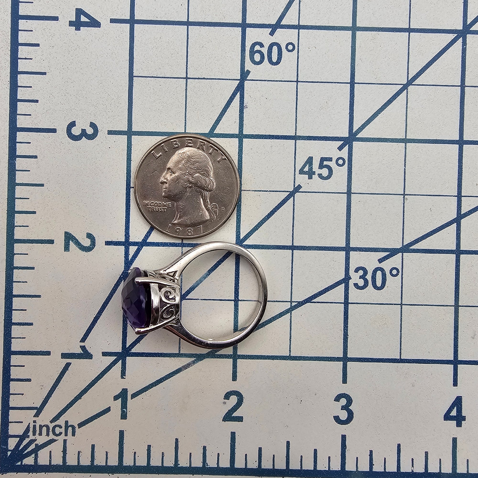 WSJ Cushion Cut Amethyst Sterling Silver Cocktail Ring Size 9.25 7.1 G