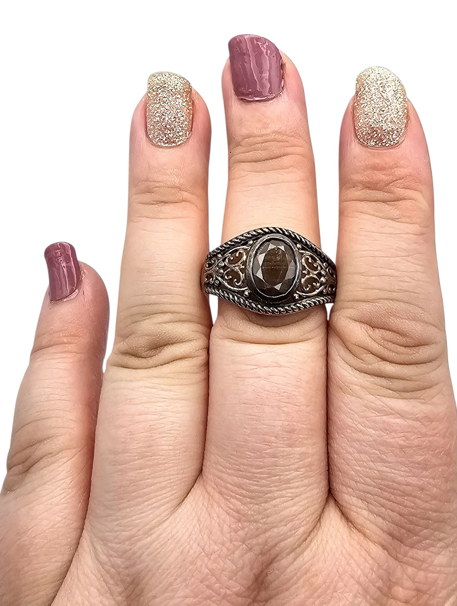 STS Chocolate Sapphire Sterling Silver Cocktail Ring Size 9.5 5.5 G