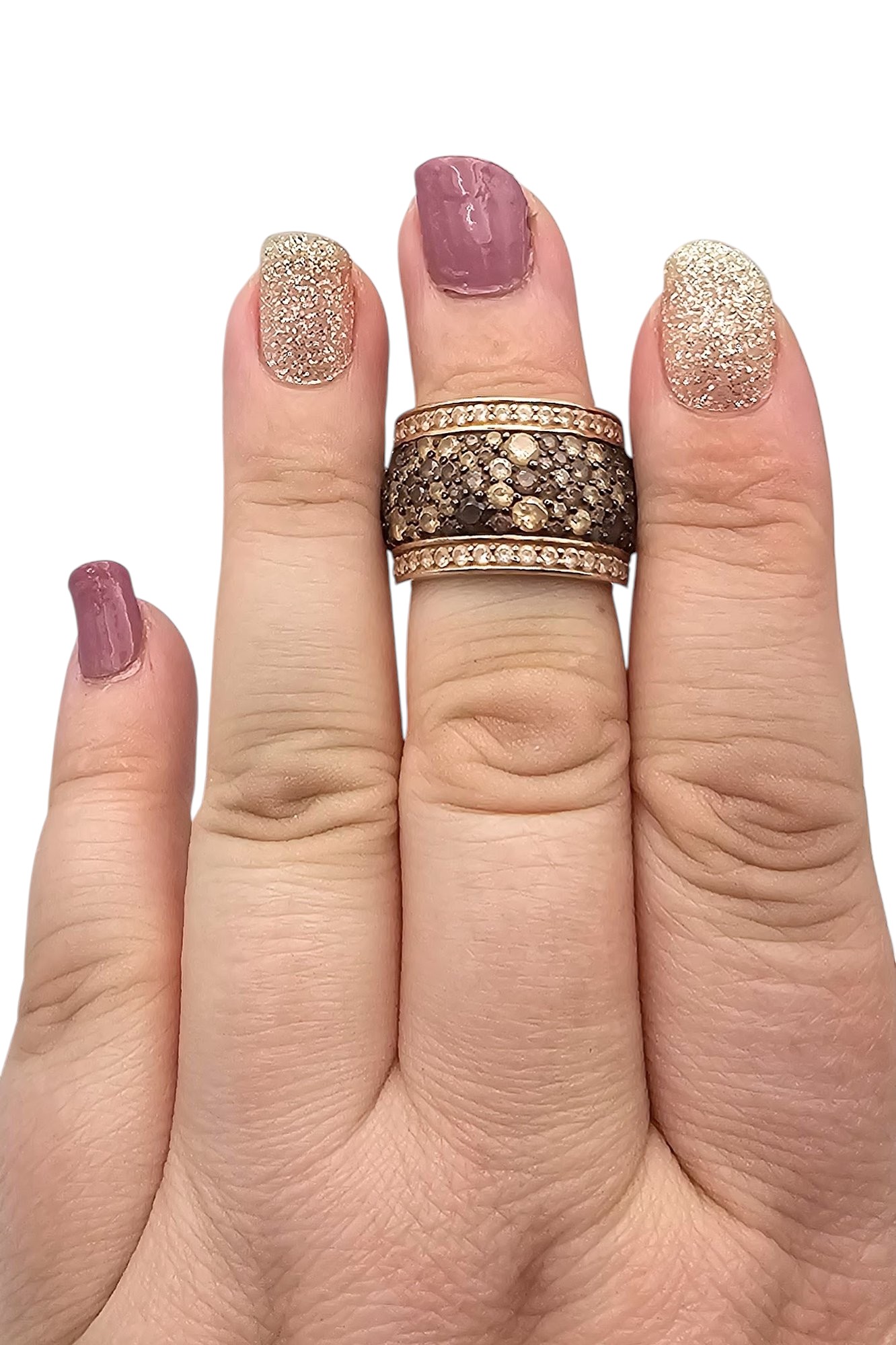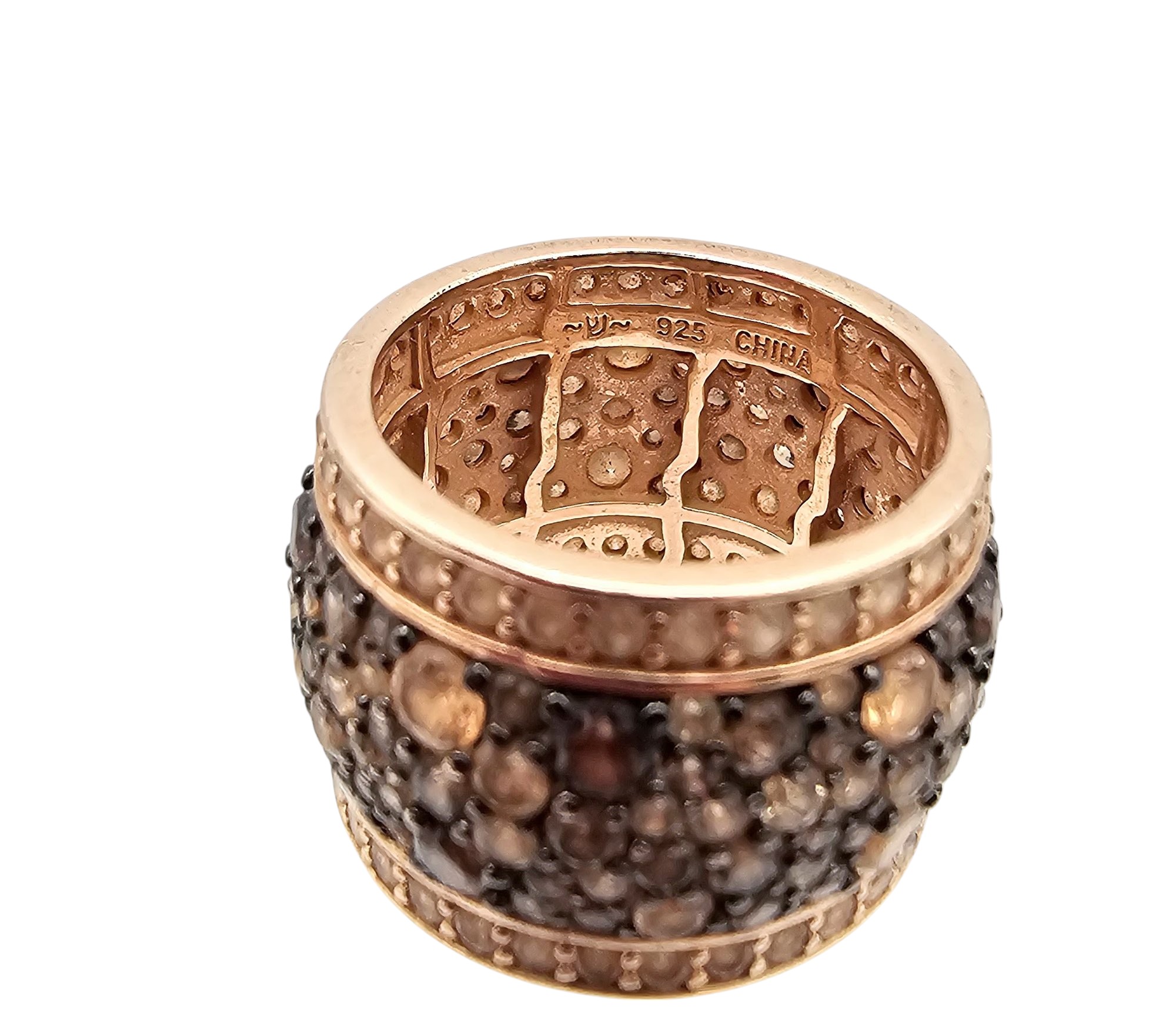 YJ Rhinestone Rose Gold Over Sterling Silver Cocktail Ring Size 6.25 11.9 G
