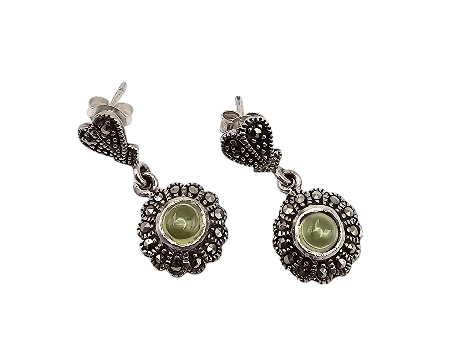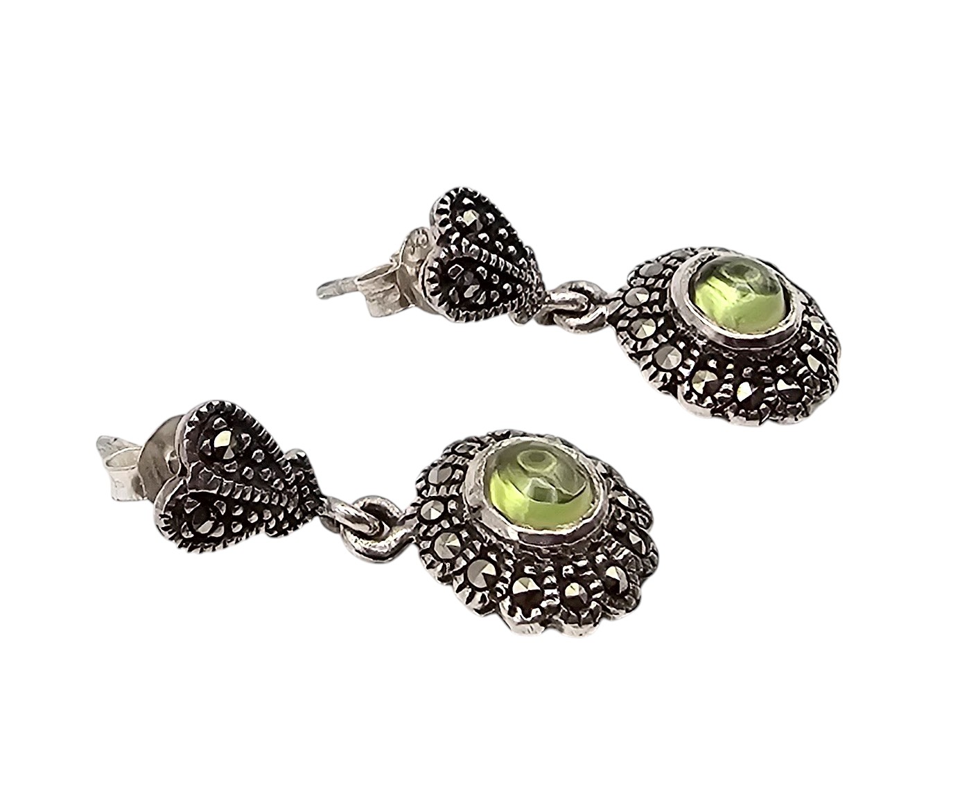 CW Rhinestone Marcasite Sterling Silver Drop Dangle Earrings 4.1 G