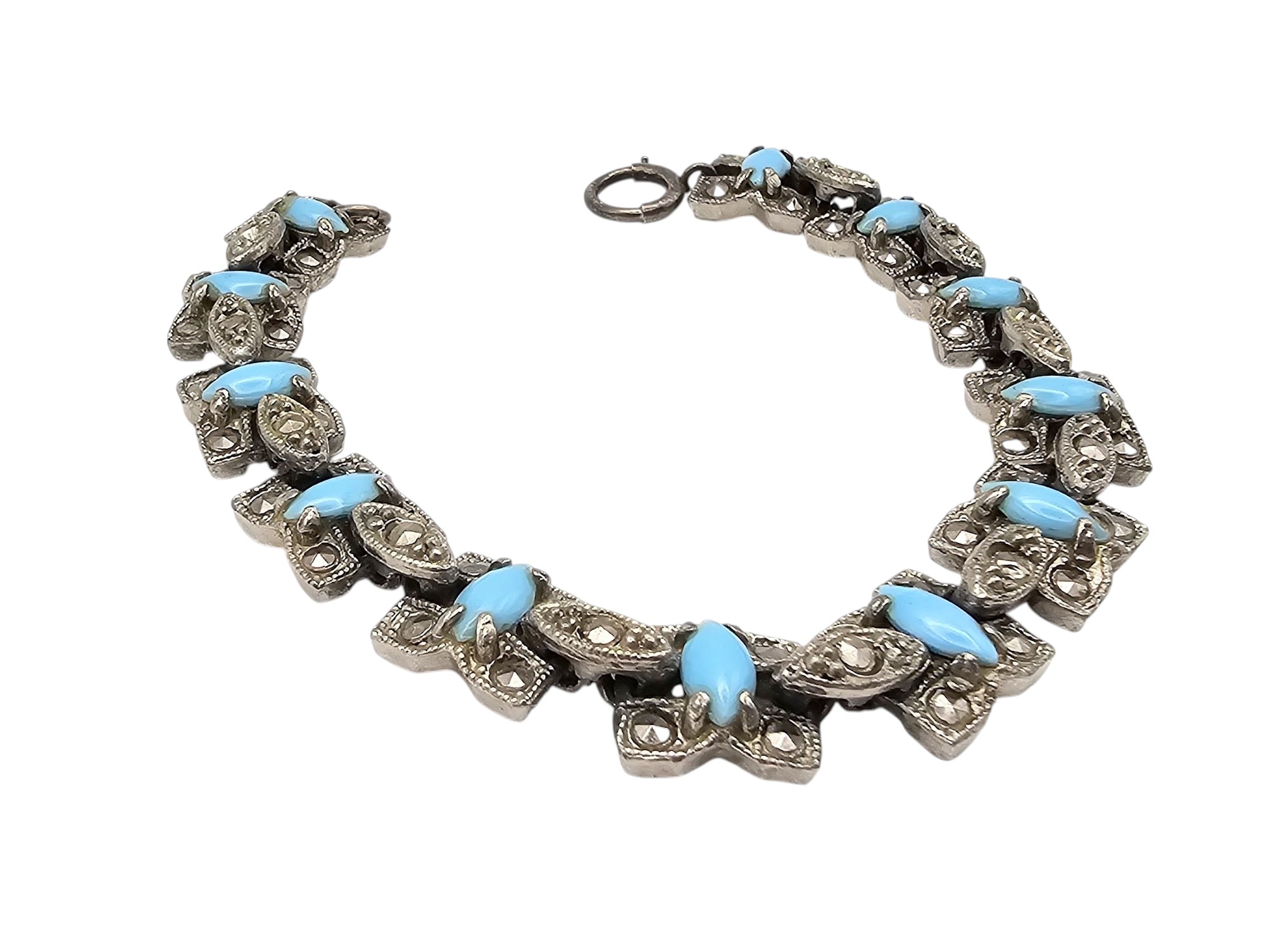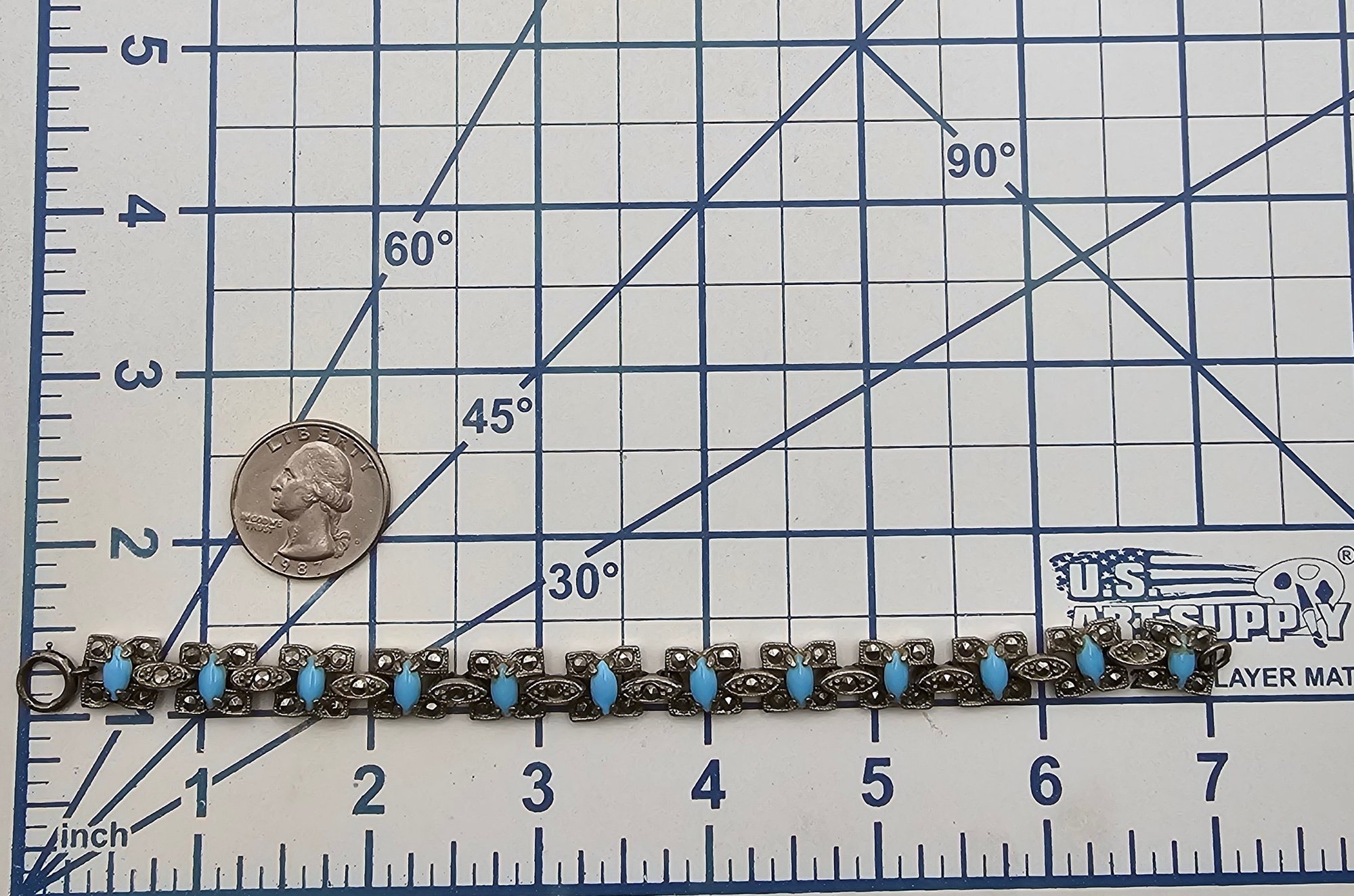 Rhinestone Marcasite Sterling Silver Bracelet 23.6 G