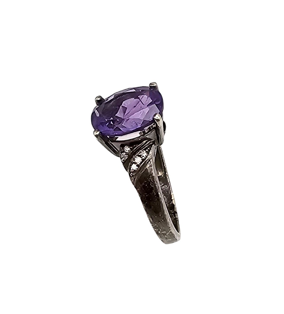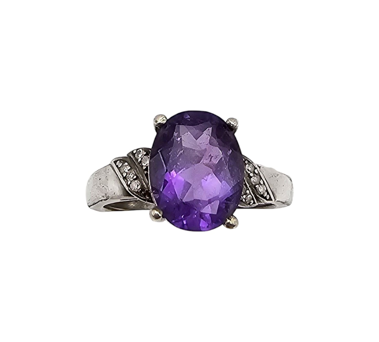 Amethyst Sterling Silver Cocktail Ring Size 5.75 2.9 G