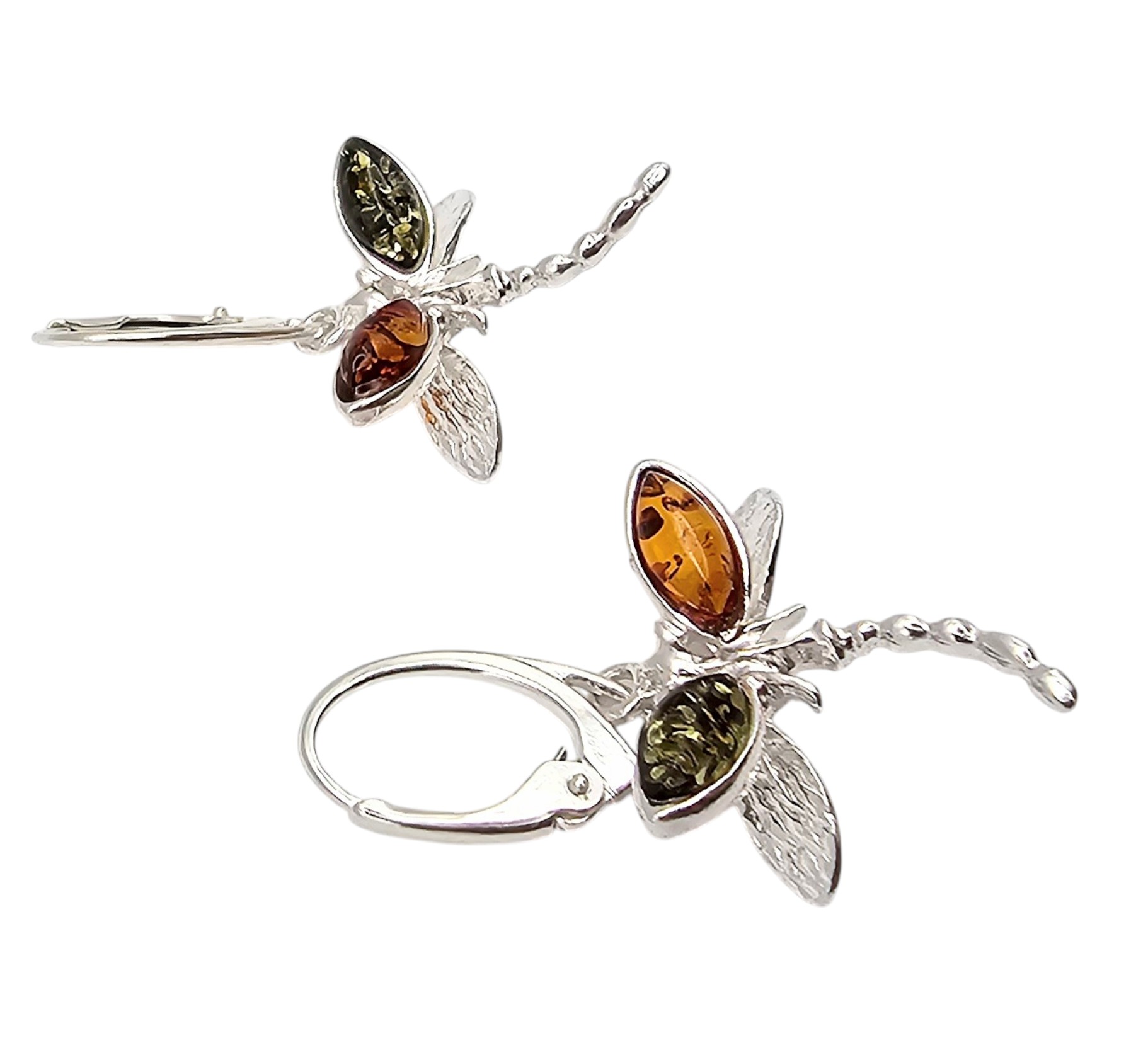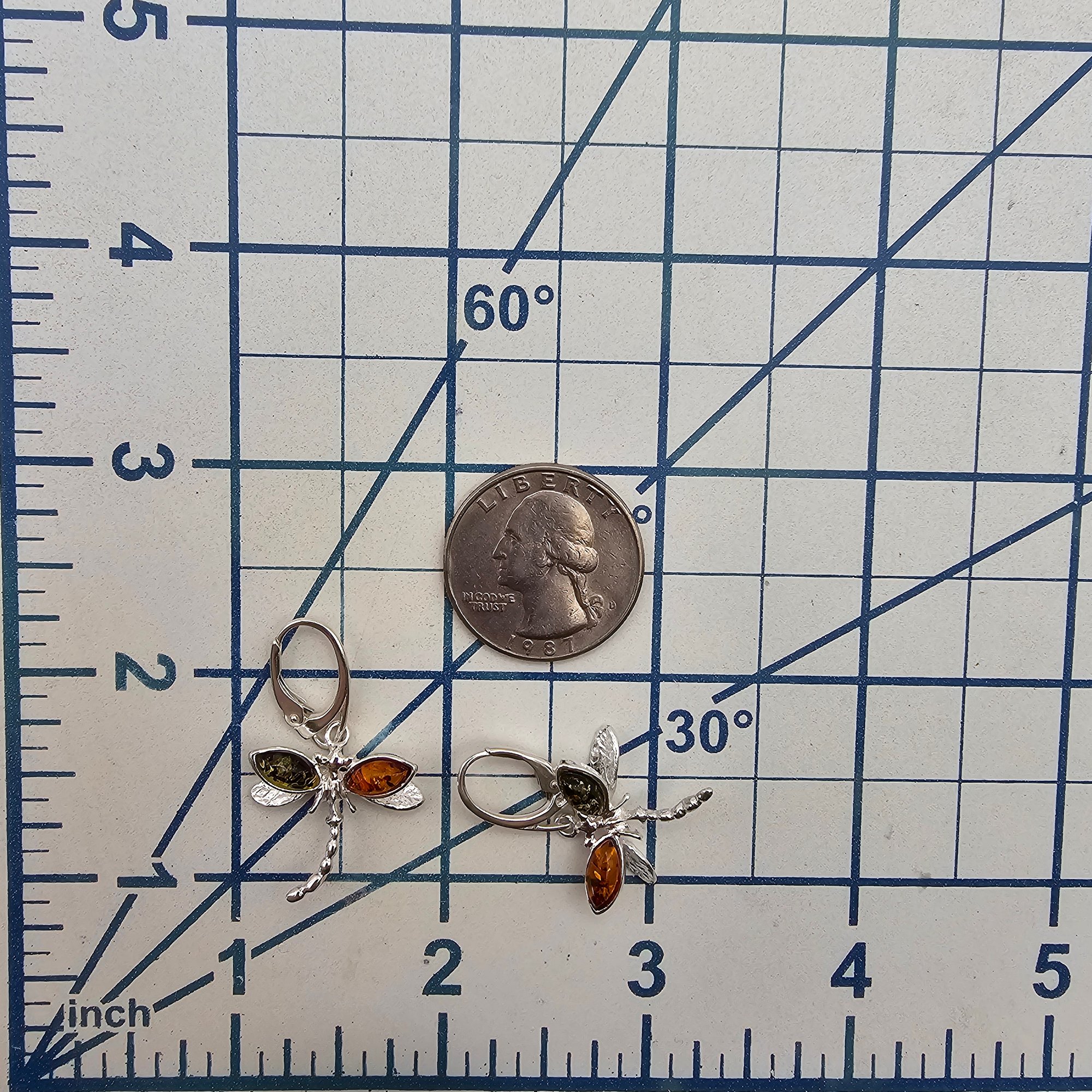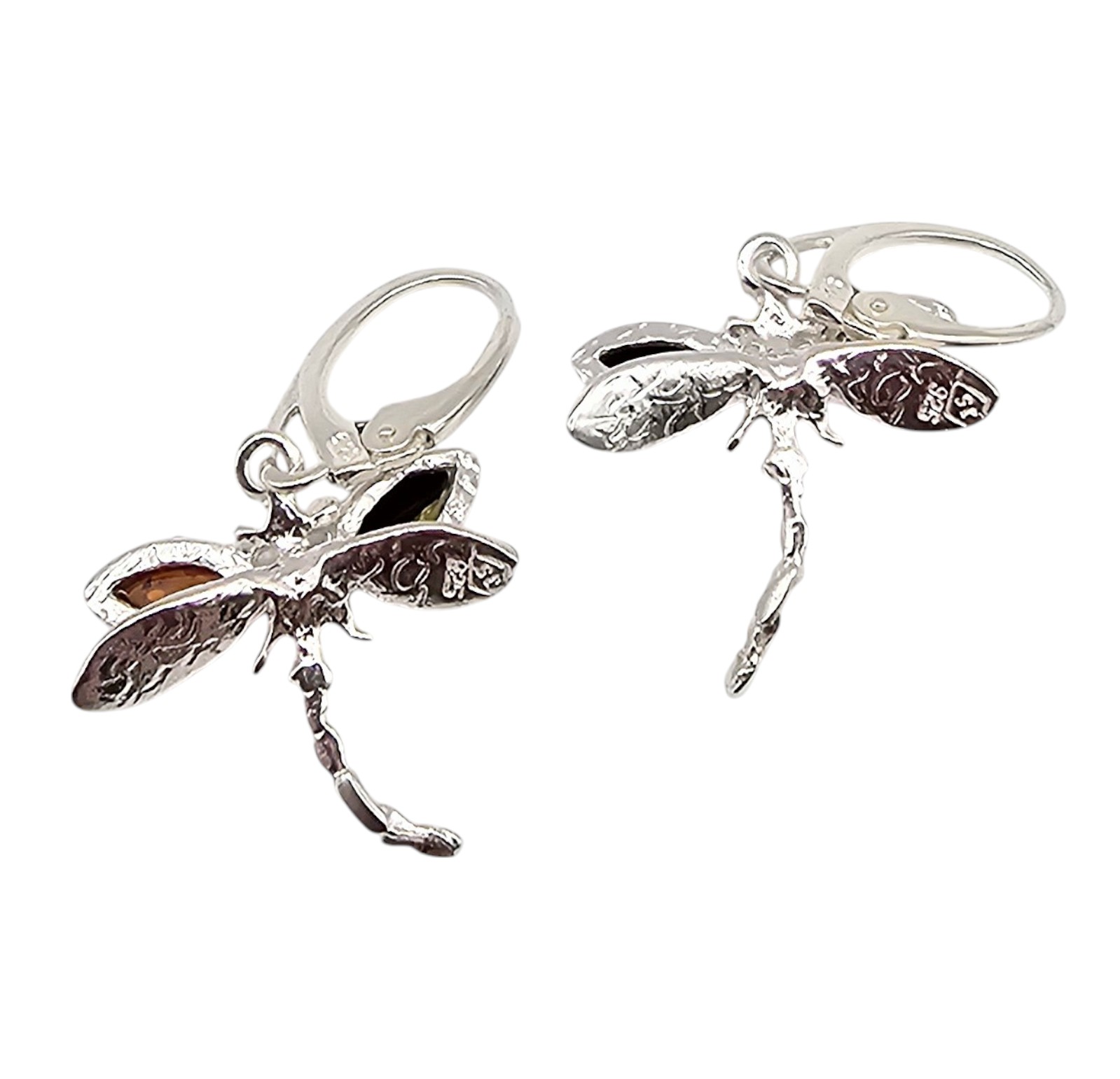 Amber Sterling Silver Dragonfly Drop Dangle Earrings 4.4 G