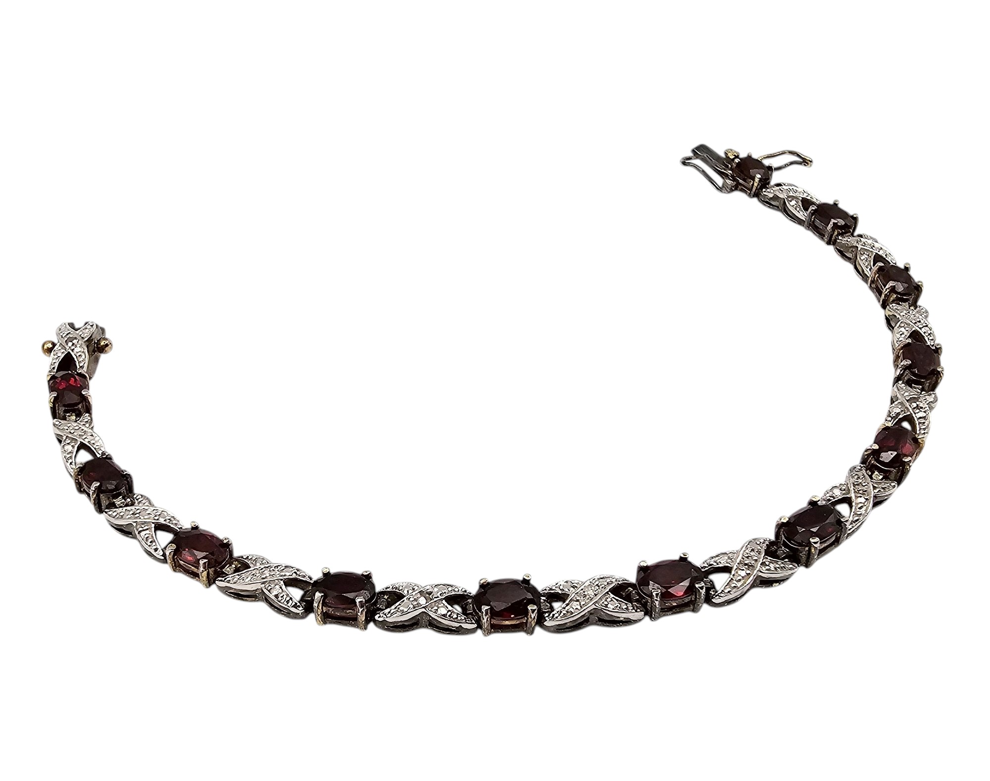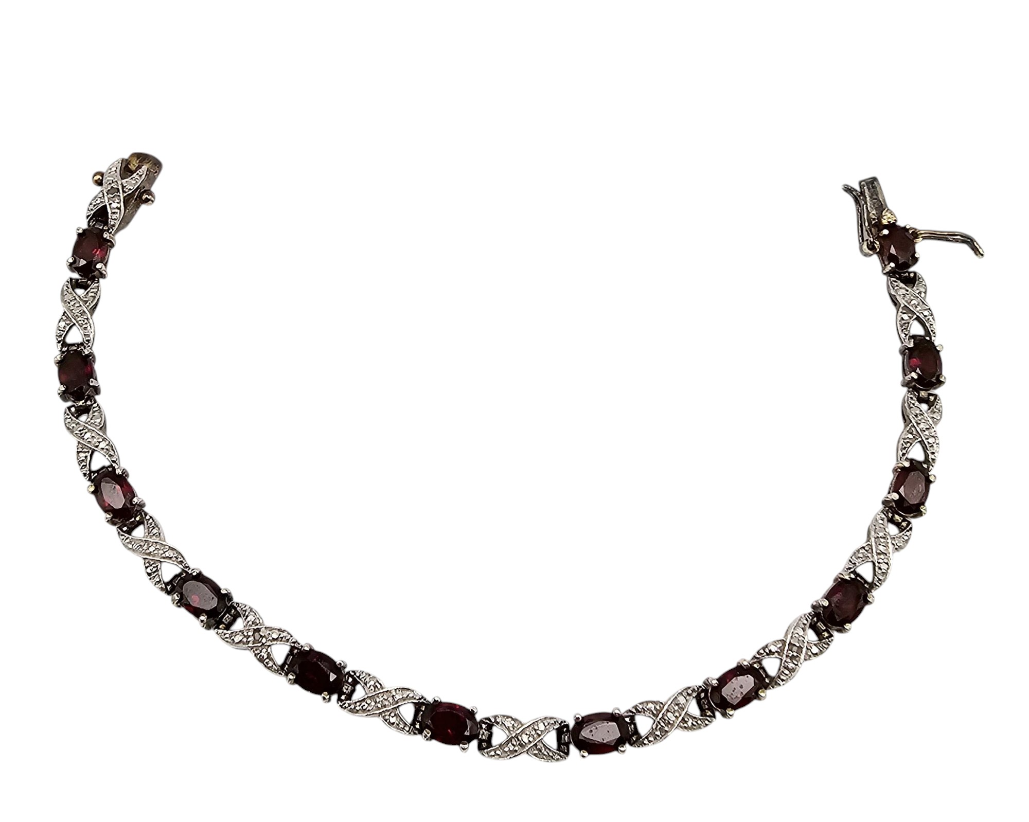 DBJ Garnet Diamond Sterling Silver Tennis Bracelet 12.2 G