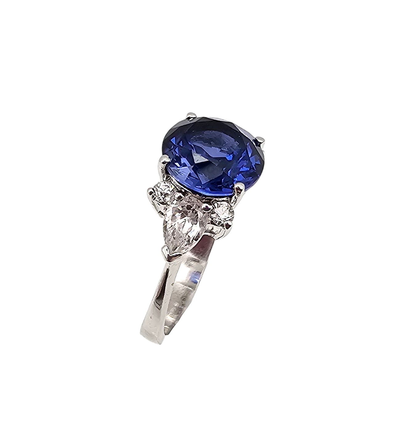 Sapphire Sterling Silver Cocktail Ring Size 7.5 5.2 G