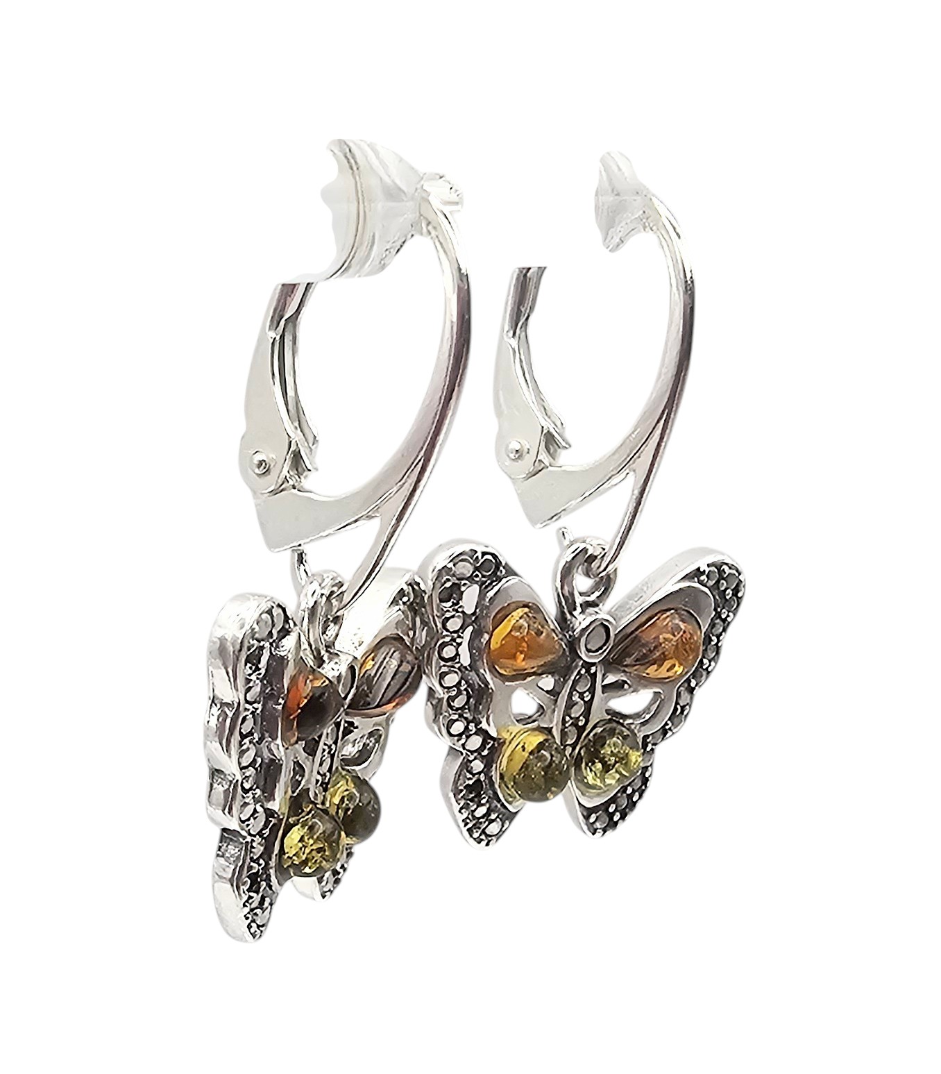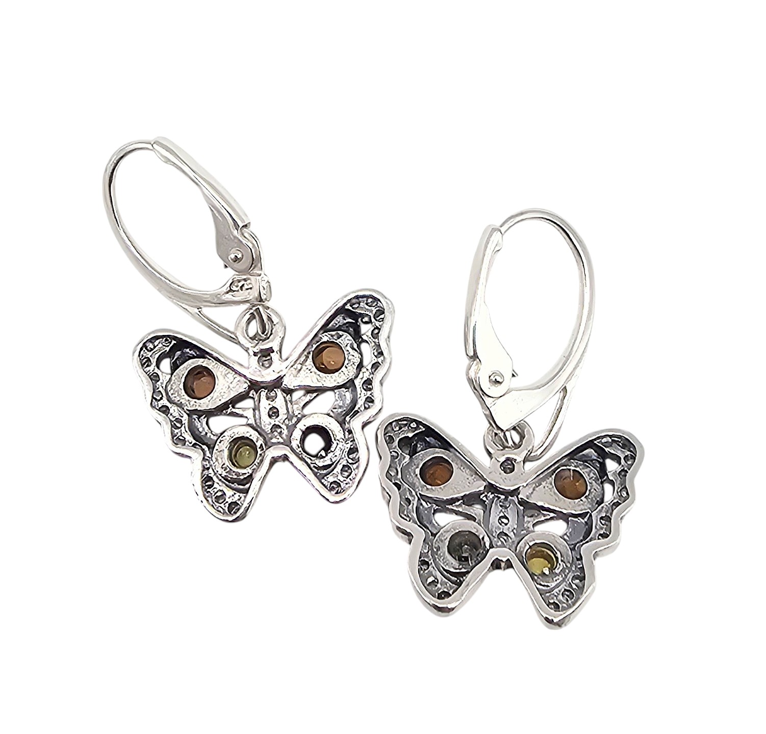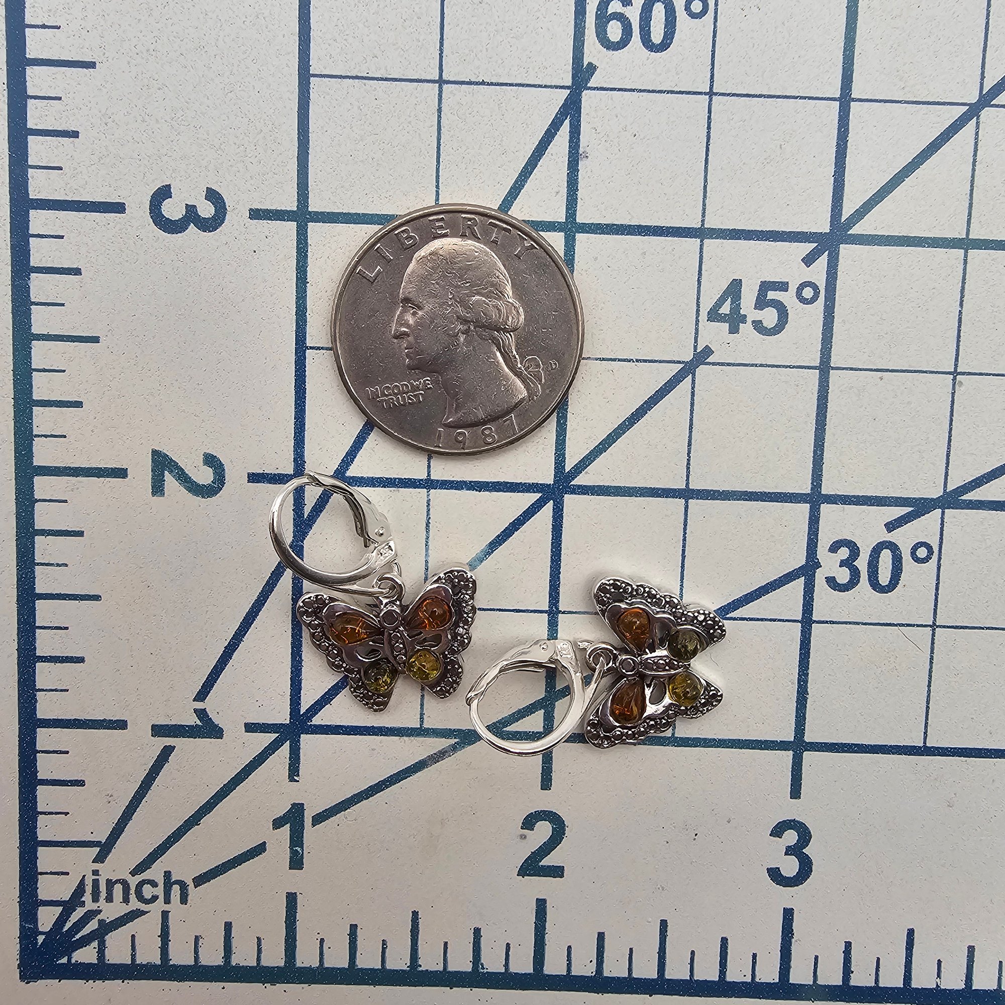 Amber Sterling Silver Butterfly Drop Dangle Earrings 4.2 G