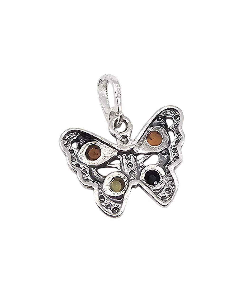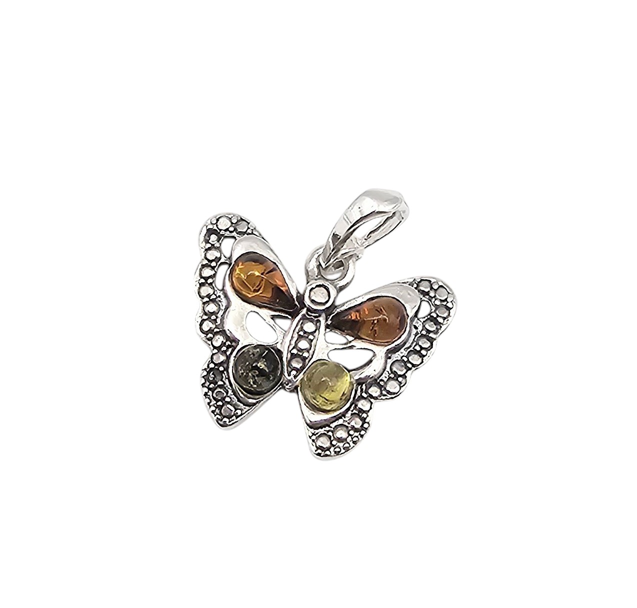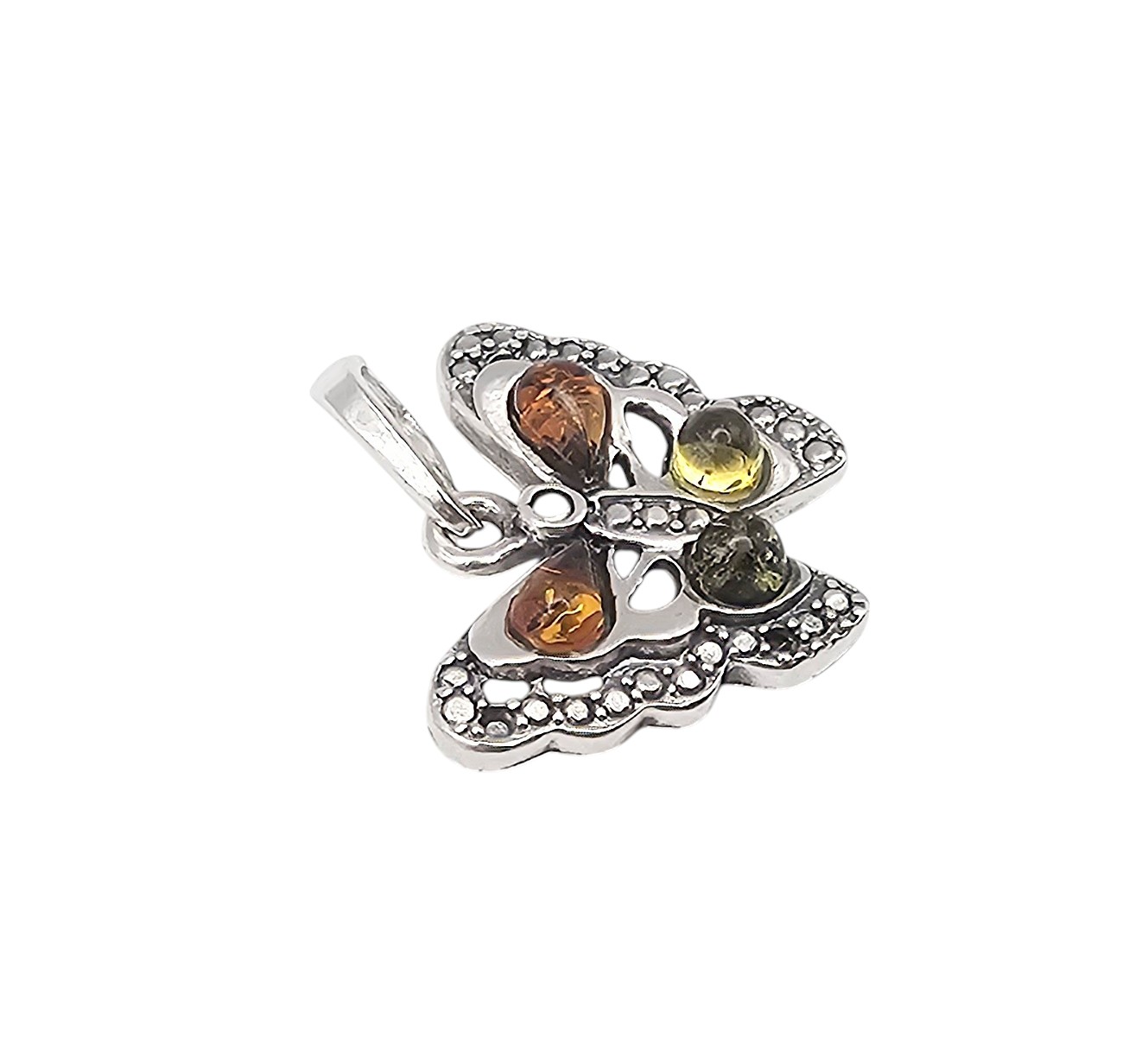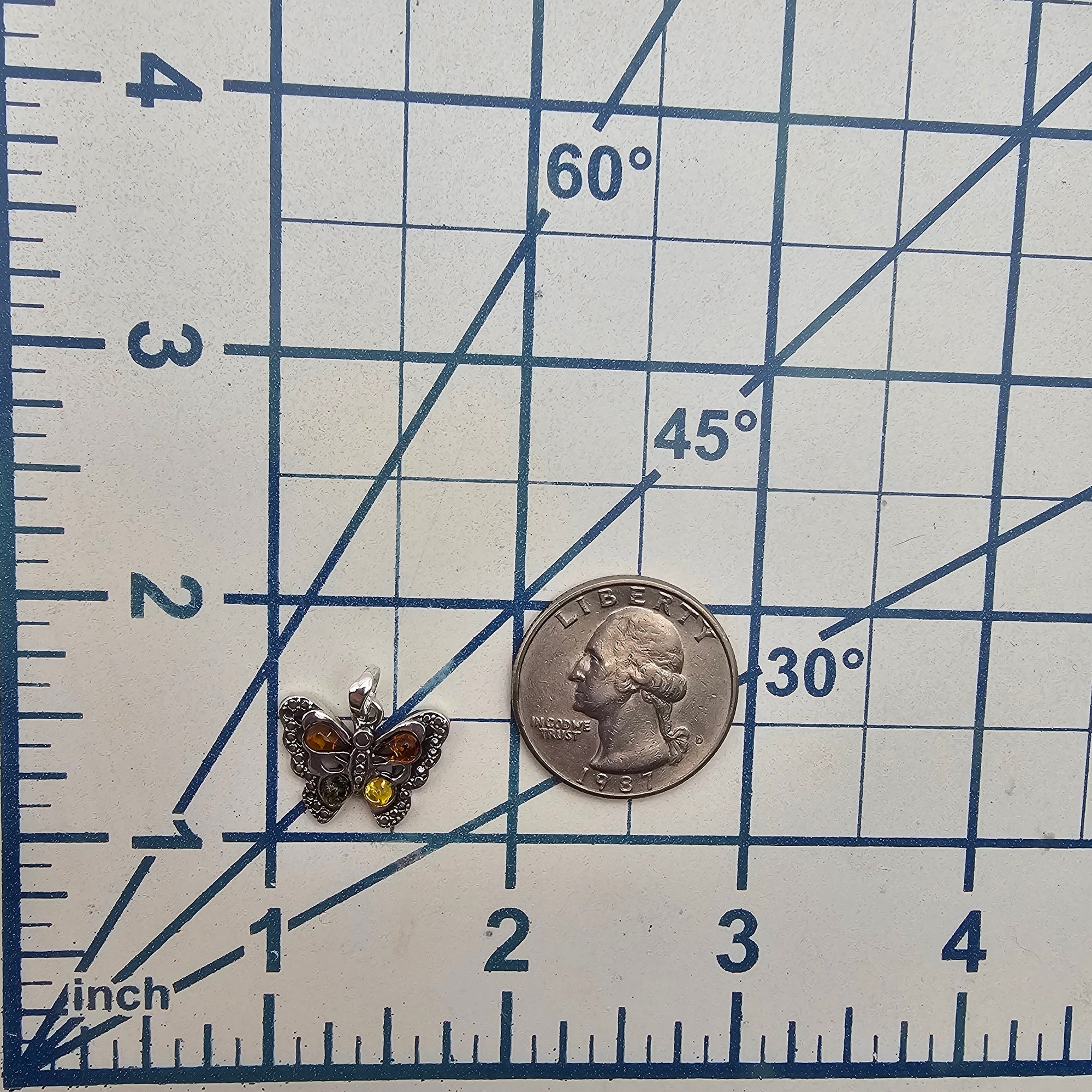 Amber Sterling Silver Butterfly Pendant 1.6 G
