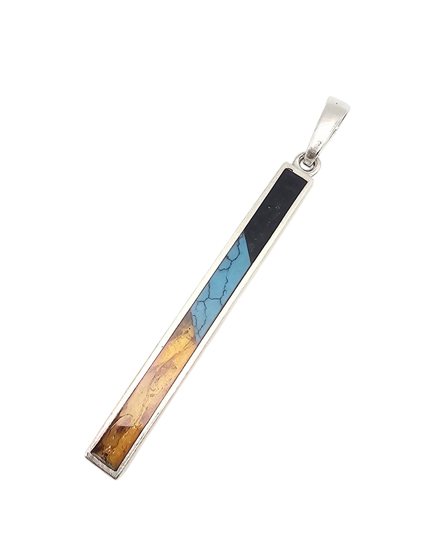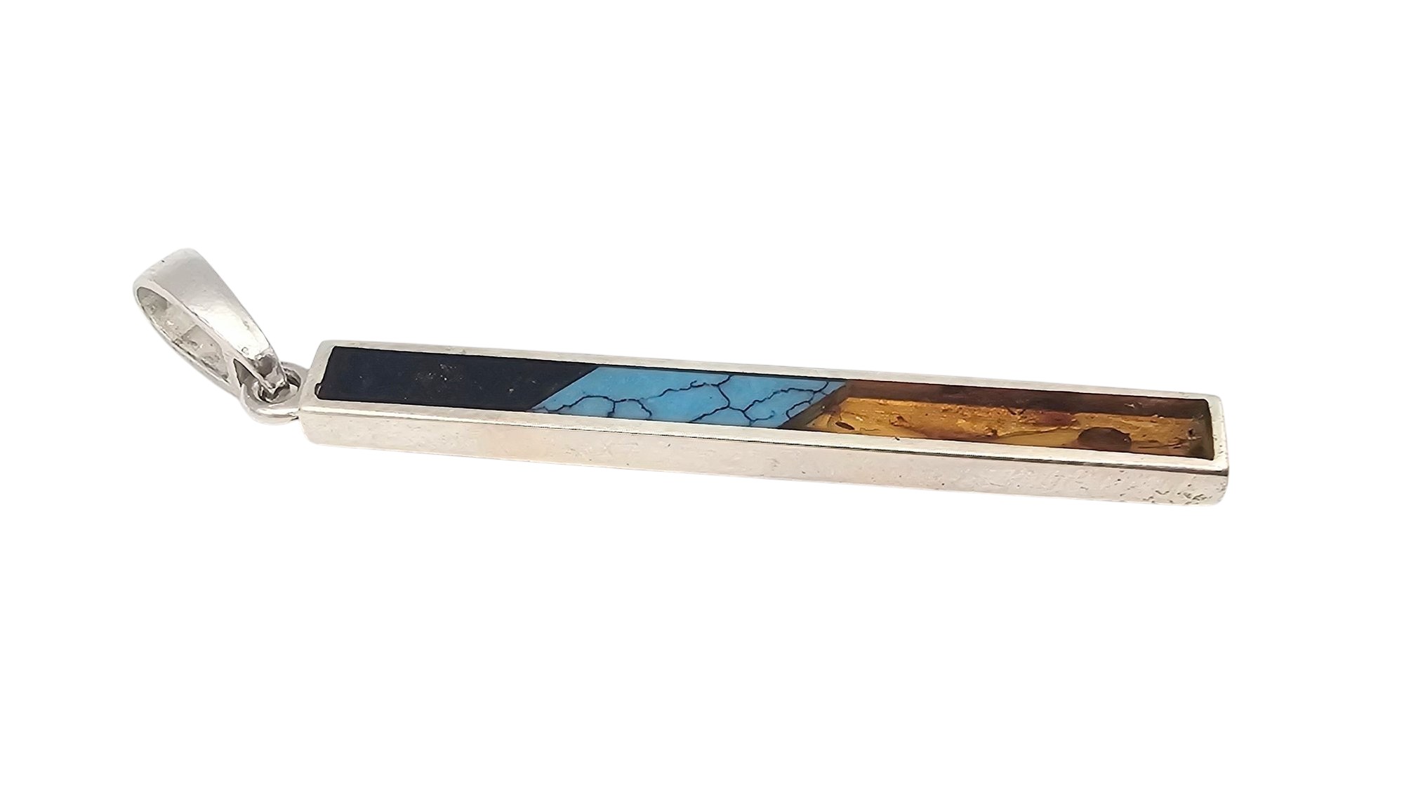 New Polish Amber Turquoise Sterling Silver Pendant 4.3 G