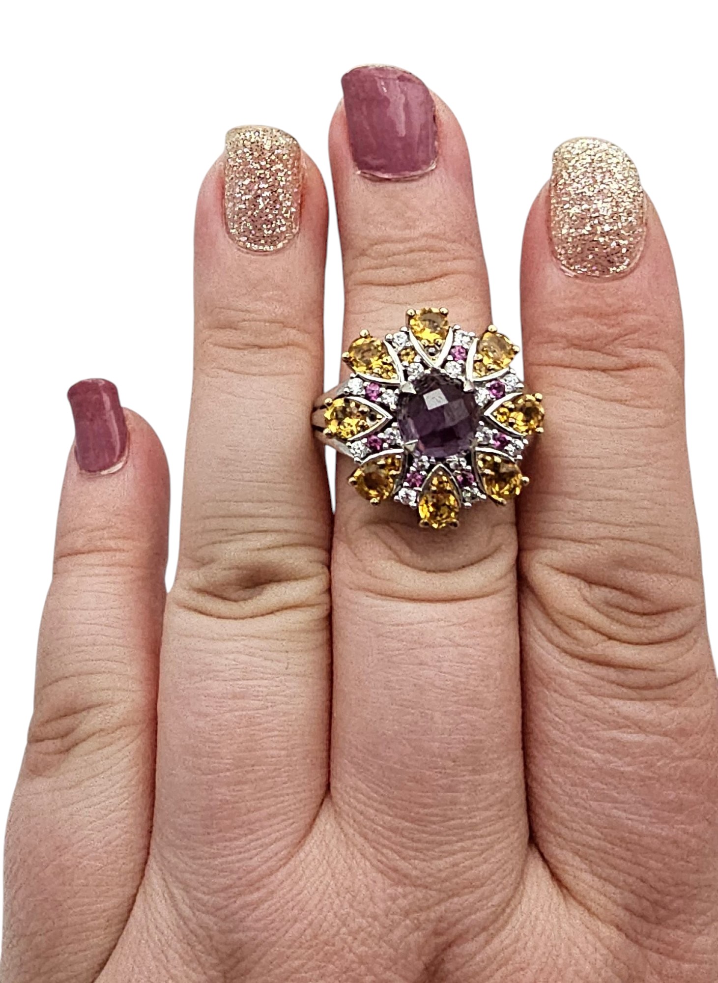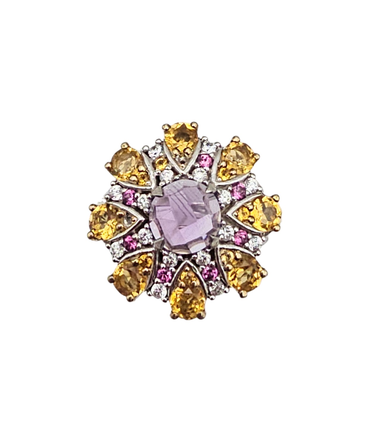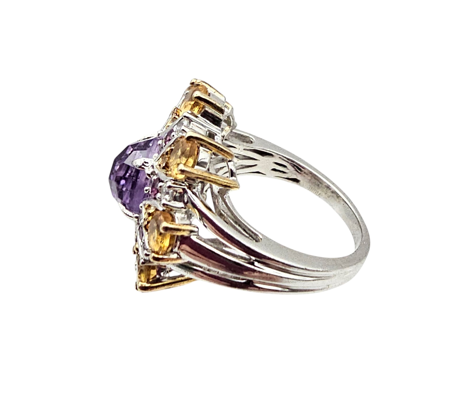 KRH Amethyst Sterling Silver Cocktail Ring Size 7.75 9.5 G