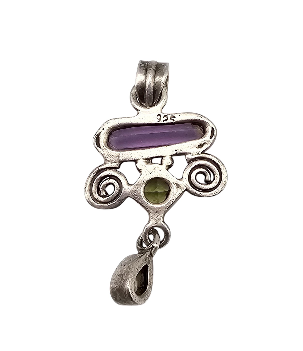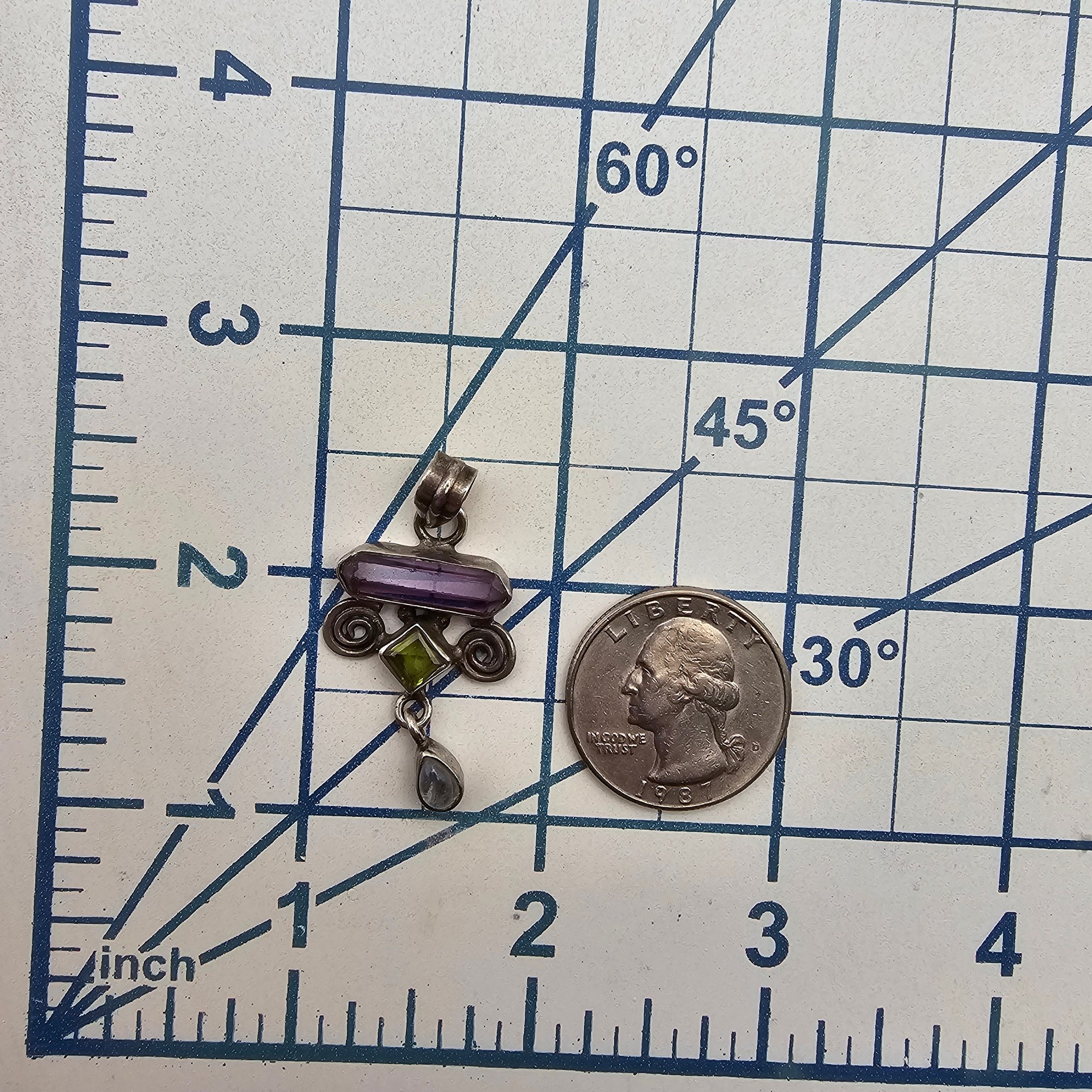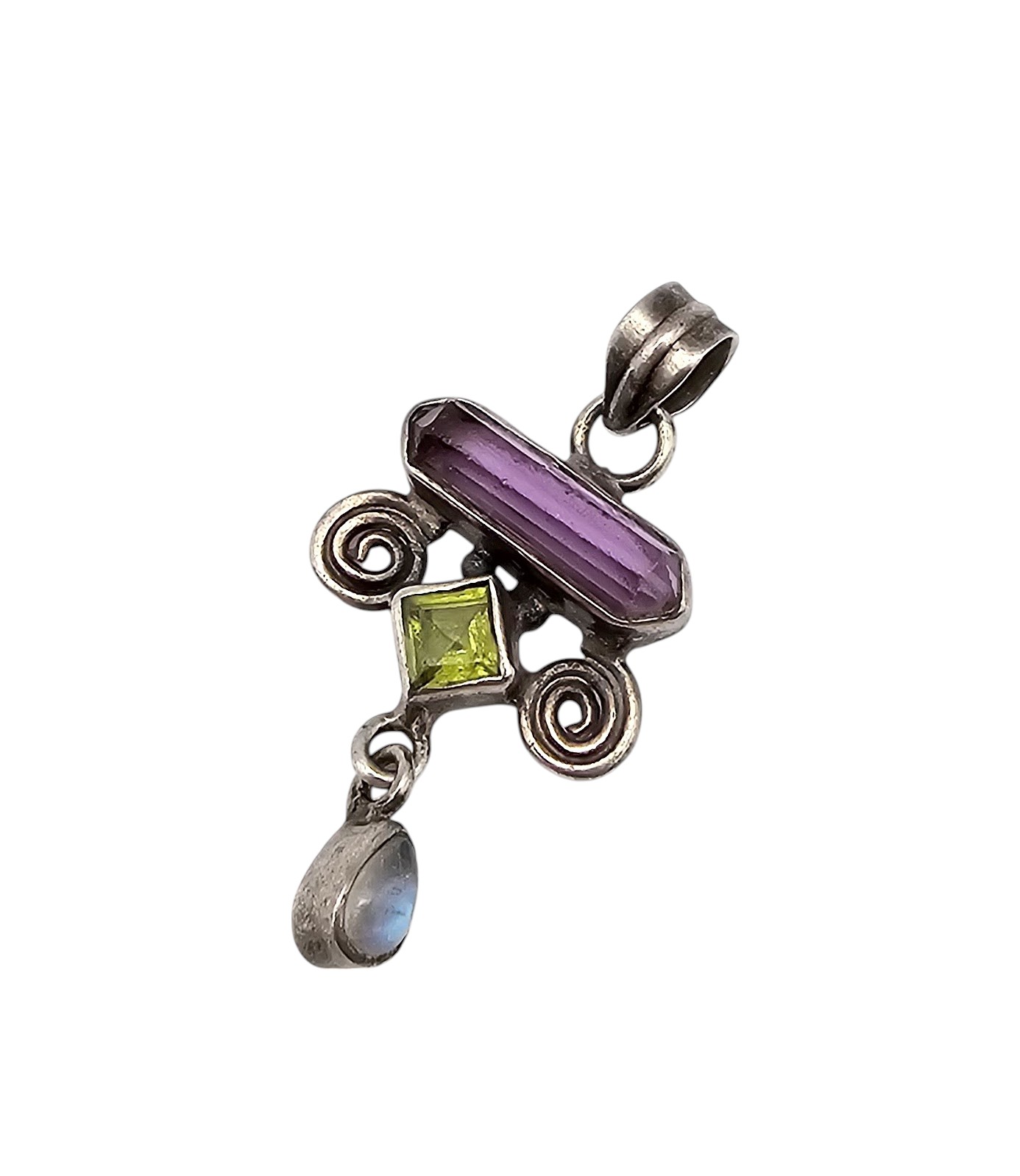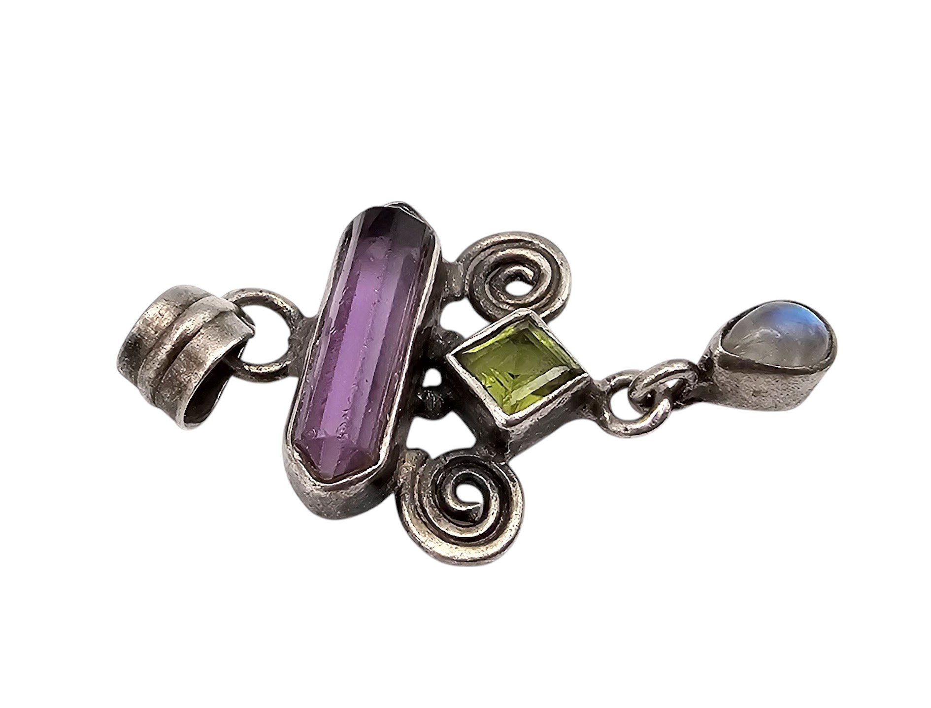 Amethyst Peridot Moonstone Sterling Silver Pendant 4.6 G