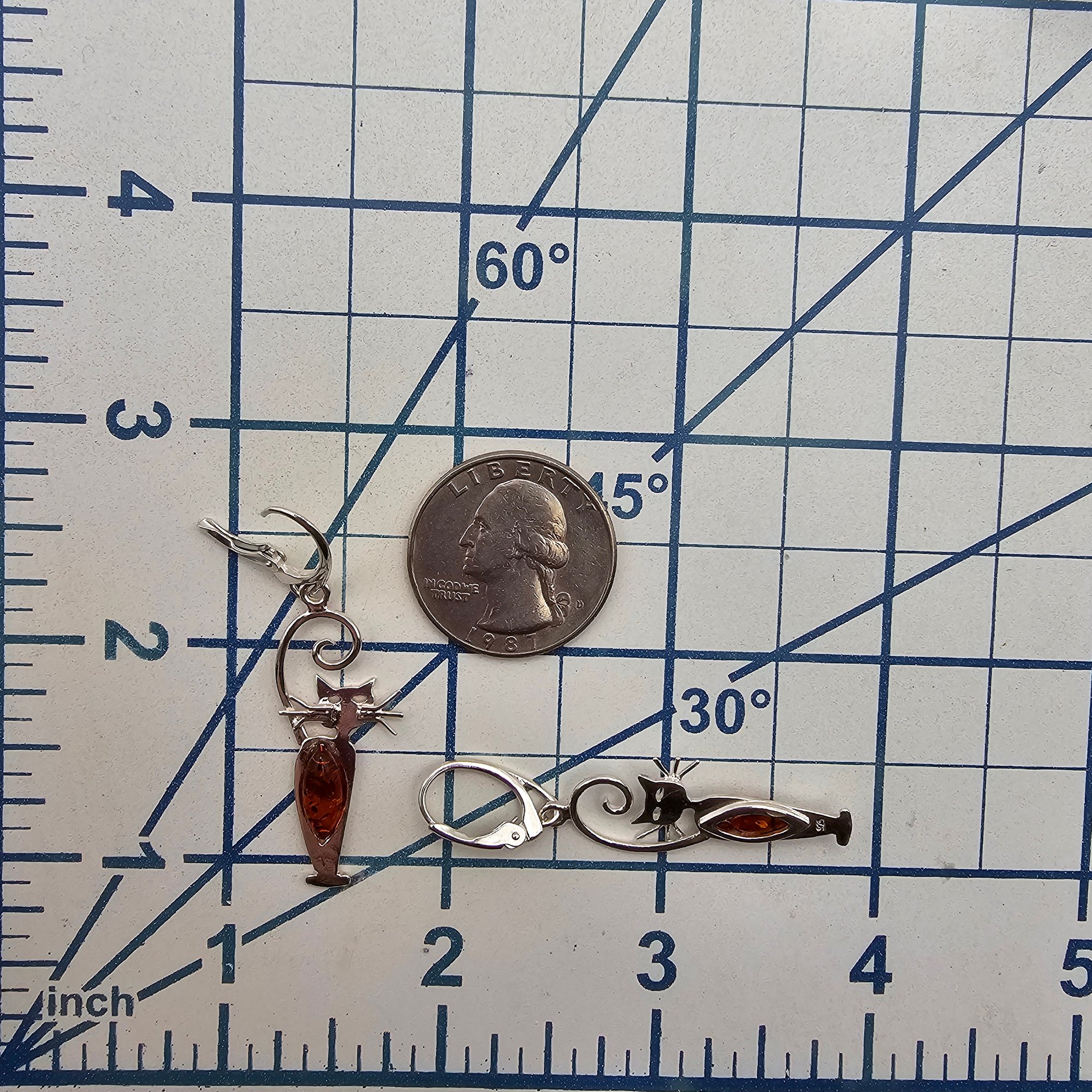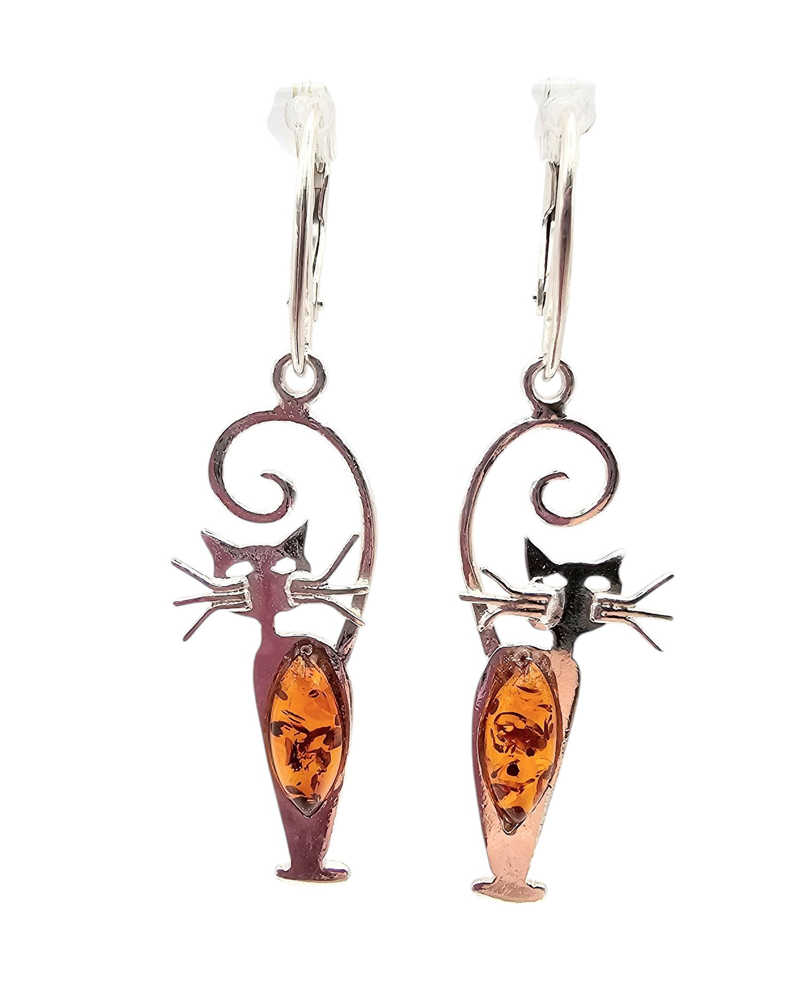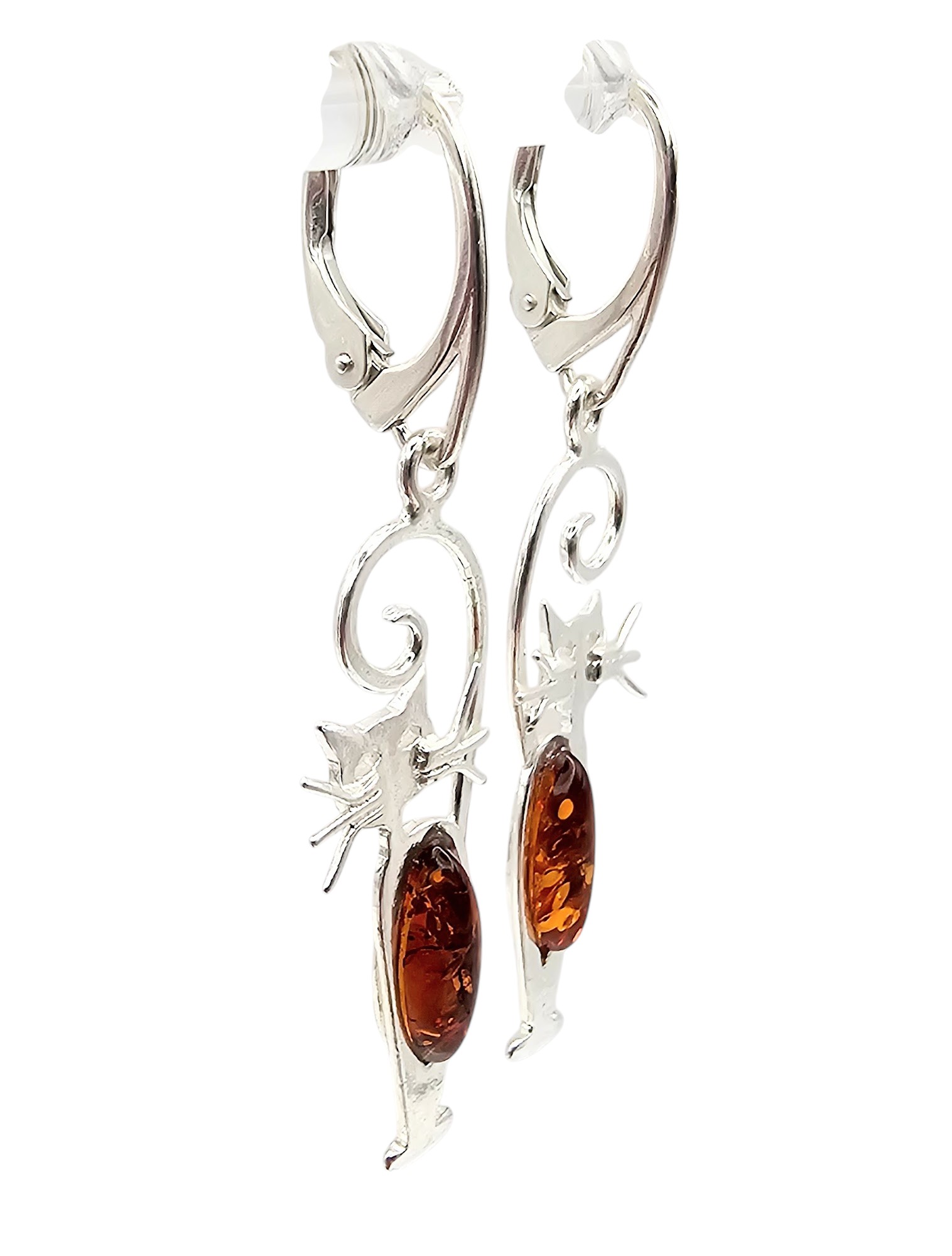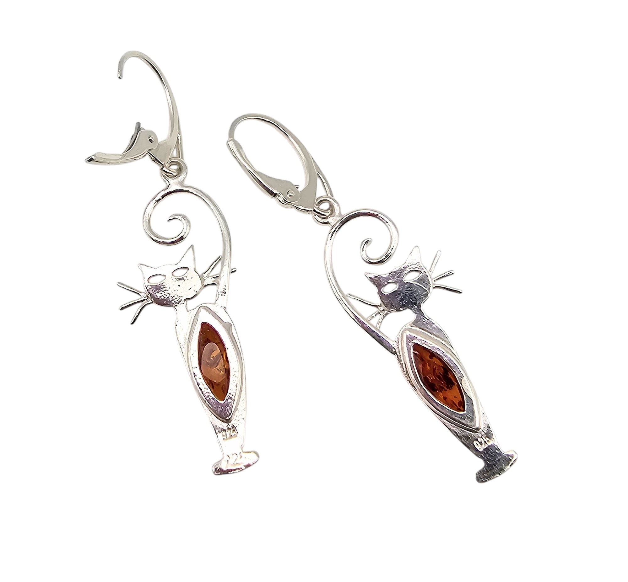Amber Sterling Silver Cat Drop Dangle Earrings 3.9 G