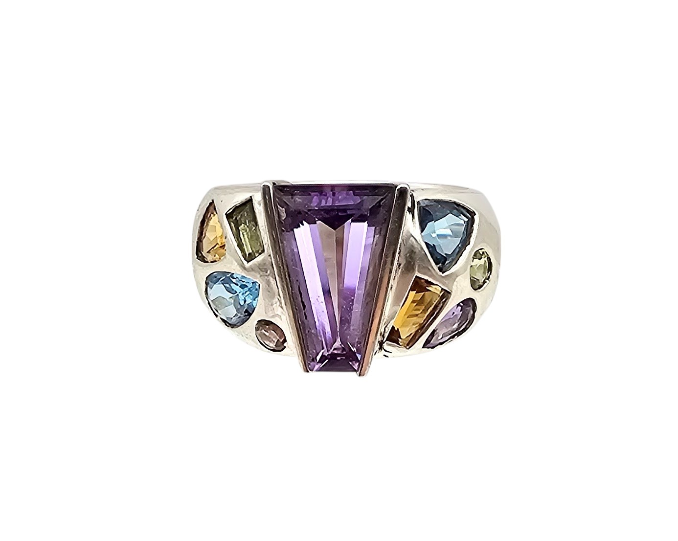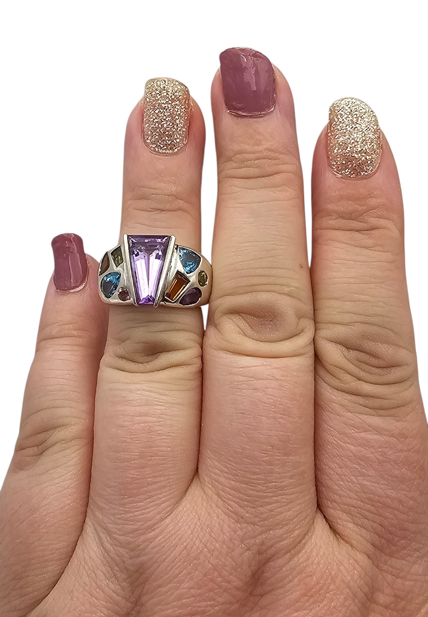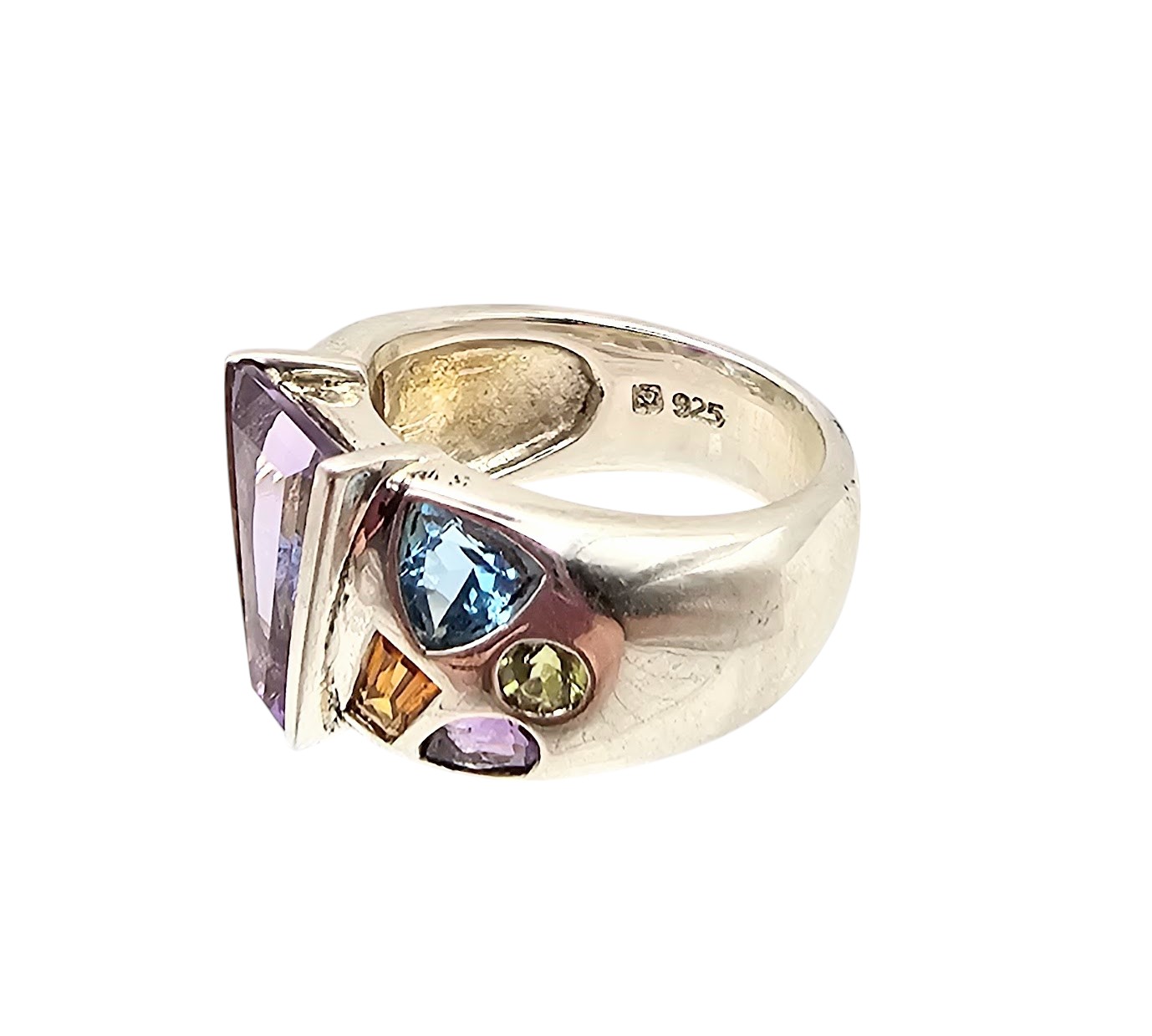 Signed Multi Gemstone Sterling Silver Cocktail Ring Size 5.5 7.9 G