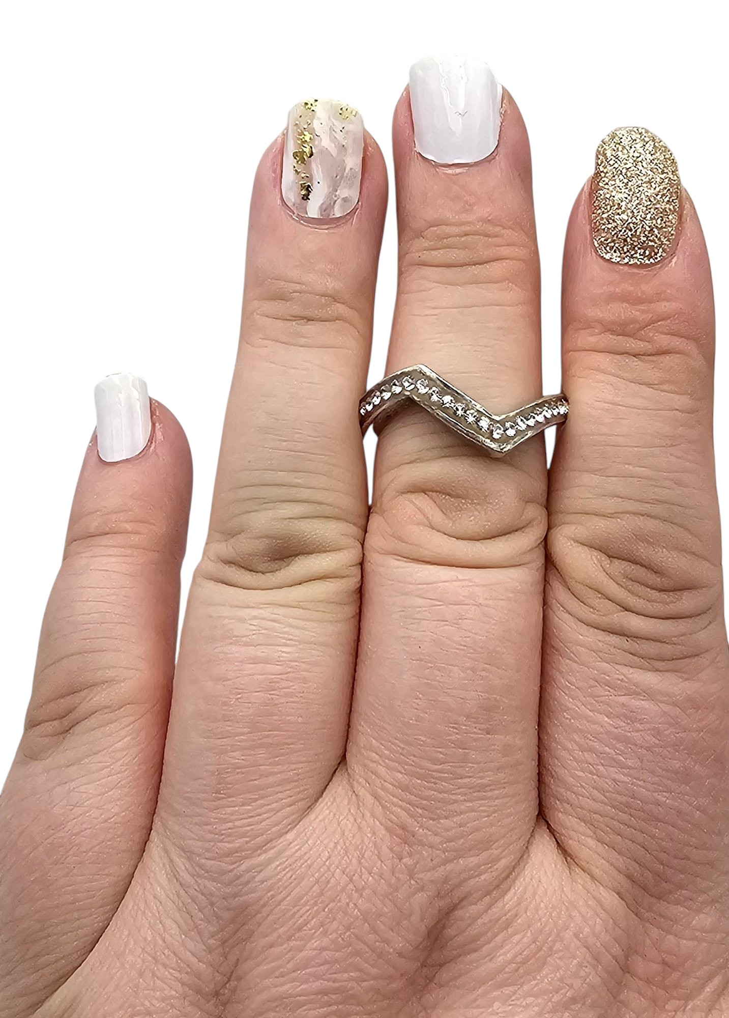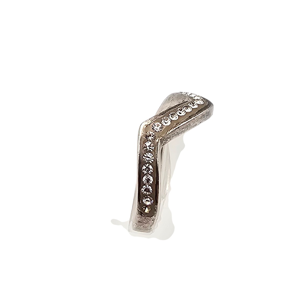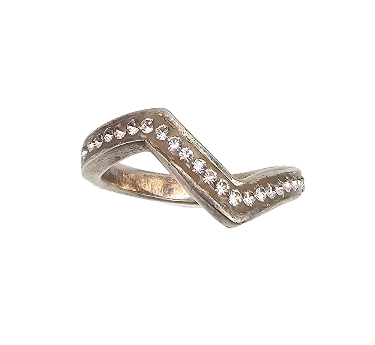 Rhinestone Sterling Silver Zig Zag Ring Size 8 4.2 G