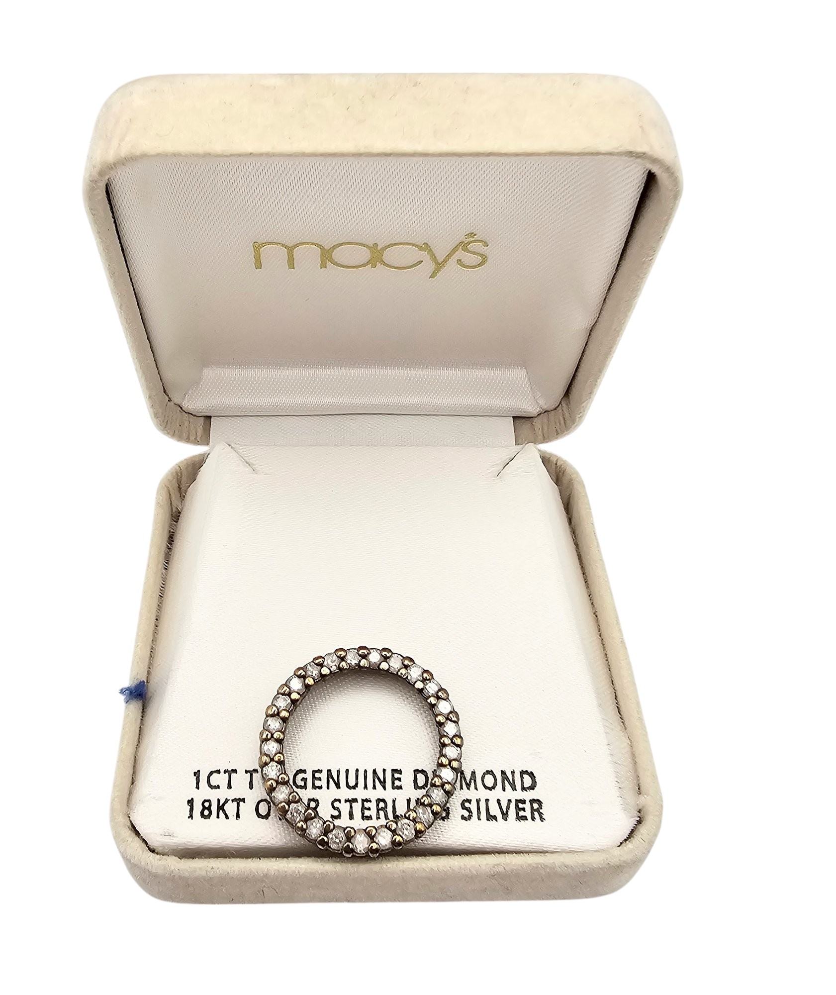 NIB Diamond 18K Gold Over Sterling Silver Circle Pendant 3.9 G