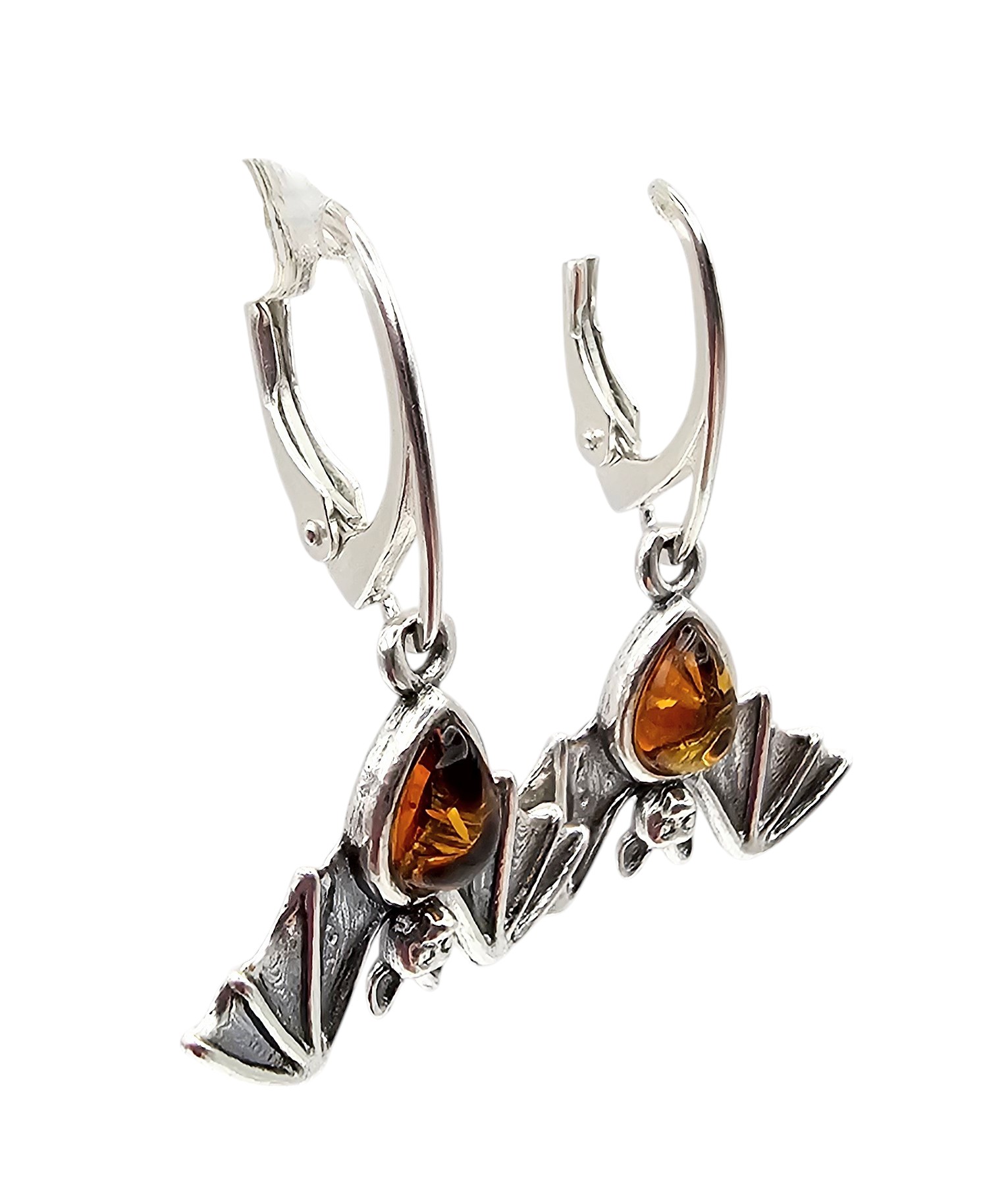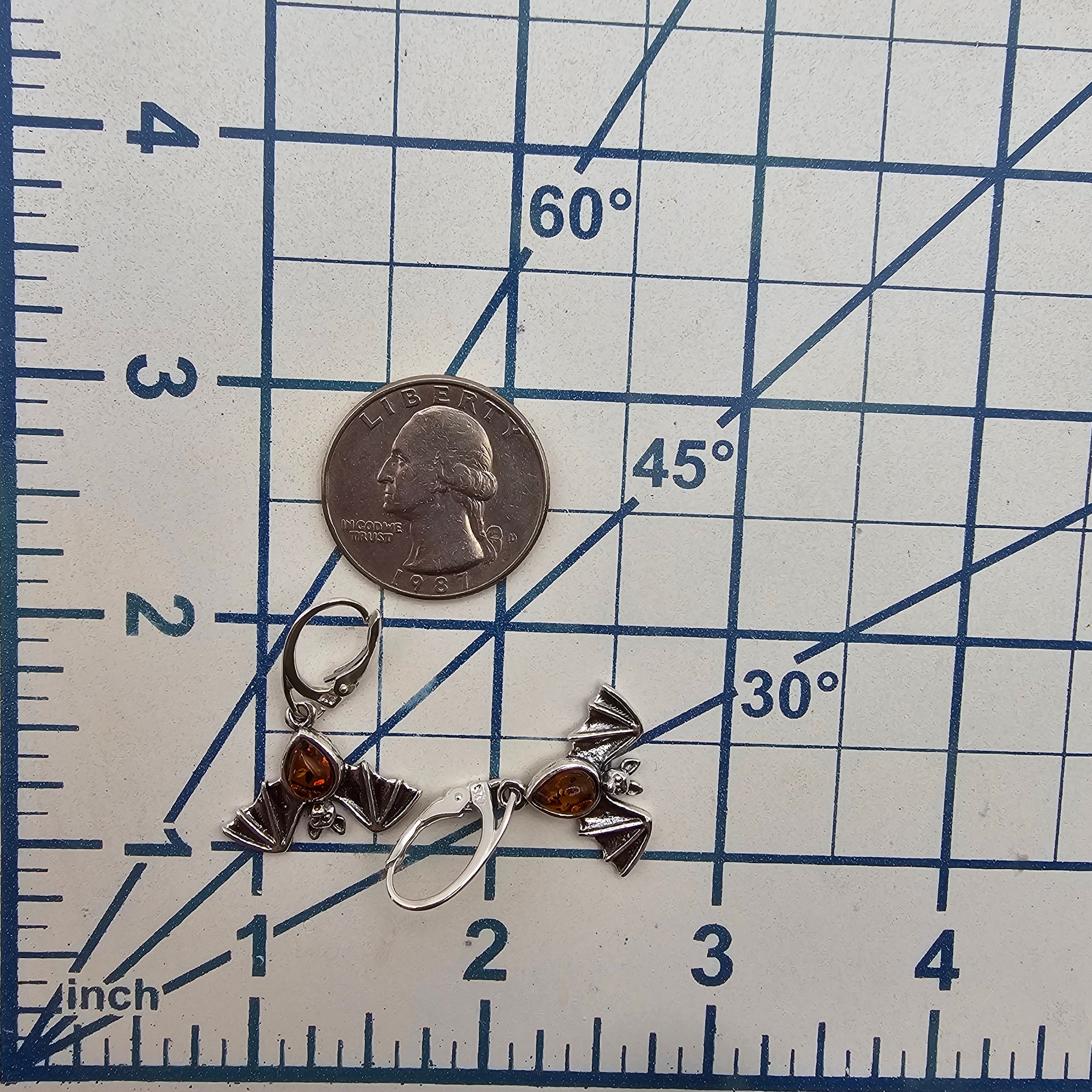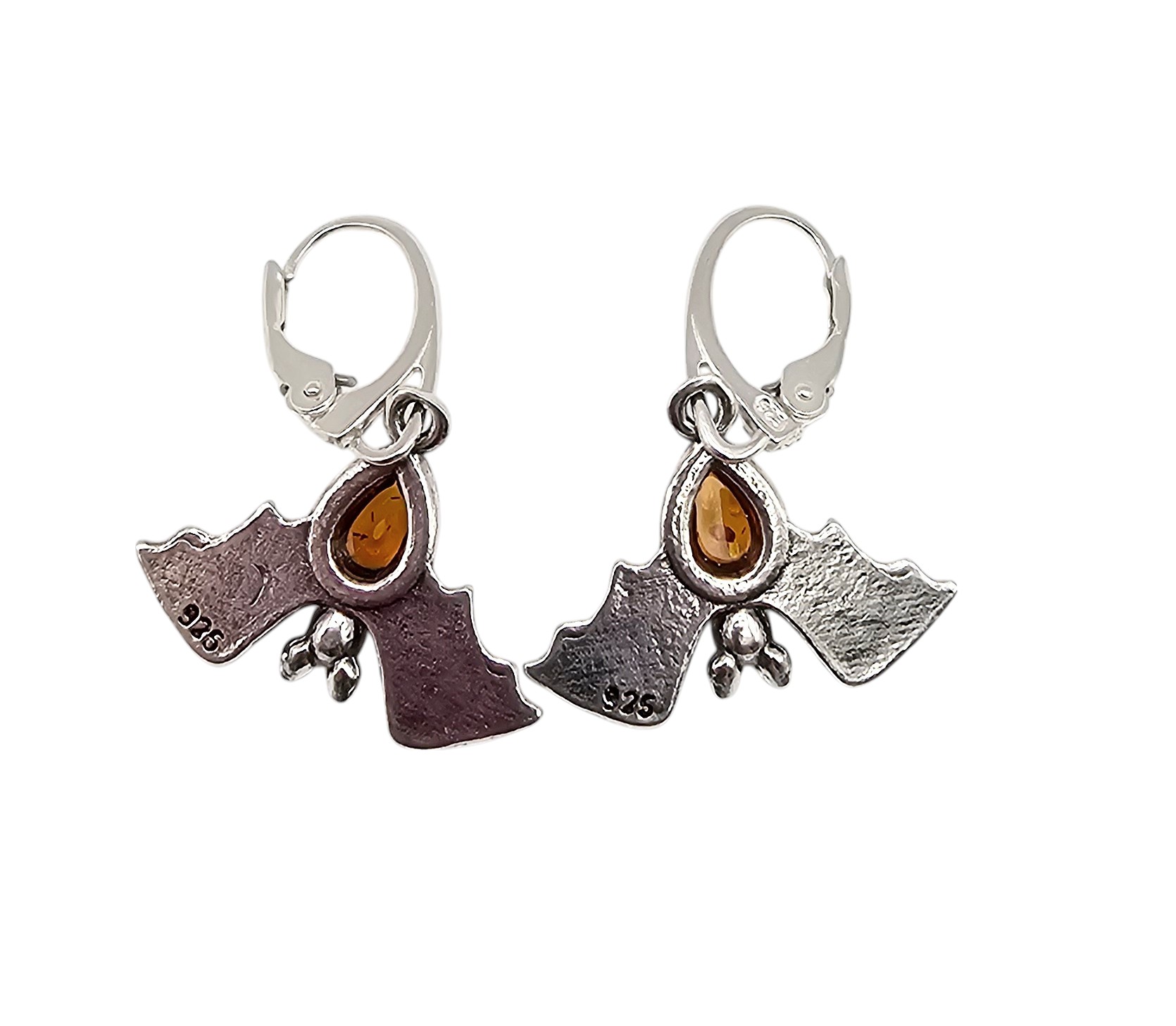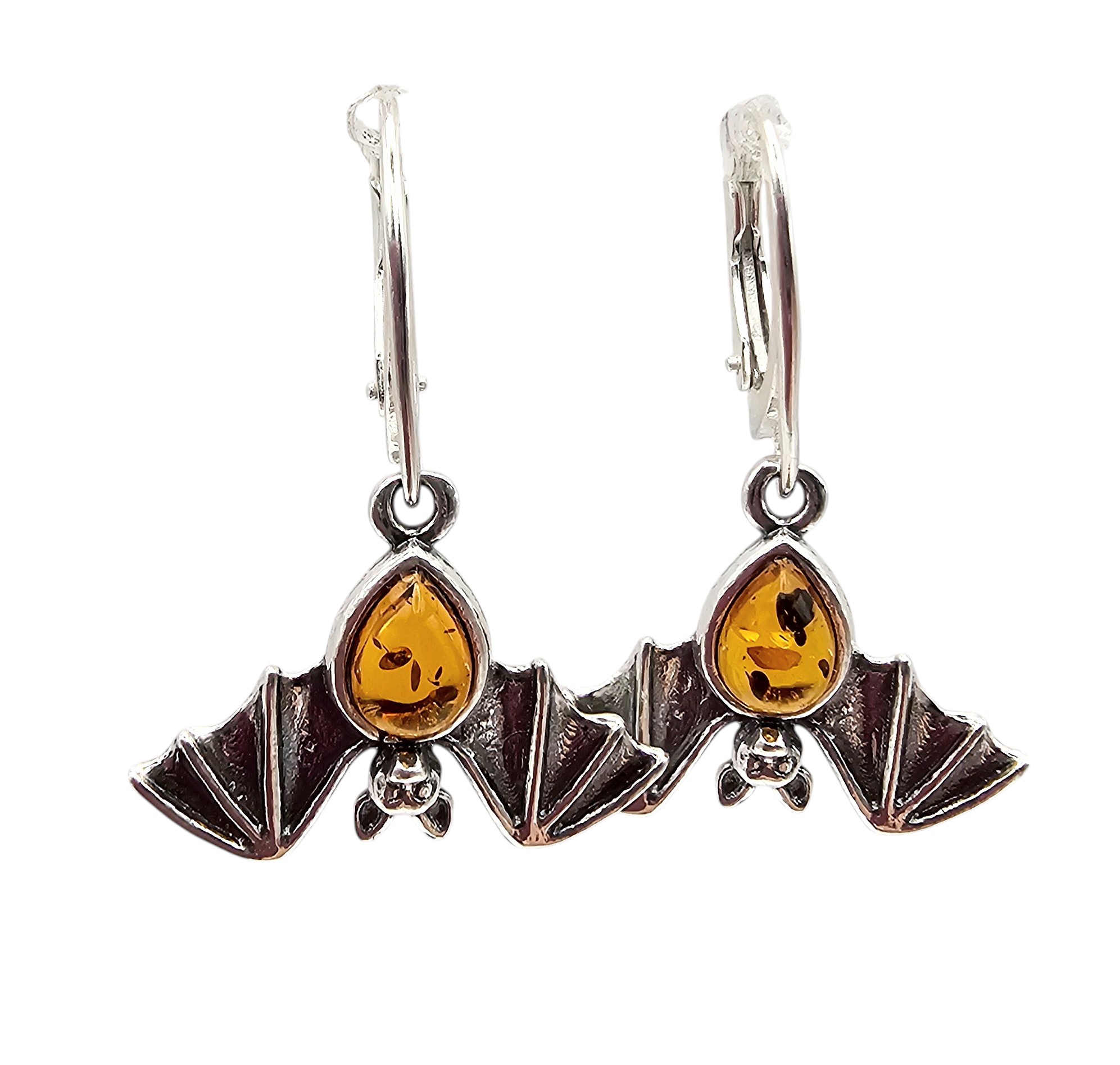 Amber Sterling Silver Bat Drop Dangle Earrings 3.9 G