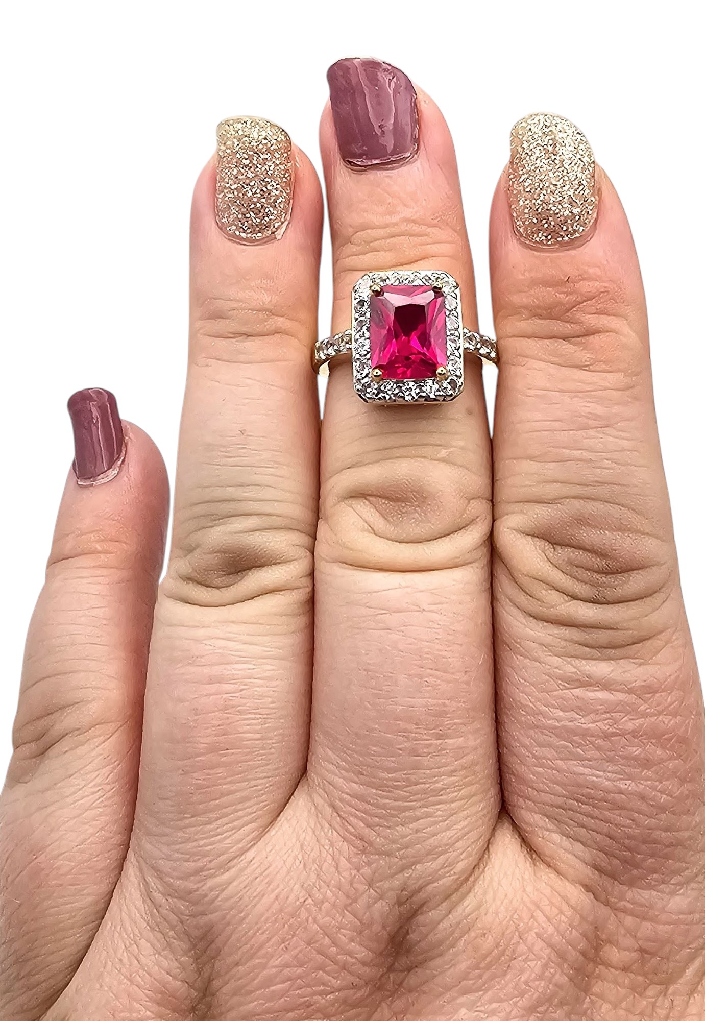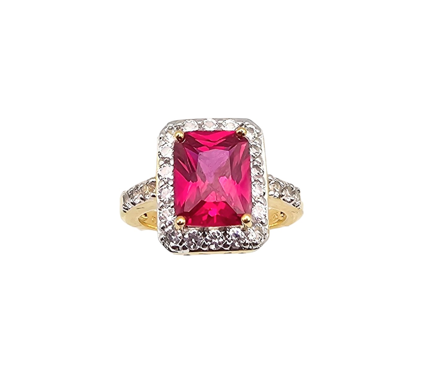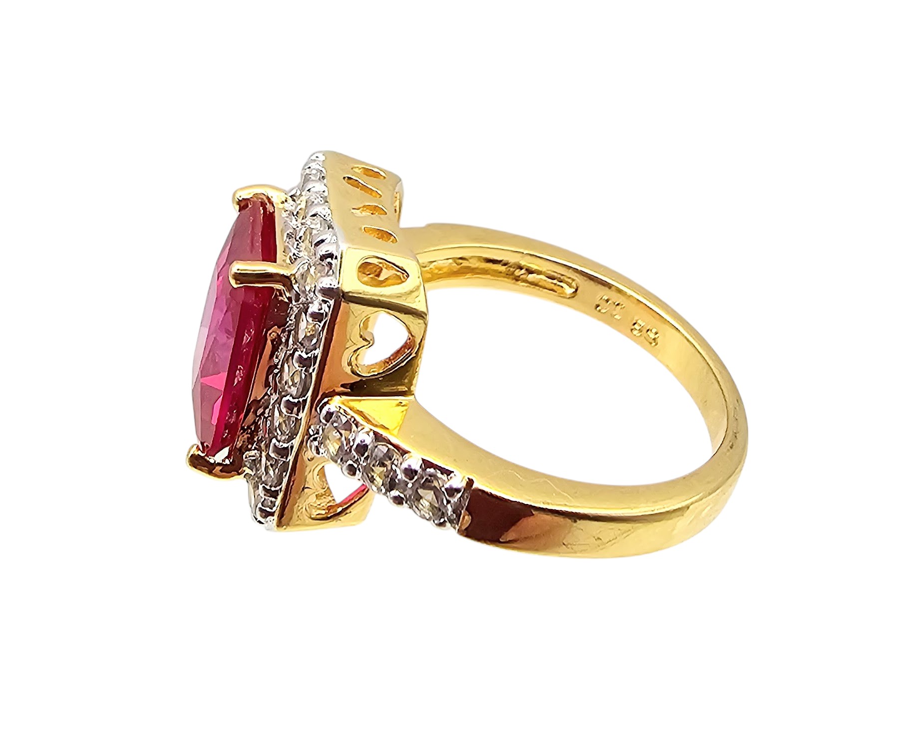 CI CR Ruby White Sapphire Gold Over Sterling Silver Cocktail Ring Size 6.75 5 G