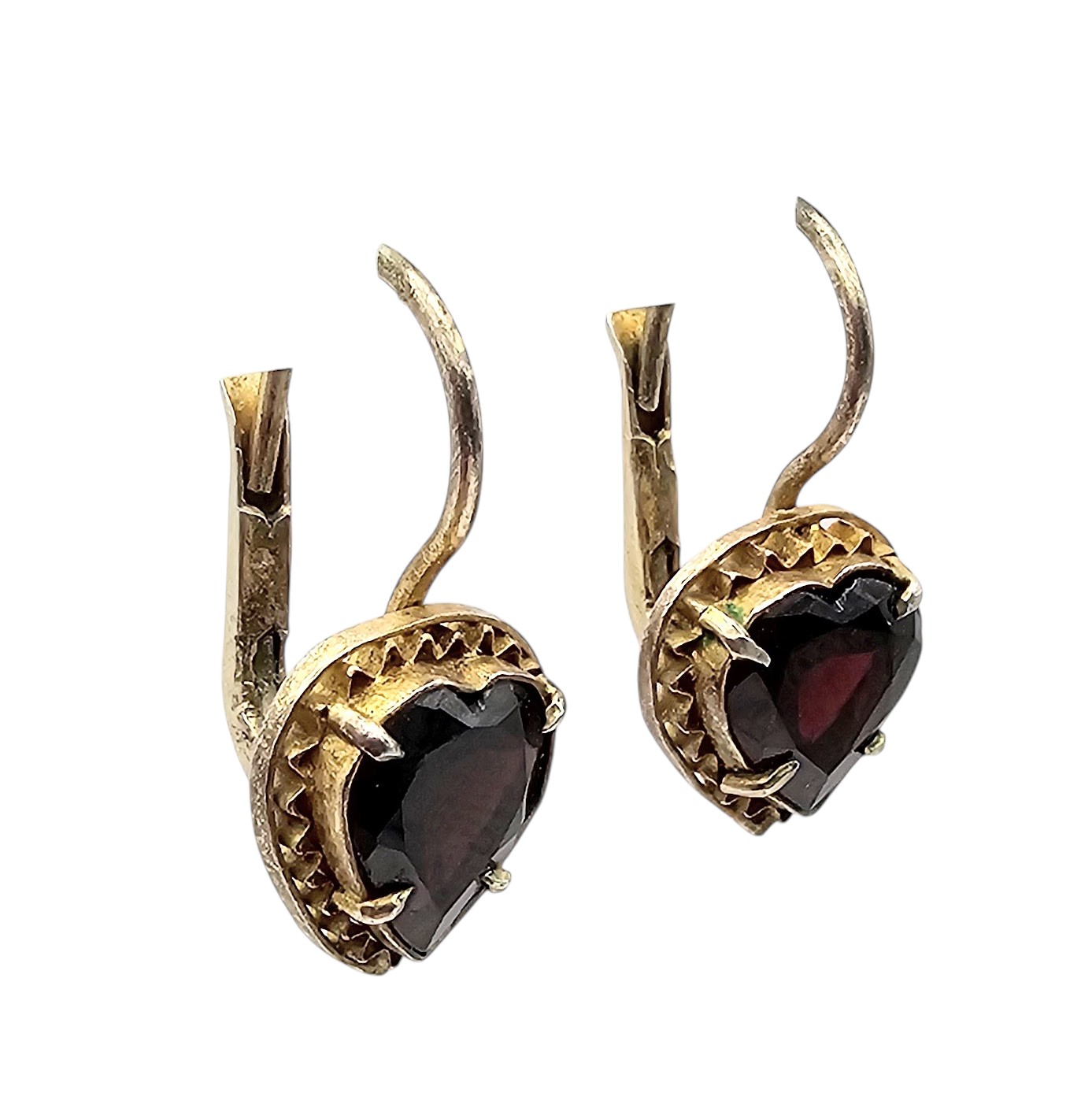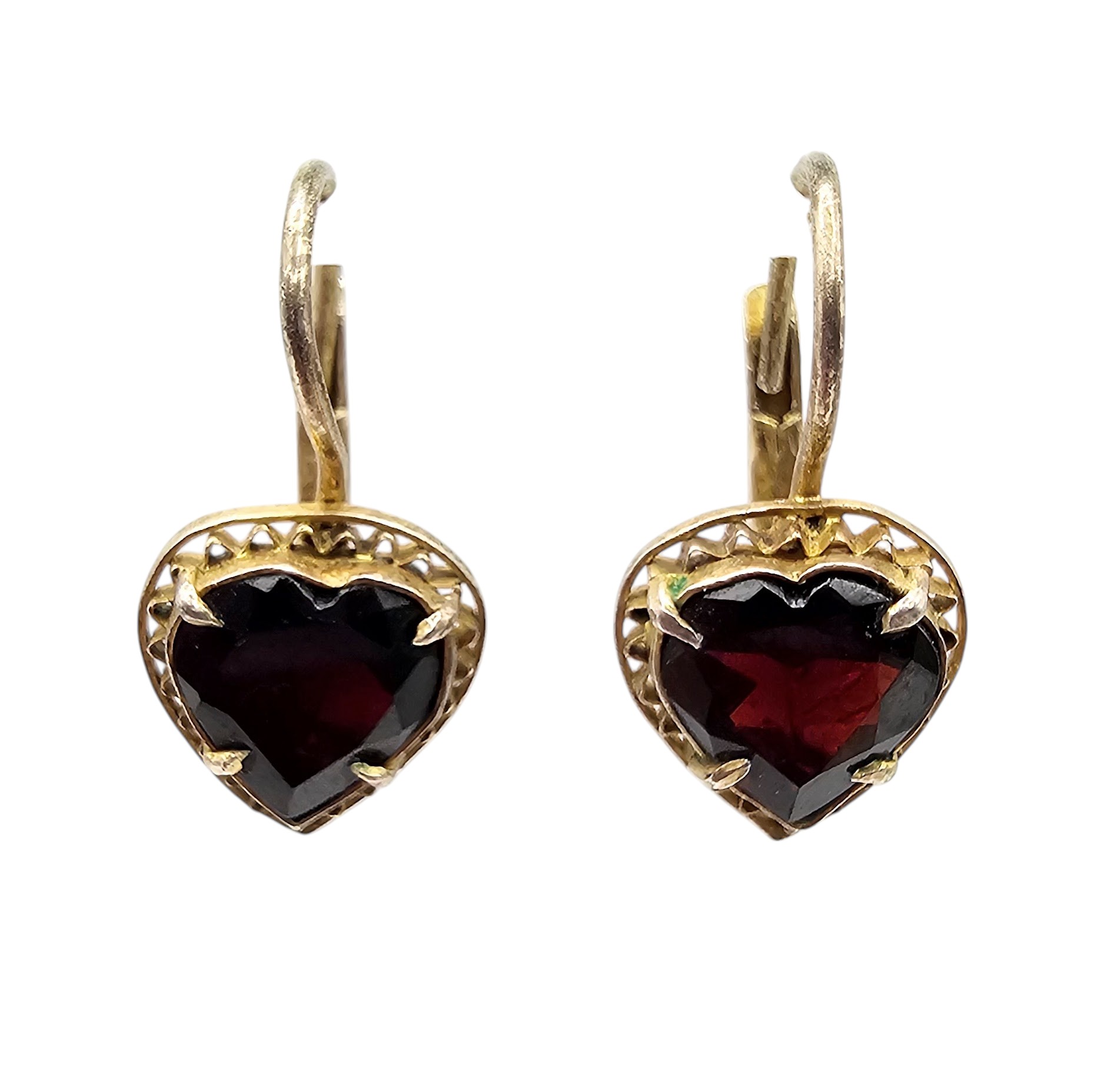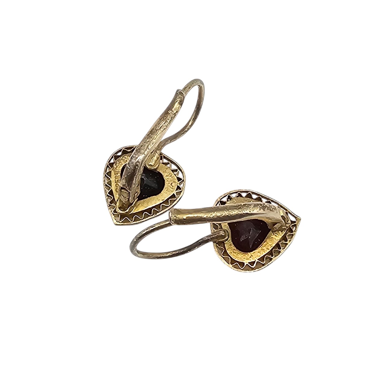 Rhinestone Gold Over Sterling Silver Heart Drop Dangle Earrings 2.6 G