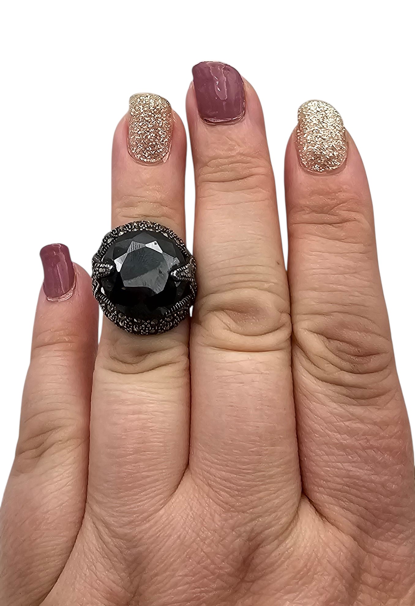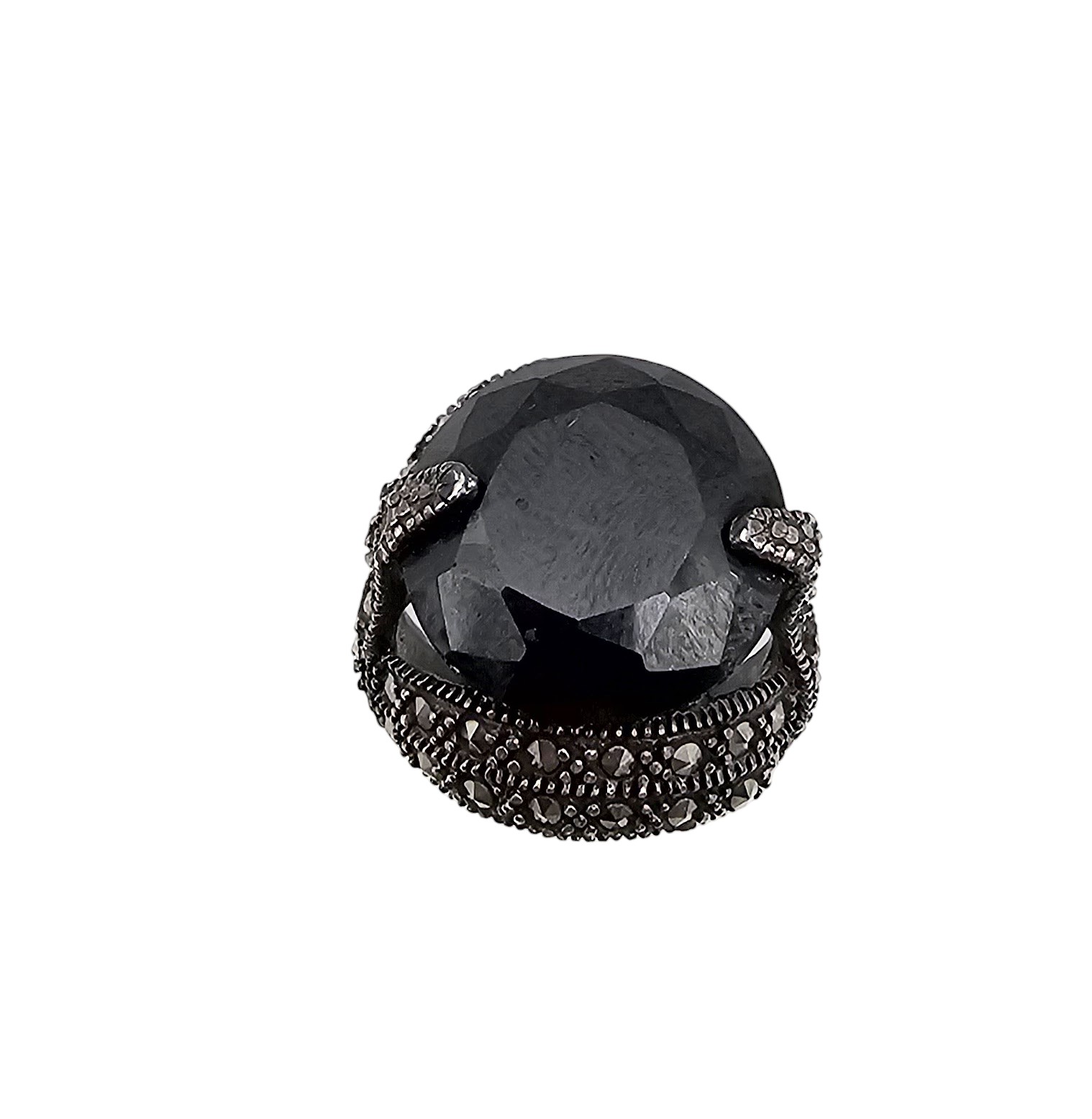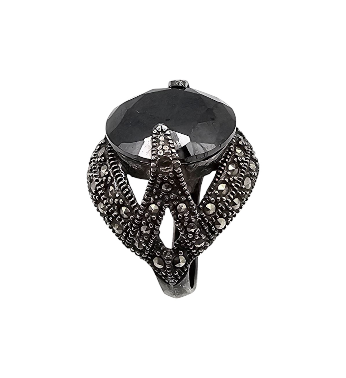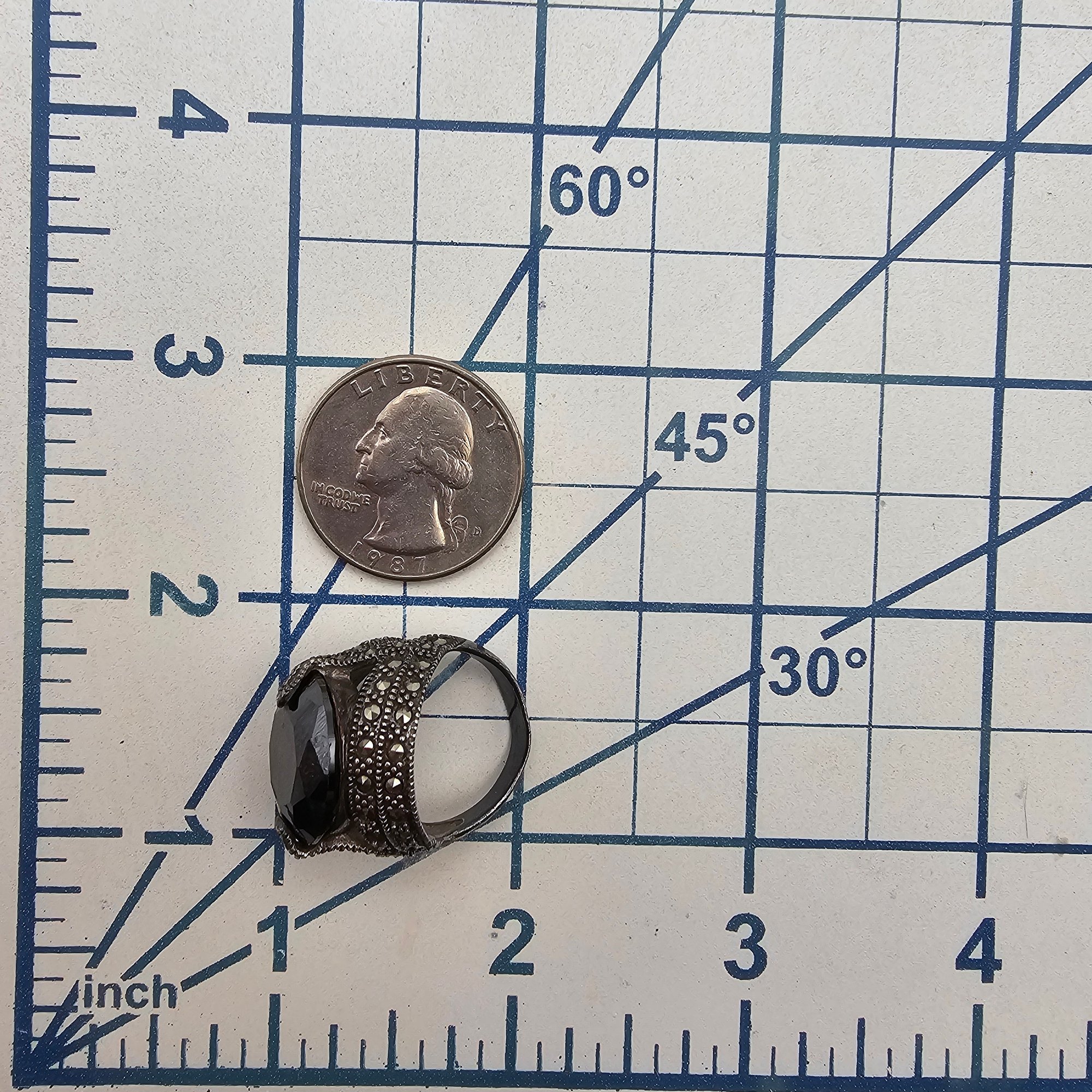 Onyx Marcasite Sterling Silver Cocktail Ring Size 5.75 10.9 G