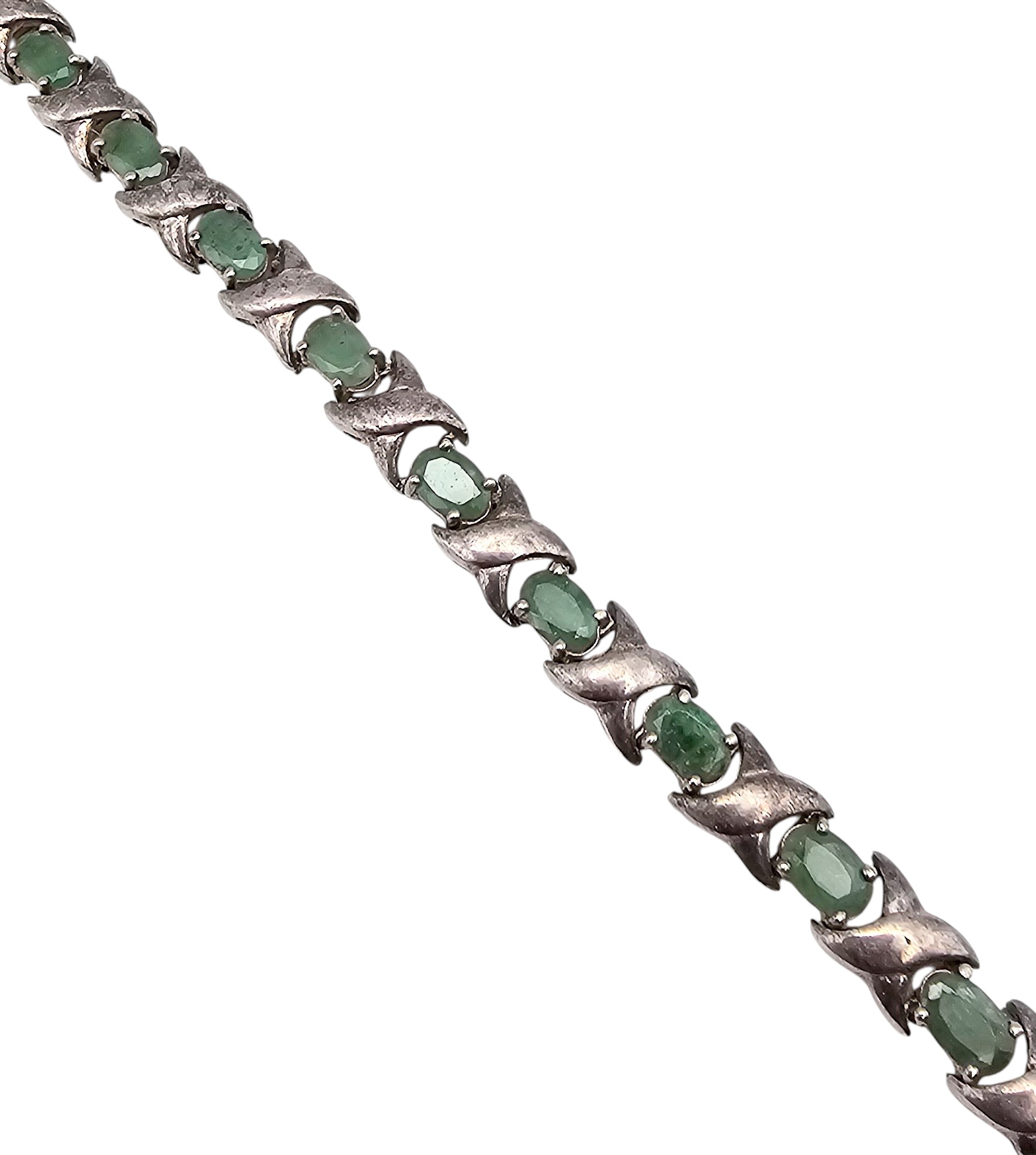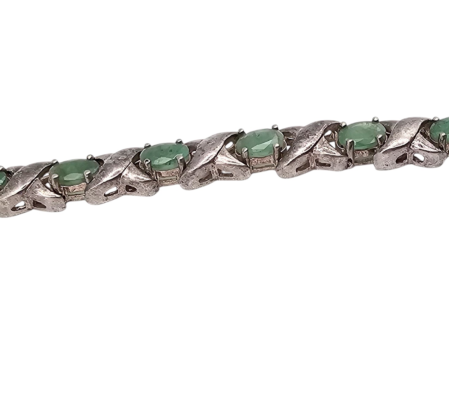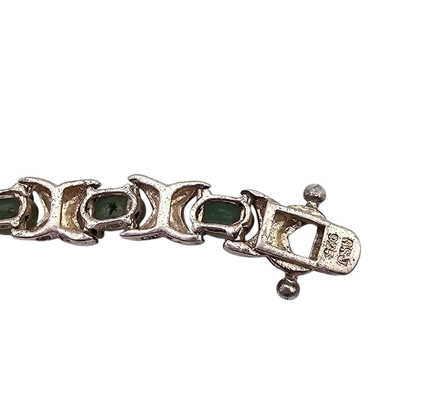 BSJ Emerald Sterling Silver Tennis Bracelet 16.3 G