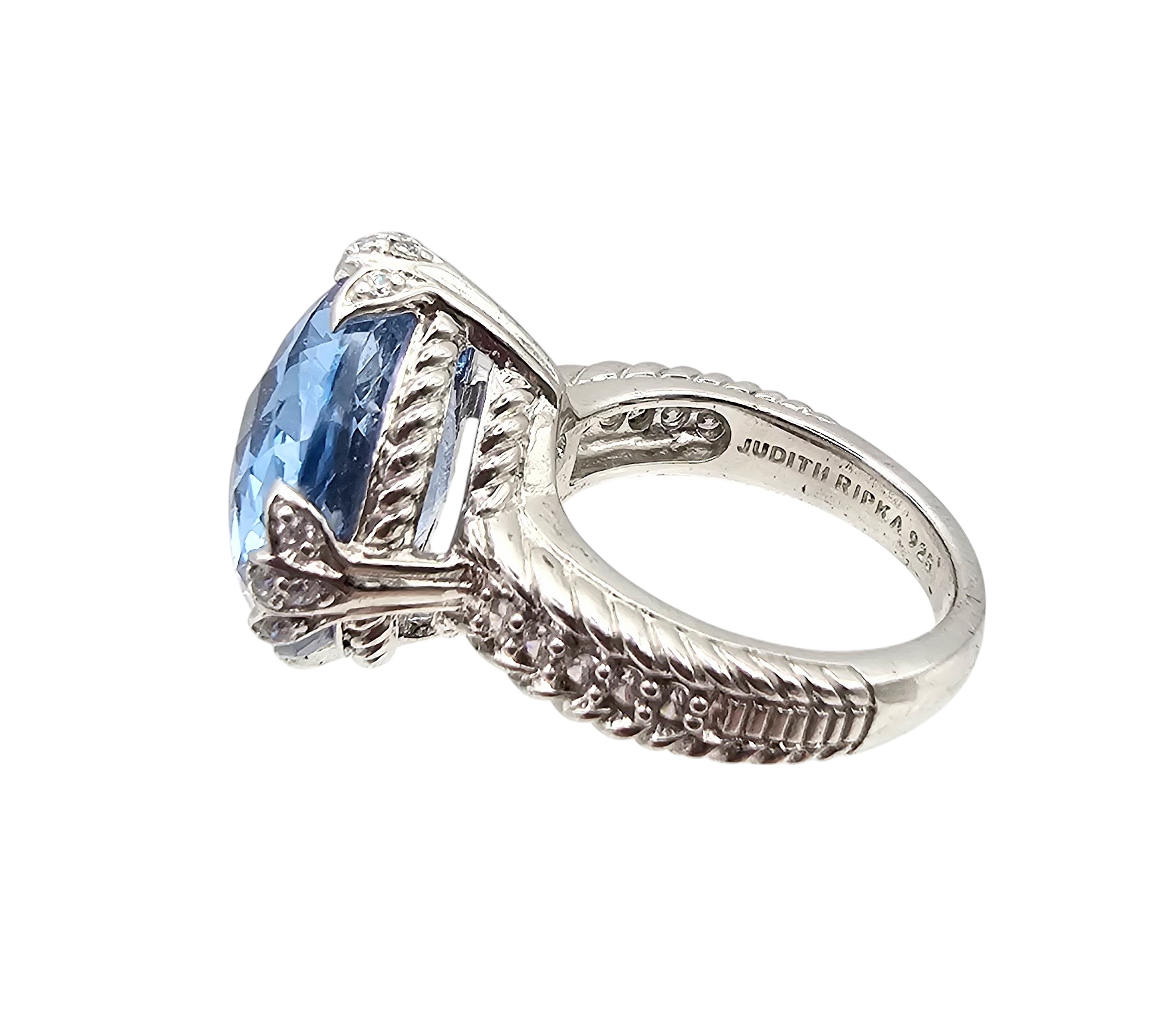 Judith Jack Topaz Cubic Zirconia Sterling Silver Cocktail Ring Size 5.75 10.8 G
