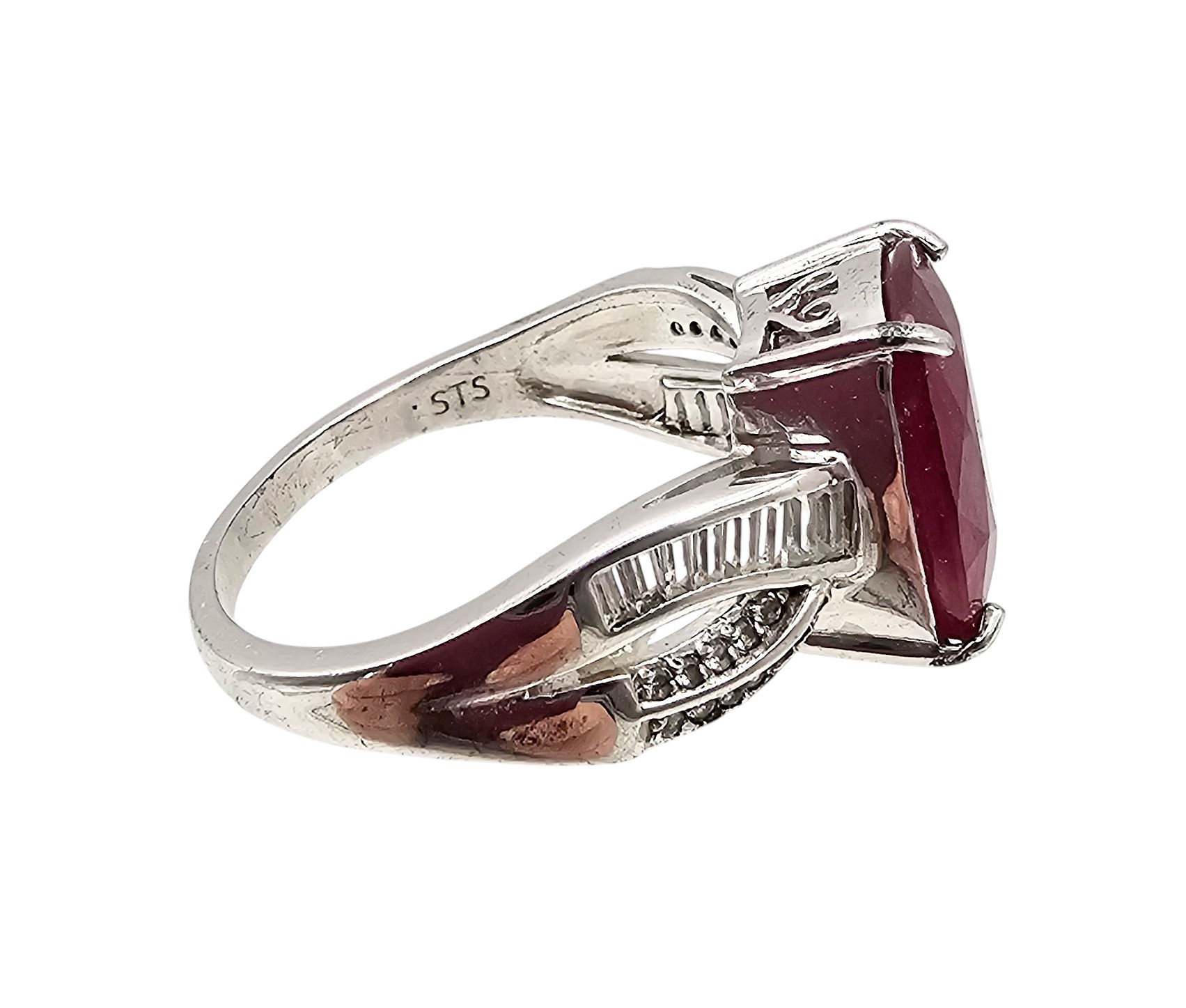 STS Ruby White Sapphire Sterling Silver Cocktail Ring Size 11 7.2 G