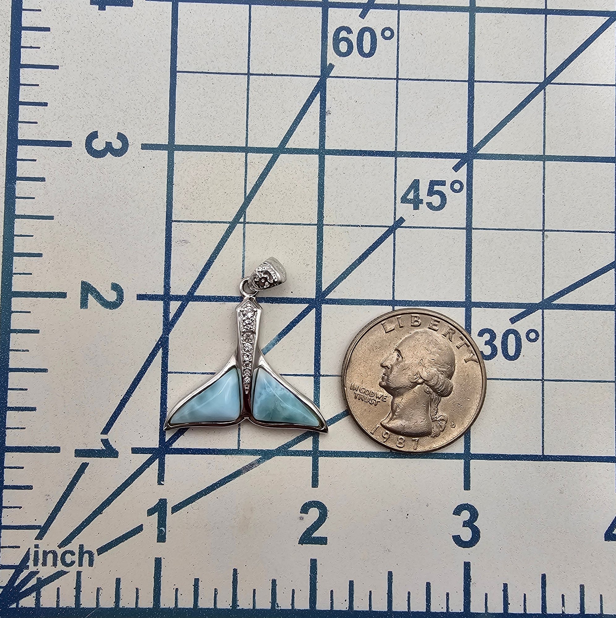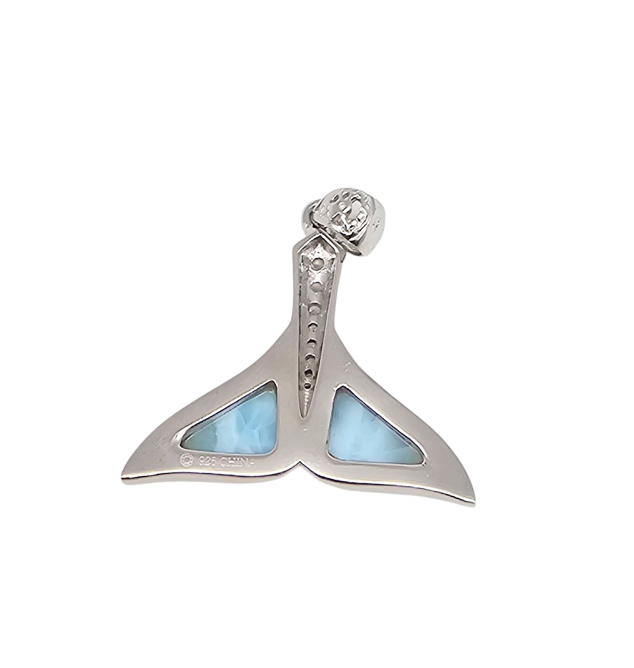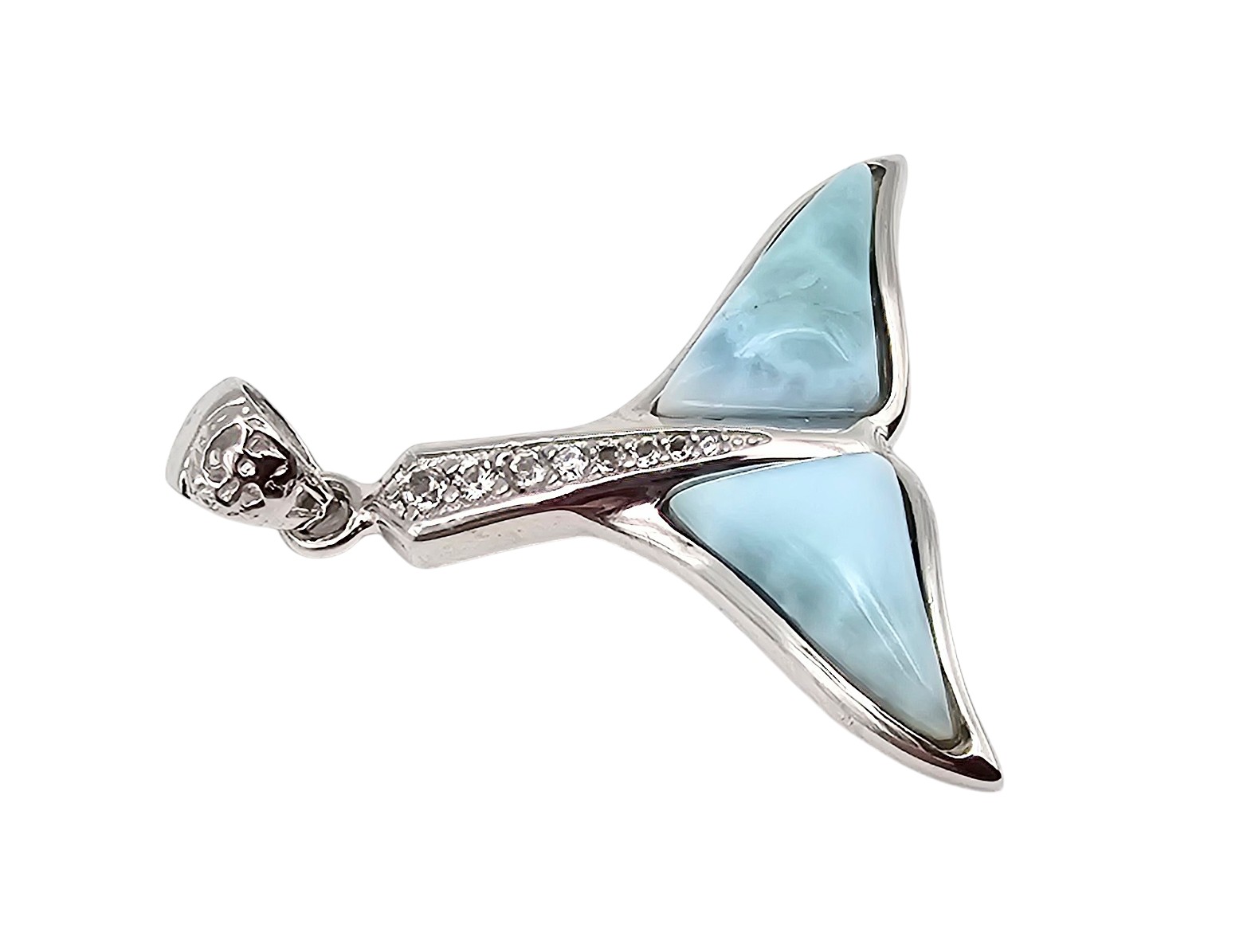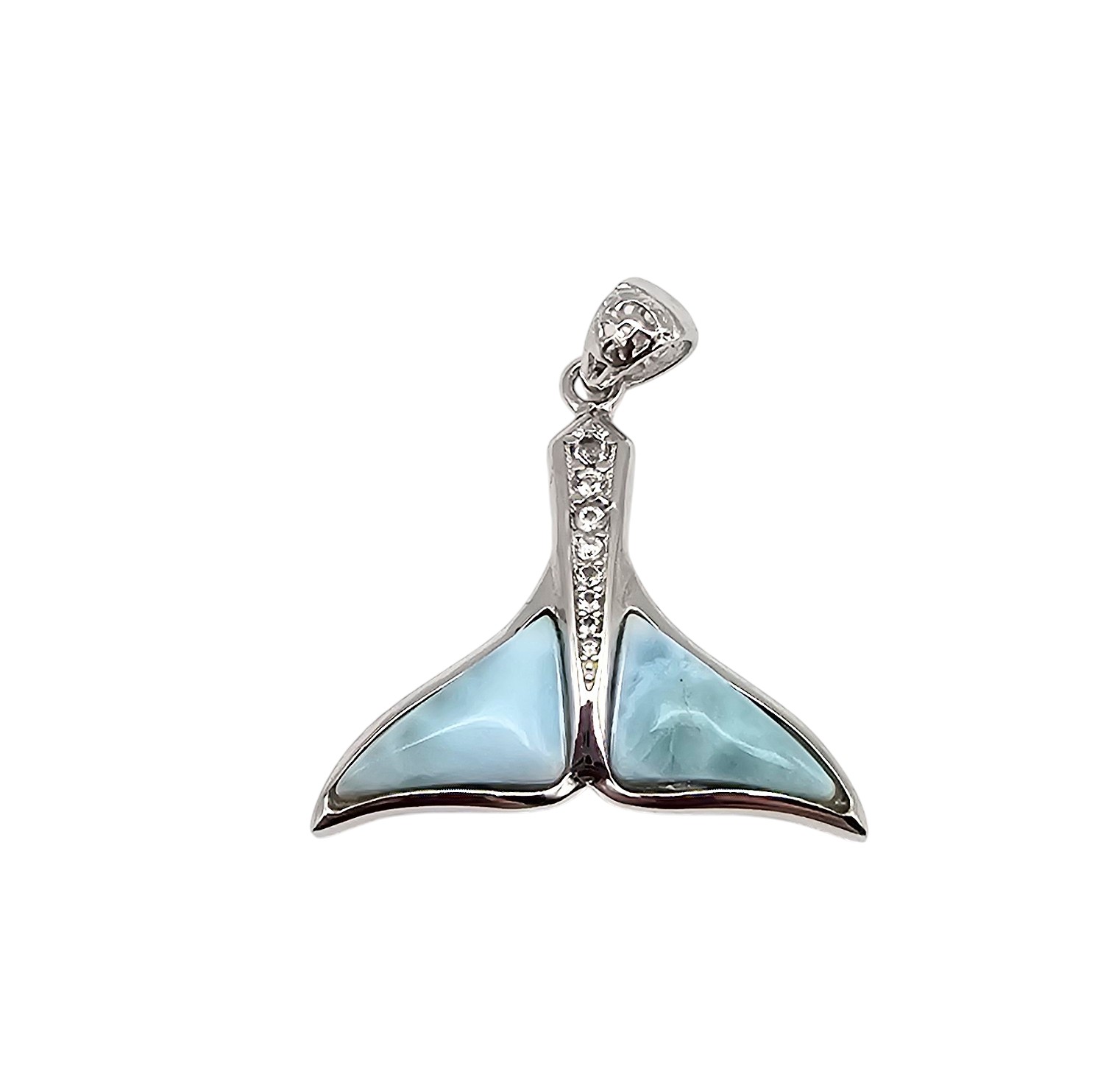 White Topaz Larimar Sterling Silver Whale Tail Pendant 4.3 G