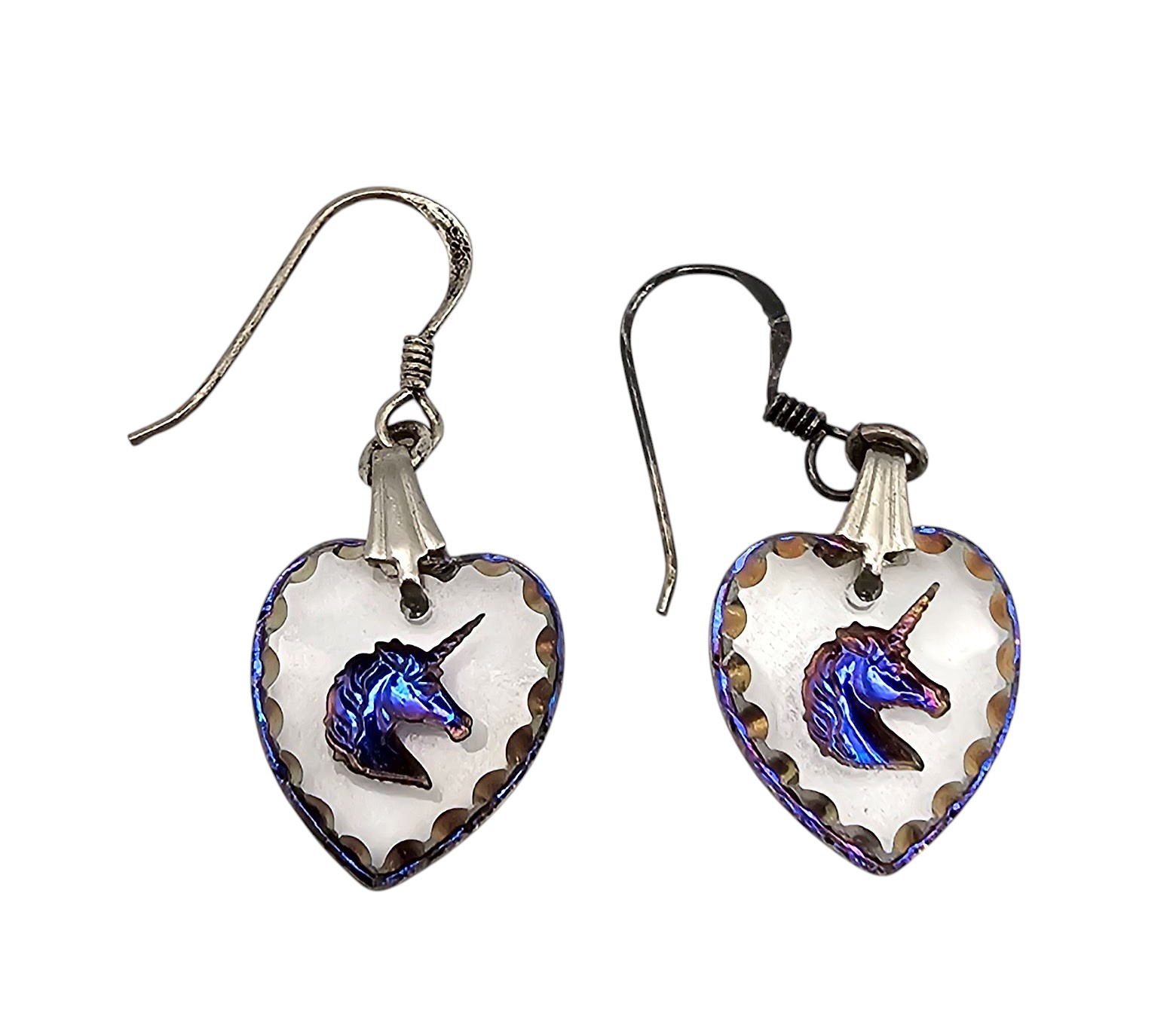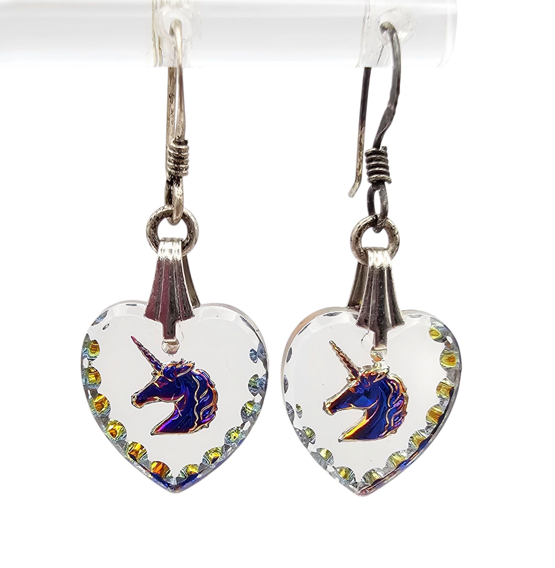 Sterling Silver Unicorn Heart Dangle Earrings 2.9 G