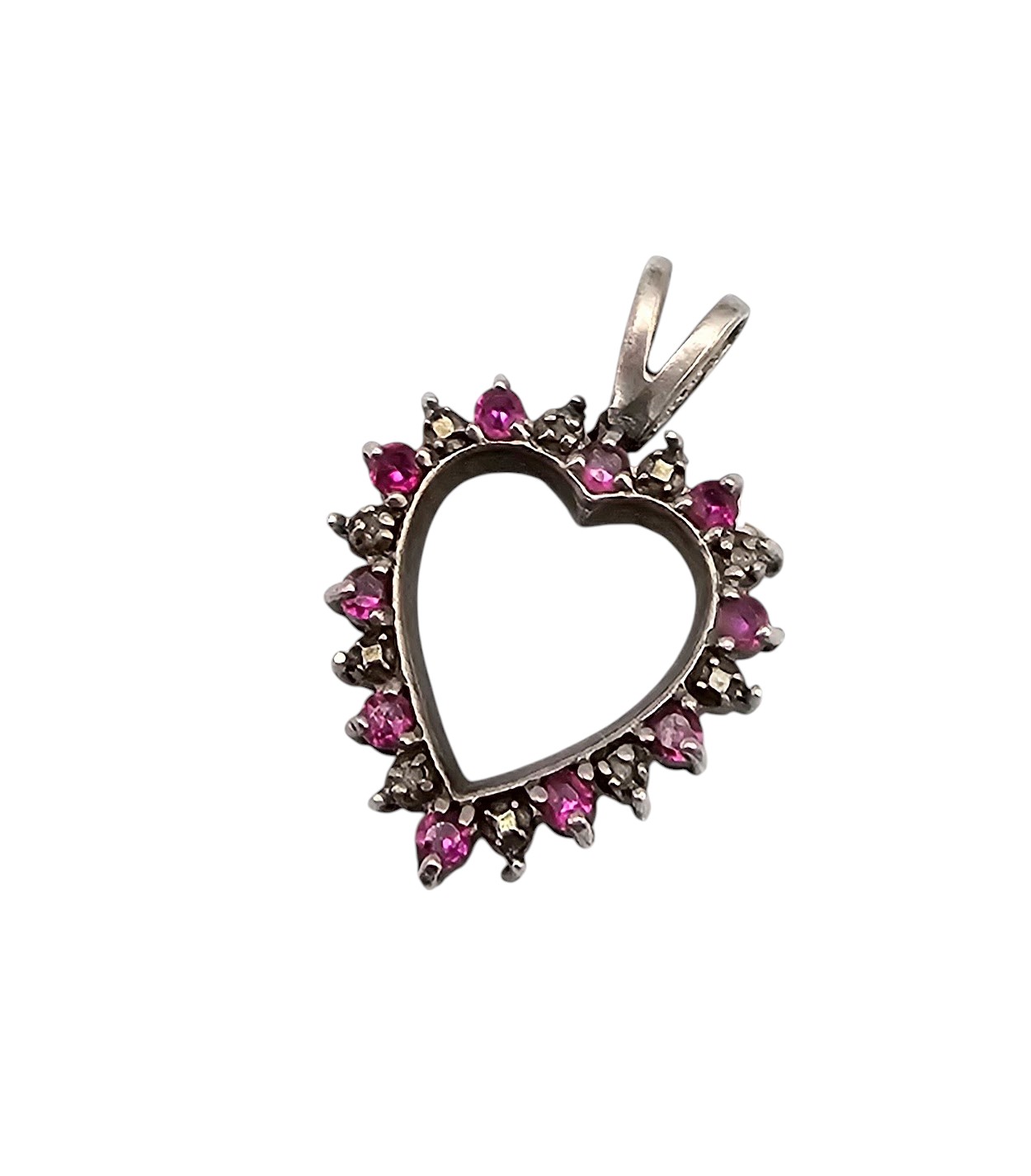 Ruby Sapphire Sterling Silver Heart Pendant 3.3 G