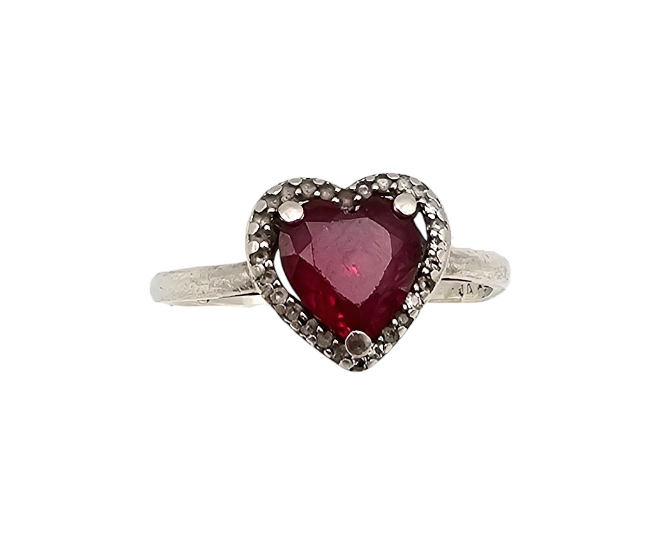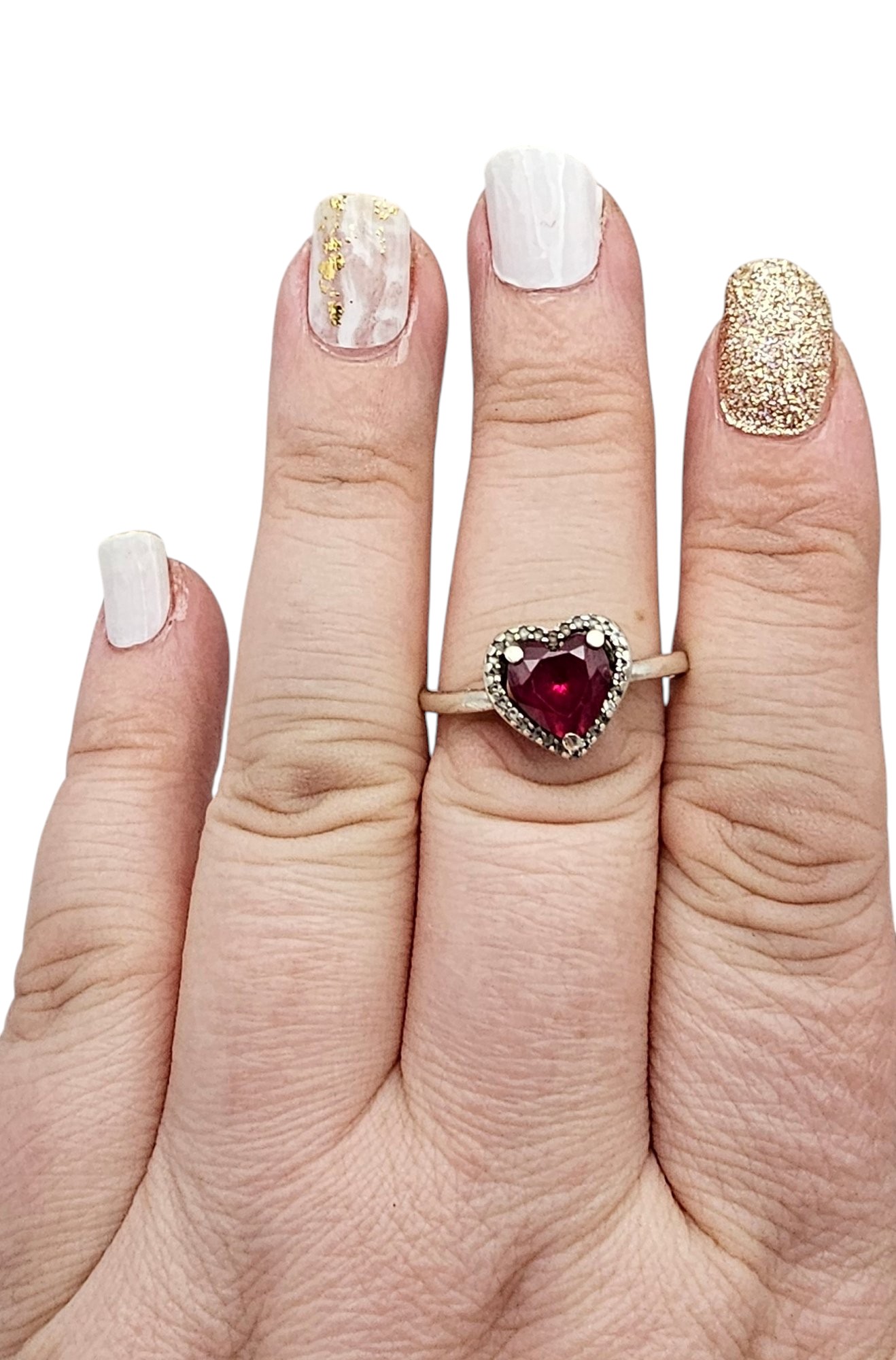 JA RL Ruby Sterling Silver Heart Cocktail Ring Size 9.75 2.3 G