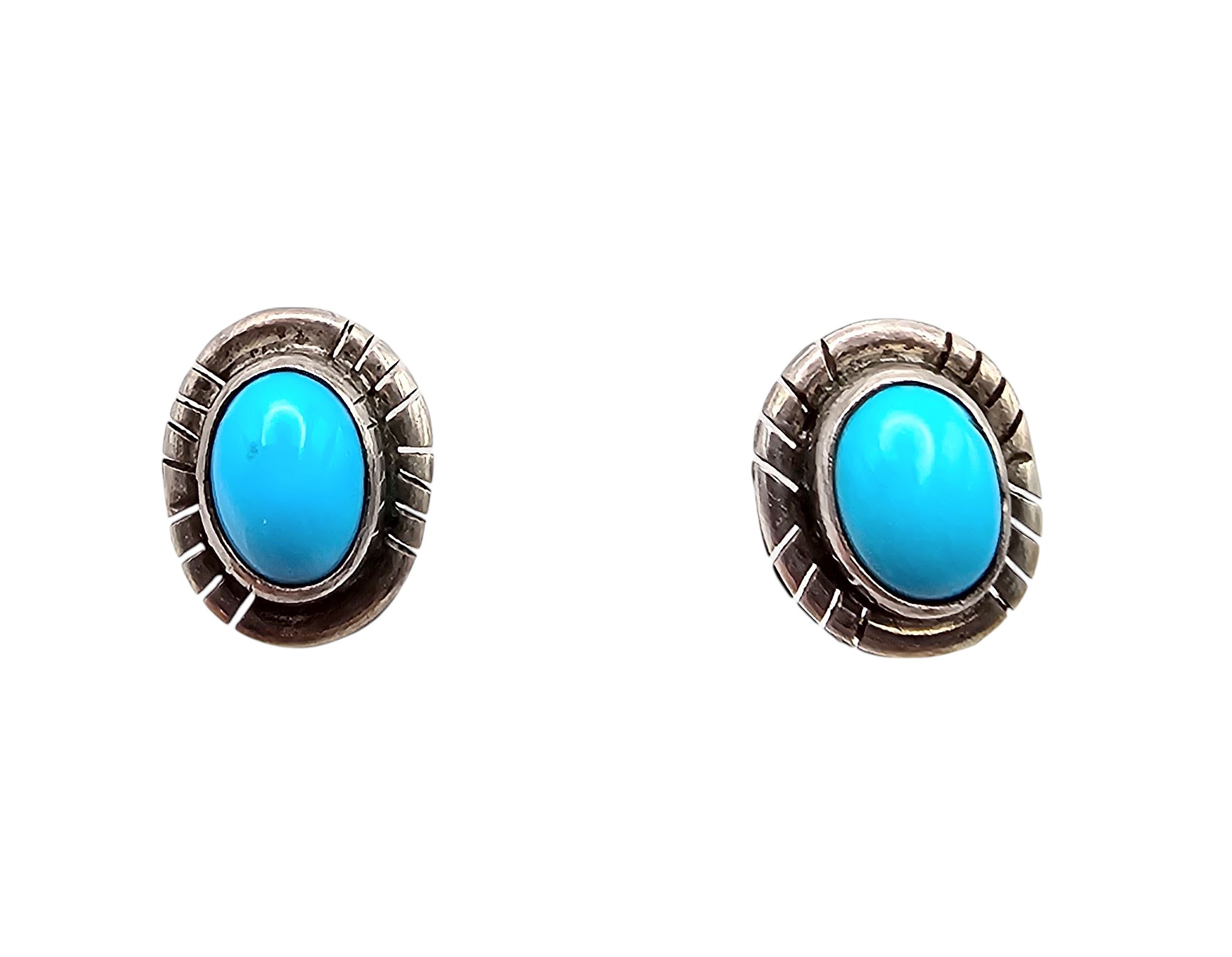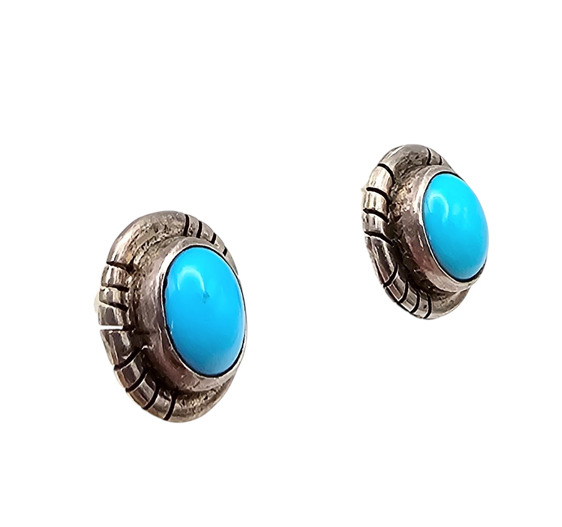 Southwestern Style Turquoise Sterling Silver Earrings 2.7 G