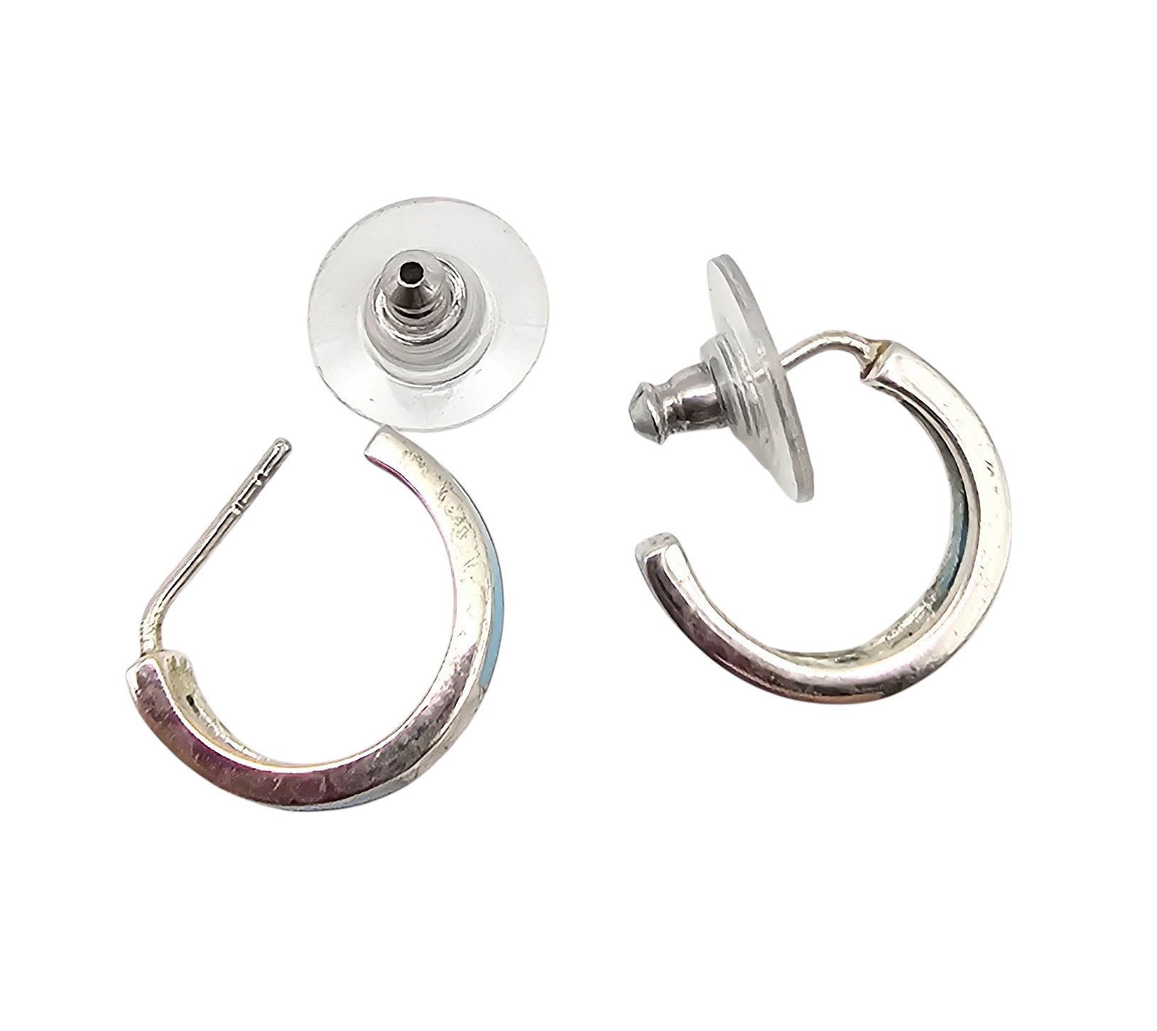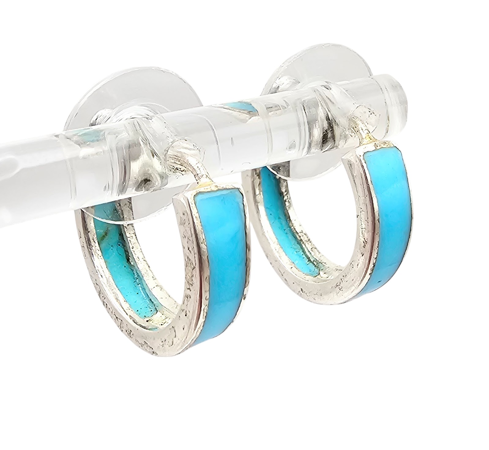 Southwestern Turquoise Sterling Silver Hoop Earrings 2.7 G