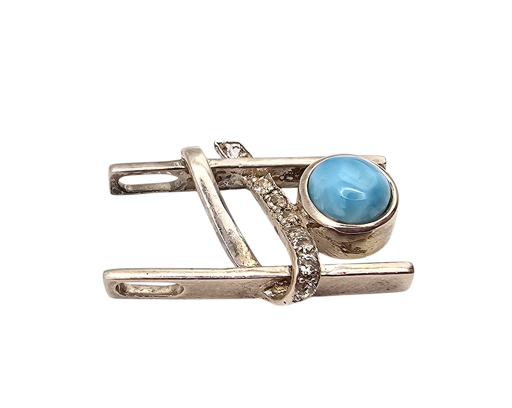 Southwestern Style Larimar Clear Stone Sterling Silver Pendant 7 G