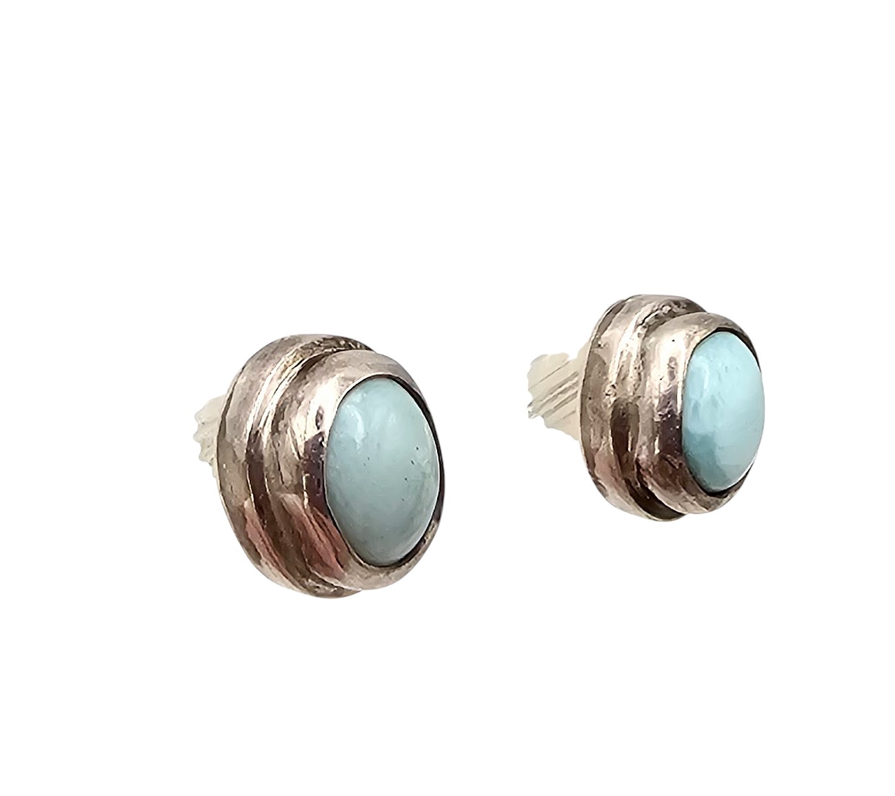 Southwestern Style Larimar Sterling Silver Earrings 5.2 G no backs