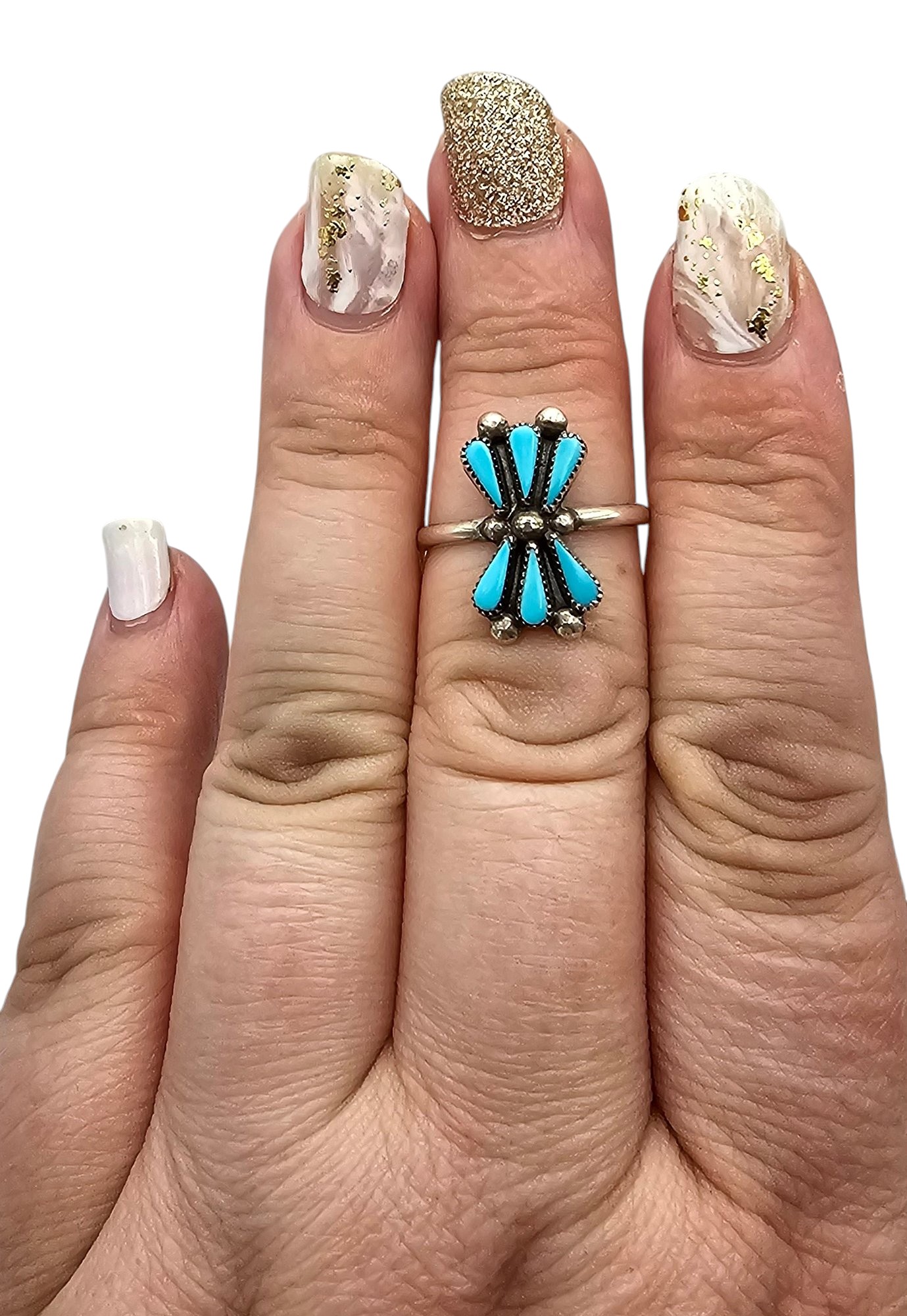 Navajo Petit Point Turquoise Sterling Silver Ring Size 7.5 2.2 G
